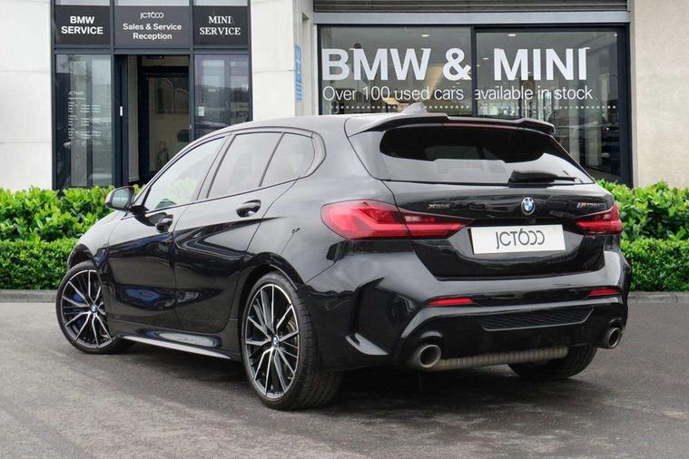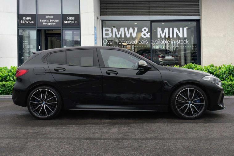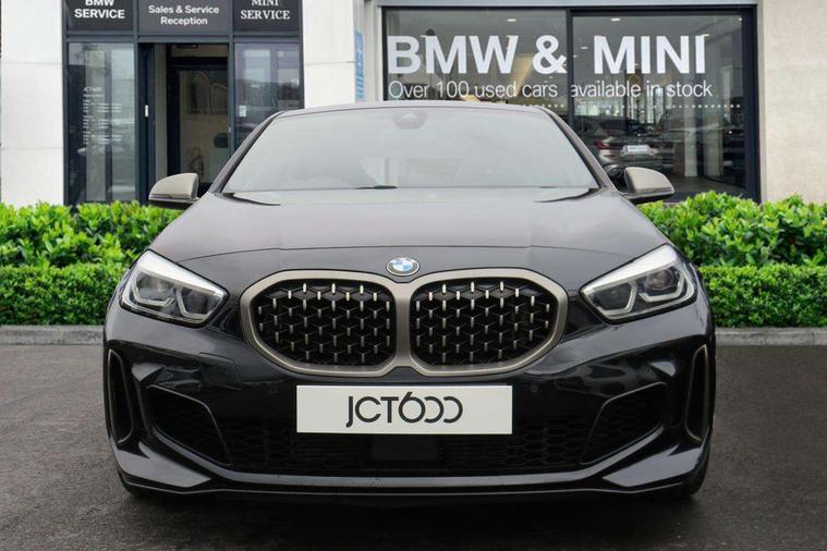 Active guard plus, Attentiveness assist, BMW ConnectedDrive online services, BMW Teleservices, Check Control warning system for monitoring of lights and door/luggage compartment open warning, Cruise control with brake assist, Eco pro mode, Electric power steering, Electro hydraulically controlled multi-plate clutch transfers drive to rear axle and with power take-off device located on the front differential., Energy efficient operating strategy, Front axle single joint with specific axle kinematics to minimise drive influences on steering + provide increased rigidity agile driving behaviour, Gearshift time display in manual mode, Integrated owners handbook, Lane departure warning system, M Sports steering with M135i xDrive specific settings, Oil sensor for level and grade, On board computer, Optimum shift indicator, Personal Profile, Pull away assistant, Rigidly mounted rear subframe - Multi link construction with separate spring / damper configuration and excellent driving characteristics, Speed limit Info including no-overtaking indicator, Speed limiter, Sporty fast gear shifting in sport mode, Aluminium lightweight construction, Anti roll bar front and rear, Balancer shaft, Double VANOS, Drive Performance Control, Eight speed sport automatic transmission with gearshift paddle switches, Electronic differential lock, Electronic selector lever, Engine cover with M performance designation, High precision injection, Larger fuel tank capacity (50 litres), Launch control, M135i specific heavily de-throttled engine intake air guide, M135i specific high-performance cooling package, M135i specific larger turbocharger with integrated divert-air valve, Petrol Particulate Filter, Twin tube gas filled shock absorbers with degressive characteristic curve, VALVETRONIC engine management, Variable, stepless and infinitely adjustable distribution of drive torque between the front and rear axles, xDrive intelligent all wheel drive with M135i specific reinforced components, DAB Digital radio, Auto dimming rear view mirror, Automatic headlight beam throw control, Automatic windscreen wipers and automatic headlight, Body colour door handles, Body colour roof trims, Cerium grey exterior mirror caps, Direction indicator side lights in exterior mirrors, Exhaust tailpipe, Cerium Grey with bevelled finish - twin, round 100mm, left and right split, Fading support, Folding side mirrors with auto dimming/folding wing mirrors with auto dimming, Follow me home headlights, Front and rear bumper system with replaceable deformation elements, Front and rear electric windows with open and close fingertip control, anti trap facility and comfort closing, Front door sill finishers with M135i designation, Green tinted heat protection glazing, Heated, electrically adjustable exterior mirror aspheric on driver side, convex on passenger side, High gloss shadowline window frame, Recess cover mirror frames and B/C pillar embelisher trim, High level third brake light, Integrated front windscreen with washer jets, Kidney grille frame in Cerium Grey with Mesh design, LED daytime running lights, LED eyebrow turn indicators, LED front fog lights, Lightweight engineering, M logo designation side in cerium grey, M Performance exhaust system with valve control and minimised exhaust back pressure, M Performance specific setup, M Sport spoiler, Matt black air guide grilles, Matt black wheel arch trim, Model designation on electric bootlid includes xDrive designation for M135i xDrive, Nearside reverse light in rear light cluster, Preparation for high beam assistant, Rear fog lights, Rear side wing doors, Rear window wiper, Reinforced crank drive, new pistons and adapted con rods, Shark fin antenna, Trailer stabilisation logic, Visible VIN plate, Welcome lighting, 12V power socket in front centre console with blanking plug, 3 rear seat head restraints, 3 seat bench in 2nd row, 3 spoke sports leather steering wheel with black leather and stitching, pearl chrome decorative finish, specific M Badge, Ambient interior lighting, Anthracite headlining, Black boot net with lashing eyes, Cargo function on 2nd seat row, Child seat ISOFIX attachment for two outer rear seats and front passenger seat with anchorage points, Conditioned based service, Driver and front passenger seat heating, Folding rear clothes hook, Four grab handles integrated in roof lining, Front and rear door pockets with bottle holders, Front and rear side armrest integrated into door trim, Front armrest, Front integrated head restraints, Front M sports seats, Glove compartment, Luggage compartment for bag hooks on left and right, foldable luggage compartment liner and four lashing eyelets, Manual adjust steering wheel, Multi-function controls for steering wheel, Single front passenger seat, Storage compartment in centre console, Sun visors with vanity mirrors and insert tab, Two front centre console cupholders, Two zone automatic air conditioning, Velour floor mats, Additional interior lighting pack - 1 Series M135i, BMW live cockpit professional pack- 1 Series, Connected pack professional - 1 Series, Interior lights pack - 1 Series, M Sport exterior styling aerodynamics pack - 1 Series 135i, 2 tone horn, 3 point seatbelts on all seats, front pyrotechnic belt tensioners, stopper and belt force limiters, rear coded belt buckles, Airbags - Front driver/passenger, front and rear curtain head protection, front side, manual deactivation of front passenger airbag, Anti lock braking system (ABS) with brake assist, BMW emergency call, Brake drying, Braking readiness, Child proof locking system in rear door, City braking function, Comfort modes, Cornering brake control, Crash sensor activating central locking release, hazard warning lights, fuel cut off, interior lighting + activation of safety battery terminal clamp, Driver and front passenger seat belt security check, Dynamic stability control + (DSC+), Dynamic Traction Control - DTC, Electrically operated hand brake including automatic ho