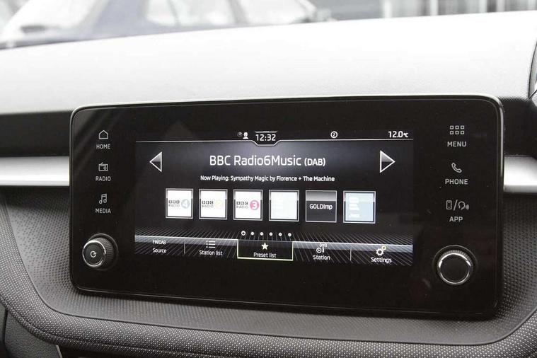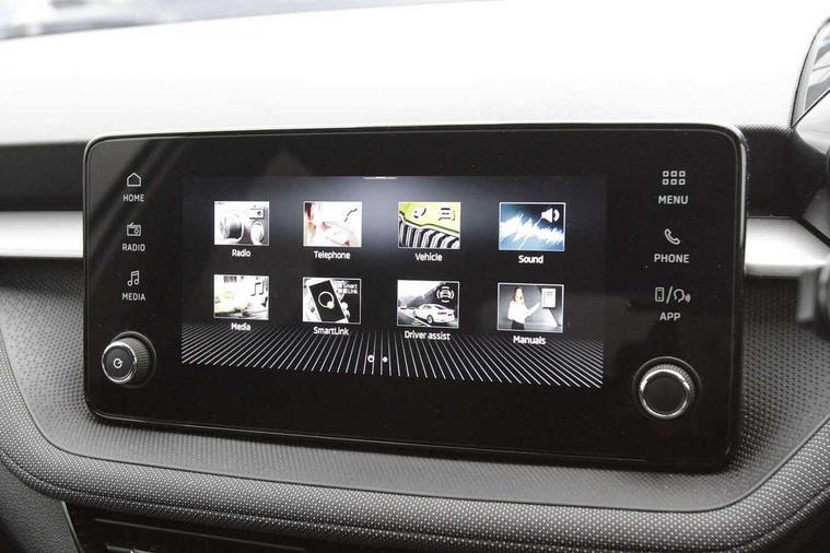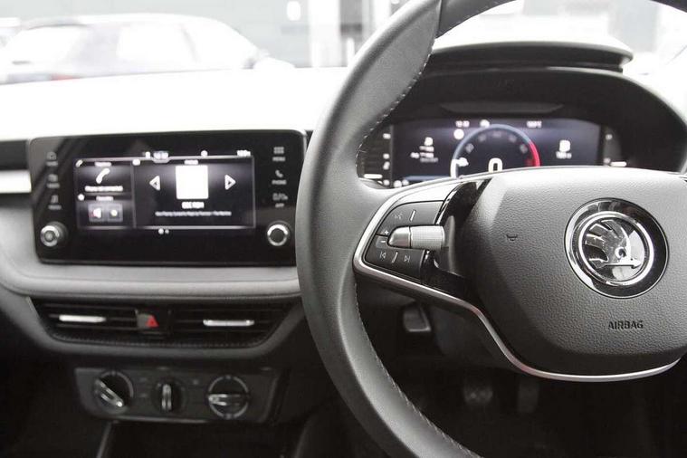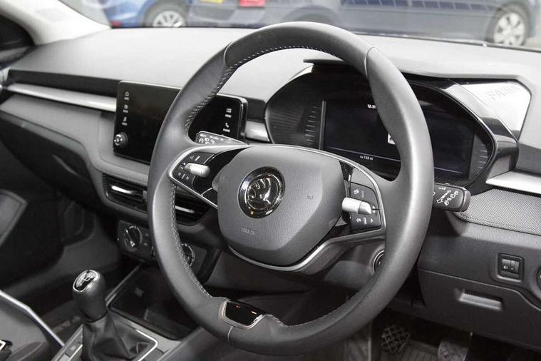 Advanced driver attention and drowsiness monitor, Bluetooth connection, Electromechanical power steering, Exterior temperature gauge, Service interval indicator, Traffic sign recognition, Virtual cockpit with 10.25" colour display, Wireless SmartLink for Apple CarPlay and Android Auto, 6 Speakers (4 in front and 2 in rear), Auxiliary socket for external MP3 player, DAB digital radio reception, Body coloured bumpers, Dimming rear view mirror with black frame, Door mirror integrated indicators, Front and rear electric windows, Front window wiper intermittent control, Headlight range control - Automatic, Ice scraper in fuel cap, LED daytime running lights with coming and leaving home feature, LED rear lights, Privacy glass, Rear LED fog light, Rear side wing doors, Rear window wiper with washing nozzles, Roof mounted spoiler, SKODA tailgate lettering in chrome, Third brake light, 2 reading lights in front and 2 reading lights in rear, 3 rear headrests, Backrest split and folding, Central console with removable cup holder and storage box, Chrome handbrake release button, Fabric upholstery, Front centre armrest, Gearshift knob/handle in leather, Grain satin black interior door handles, Hand brake lever handle in leather, Height adjustable front headrests, Height adjustable steering wheel, ISOFIX and TopTether anchorage points to the outer rear seats, ISOFIX and TopTether on the front passenger seat, Luggage compartment lighting, Manually adjustable lumbar support in front seats, Pollen filter, Rear seat bench unsplit, Single front passenger seat, Storm grey headlining, Sun visors with mirror and airbag label on passenger side, Textile floor mats, Ticket holder, Umbrella in drivers door, 3-point height adjustable front seats belts with pretensioner and force limiter, Automatic warning lights in case of crash, Driver and passengers airbag with switch off function, e-Call+, ESC including ABS, MSR, ASR, EDS, HBA and XDS, Front and rear seat belt warning, FRONT ASSIST (AEB City and AEB Inter Urban), Front side airbags, Head airbags, Hill hold control, One tone horn, Pedestrian protection, Three rear 3-points safety seat belts with pretensioner and force limiter including stop function for outer rear seat belts, Tyre pressure monitoring system, Anti-theft alarm system including immobiliser, interior monitoring, backup horn, and towing protection, Central locking with radio remote control, interior controls, SAFE function and 2 foldable keys, Colour Edition air vents, Grain satin black central console cover, Metallic grey upper decorative trim, Satin black door and side trim panel in front, Textile Kota grey lower decorative inserts, Anti-theft wheel bolts protection, Super-low rolling resistance tyres,