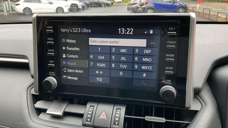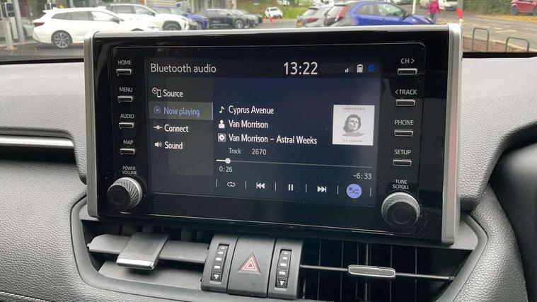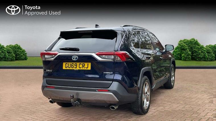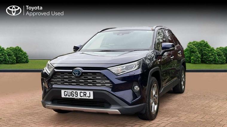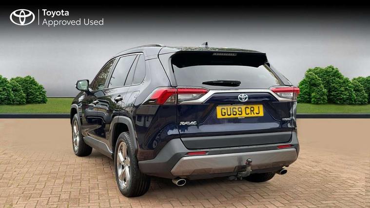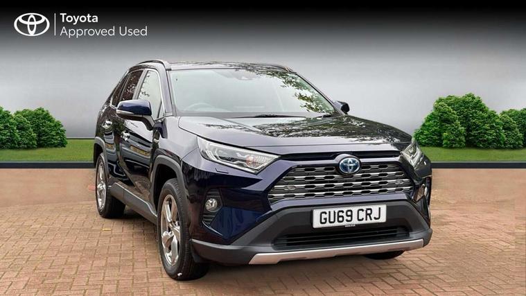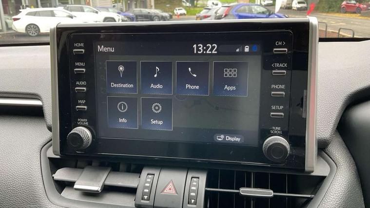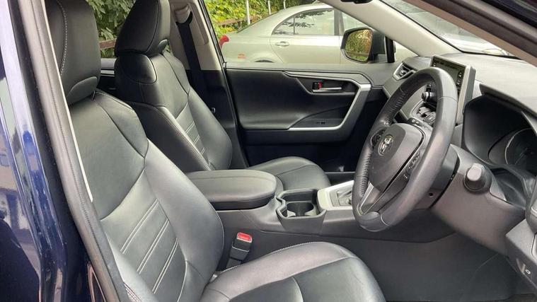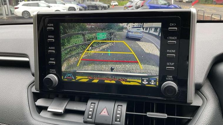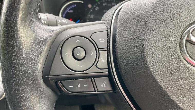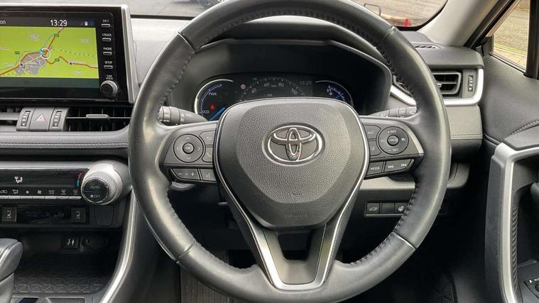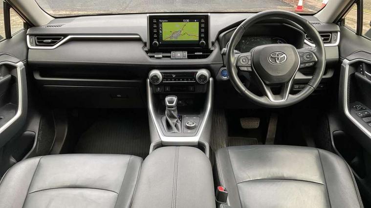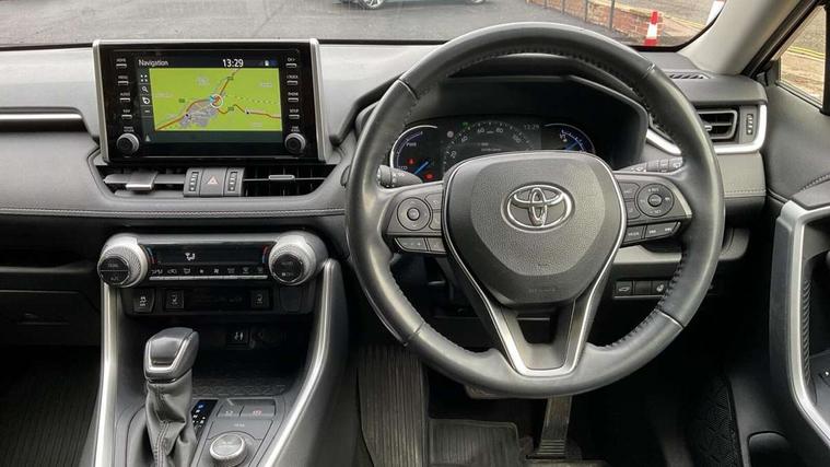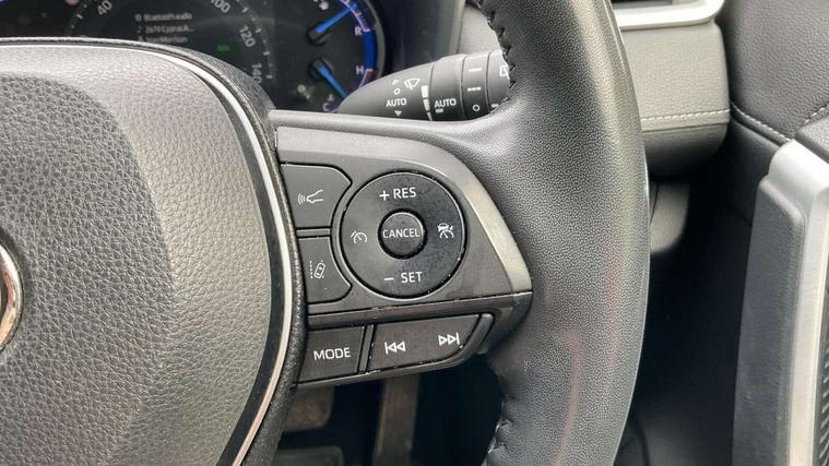 7" colour TFT display, Adaptive cruise control with lane trace assist, Adjustable speed limiter, Blind spot monitoring with rear cross traffic alert, Bluetooth system, Cyclist Detection, Drive mode selector, eCall emergency call system, ECO-driving indicator, Electric power steering, Hybrid system indicator, Lane departure warning system, Lights on warning, Low screen washer fluid warning, Night Time Pedestrian Detection, Pedestrial detection, Power boot opening and closing, Rear parking camera, Rear parking sensors, Remote boot door release in cabin, Tachometer, Touch 2 Go navigation system including 3D maps and voice control, Traffic sign recognition, Trip computer, Voice control system, Vehicle Stability Control (VSC), 6 speakers, 8" Multimedia display touch screen, Auxiliary socket for external MP3 player, DAB audio, Steering wheel mounted audio controls, Toyota touch media system, USB connection, Auto dimming interior mirror, Auto high beam, Automatic headlamp levelling, Automatic headlights, Automatically retractable door mirrors, Black roof rails, Body colour door handles, Body colour door mirrors, Body colour rear spoiler, Body coloured bumpers, Body coloured Shark-fin antenna, Door mirror puddle lights, Electric adjustable door mirrors, Emergency brake-light signal (EBS), Follow me home headlights, Front fog lights, Headlight cleaners, Heated door mirrors, LED daytime running lights, LED High mounted stop lamp, LED rear lights, Meshed upper front grille, Power front windows, Power rear windows, Privacy glass, Projector LED headlights, Rear screen wiper - intermittent, Rear windscreen defogger, Silver front under-run, Silver rear under-run, Trailer Sway Control, Turning signal integrated indicators in door mirrors, Windscreen wiper de-icer, 3 rear headrests, 60/40 split fold rear seat back, Boot light, Clean air filter, Driver and front passenger personal light, Driver and front passenger Whiplash Injury Lessening seats, Driver and passenger sunvisors with illuminated vanity mirrors, Driver seat memory function, Dual sided deck board in boot, Dual zone automatic air conditioning, Floor mats, Folding rear centre armrest, Front and rear bottle holders, Front centre armrest, Front footwell lights, Front headrests, Front seat and rear pockets, Front/rear roof mounted assist grips, Grey roof lining, Heated driver and front passenger seats, Heated steering wheel, Isofix child seat preparation, Leather gear shift with chrome surround, Leather upholstery, Light blue ambient lighting on front cupholders and open tray, Manual telescopic and tilt 3-spoke leather steering wheel with Chrome insert, Manually reclining and sliding front passenger seat, Pollen filter, Power height-adjustable sliding reclining and lumbar support for driver seat, Rear coat hooks, Rear door armrests, Rear passenger air vents, Reclining rear seats, Satin chrome interior door handles, Sunglasses holder, Parking pack - Rav4, 3x3 point rear seatbelts, ABS/EBD, Adjustable front driver and passenger seat belt extender, Brake assist function, Child proof door locks, Collision mitigation braking system, Driver/Front Passenger airbags, Driver/front passenger side airbags, Drivers knee airbag, Electronic parking brake, Electronic Stability Programme (ESP), Emergency brake light system (EBS), Front and rear curtain airbags, Front and rear seatbelt reminder, Hill start assist, Passenger airbag cut-off device, Seatbelt pretensioners with load limiters, Traction control, Tyre pressure warning, Alarm/immobiliser, Glass-breaking alarm sensors, Light - on and Key in reminder, Remote central locking, Smart entry + Smart start, Speed sensitive auto door locking, Tilt detection sensors, Piano black centre console with silver insert, Soft-touch black lower dashboard, Soft-touch black upper dashboard with silver insert, Full size spare wheel,