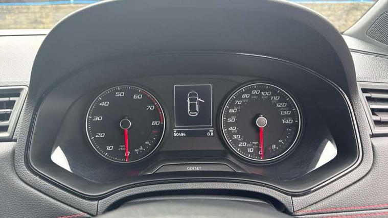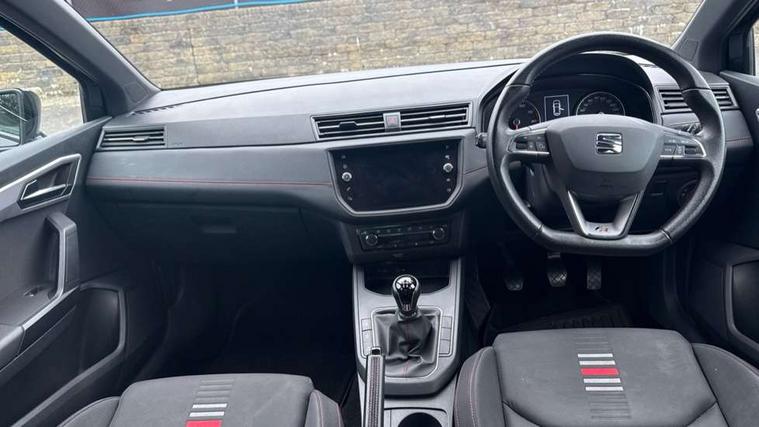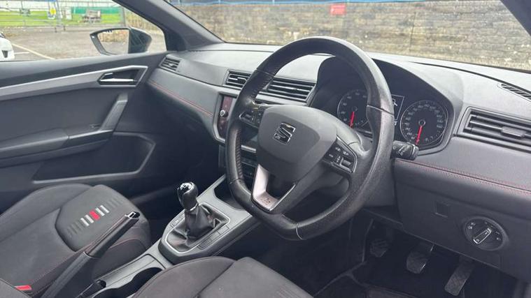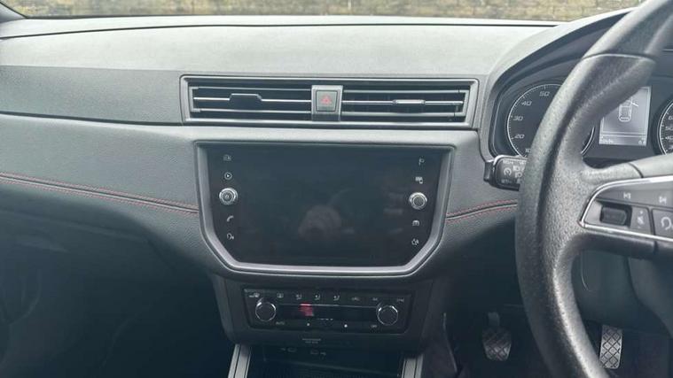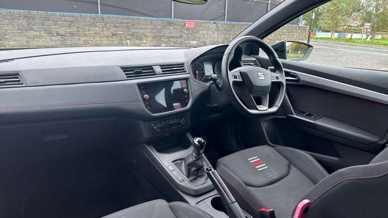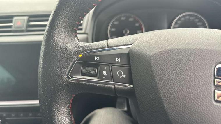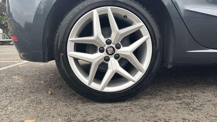 'Lights On' Reminder warning buzzer, Bluetooth audio streaming with handsfree system, Cruise control, Digital clock, Full Link Smartphone Integration with Mirror Link, Apple Car Play, Google Android Auto, Low fuel warning light, Navigation system with 8" touch screen + proximity sensor, voice control and USB type C sockets, Outside temperature gauge, Power Steering, Seat connect with safety, service, remote and online, SEAT Drive profile, SEAT logo boot release, Speed limiter, Trip computer, Sports suspension, 6 speakers, Auxiliary input socket, CD player, Digital Audio Broadcast (DAB) Tuner, Radio/MP3 player, SD card slot, Steering wheel mounted controls, USB (type C) cable for Apple and Android compatibility, Anti theft roof antenna, Auto dimming rear view mirror, Automatic headlights, Automatic rain sensing wipers, Body colour bumpers, Body colour door handles, Brilliant black door mirrors, Brilliant black window surrounds, Chrome front grille frame, Coming/leaving home lighting function, Dark tinted rear windows, Electric folding door mirrors, Electric front windows, Electric headlight adjustment, Electric rear windows, Electrically adjustable and heated door mirrors, Exclusive FR rear bumper, Front/rear fog lights, LED daytime running lights, LED headlights with dynamic headlight range control, LED tail lights, Rear spoiler with twin exhausts, 60/40 split folding rear seat, Ambient interior lighting, Chrome detailing, pearl grey headlining and leather effect door trim panels, Driver's sunvisor with ticket holder/vanity mirror, Dual zone climate control with combination filter, Front courtesy lights, Front cupholders x 2, Front reading lights, Gear shift indicator, Glovebox, Height adjustable driver's seat, Height adjustable passenger seat, Height/reach adjust steering wheel, Illuminated boot, Instrument lighting with brightness control, Leather dashboard, Leather multifunction flat bottomed steering wheel with FR logo, leather gear knob and handbrake, Nora cloth upholstery, Passenger sunvisor, Rear top tether child seat ISOFIX attachment, Sports seats, Two height adjustable front and rear headrests (three in rear), 3 point seatbelts on all 3 rear seats, ABS, Active front headrests, Child locks on rear doors, Curtain airbags, Driver/Front Passenger airbags, ESP+EBA, Front assist (AEB), Front passenger airbag deactivation, Front side airbags, Hill hold control, Multi-Collision braking, Seat belt reminder for front and rear seats, Tiredness recognition system, Tyre pressure monitoring system, Anti theft wheel bolts, Electronic engine immobiliser, Perimeter alarm and interior monitoring with backup horn and tow away protection, Remote central locking + deadlocks, 17" Dynamic alloy wheels,