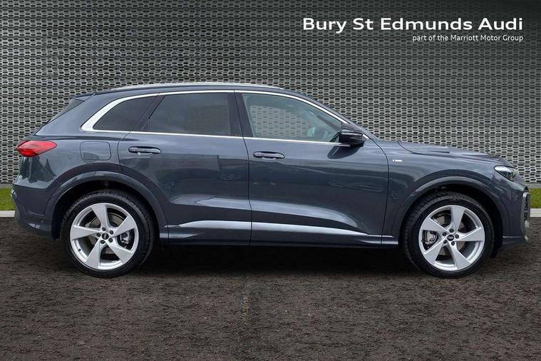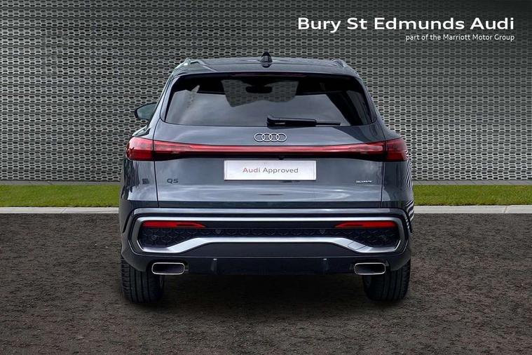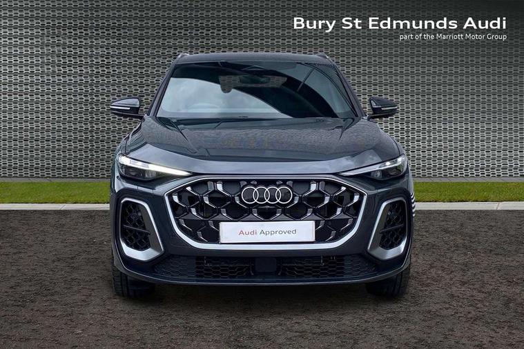Adaptive cruise control, Advanced driver attention alert, Audi application store, Audi connect emergency call and service, Audi drive select, Audi smartphone interface, Audi virtual cockpit plus with 11.9" OLED colour display, Camera based traffic sign recognition, Fatigue monitor, Front cross traffic intersection assist, Lane departure warning system, MMI navigation plus with high resolution 14.5" OLED touchscreen colour display, Park assist plus, Parking system plus with 360 display, PAS, Reversing camera, Swerve assist and turn assist, Traffic sign based speed limiter, 2 USB-C ports in both the front and rear, Audi sound system impressive sound with 10 loudspeakers including centre speaker and subwoofer, 6-channel amplifier with a total output of 180 watts, DAB Digital radio, Smartphone compartment with wireless charging, Aluminium roof rails, Auto dimming rear view mirror, Body coloured door mirrors, Coming/leaving home lighting function, Electrically adjustable heated and folding + automatically dimming exterior mirrors, Front and rear electric windows, Front door sill trims with aluminium inlays, illuminated with 'S' logo, Headlight cleaning system, Heated rear window, High beam assist, High gloss window surrounds, Inlay and front air inlets in matt anthracite chrome, LED headlights plus incl. digital DRL, dynamic coming and leaving home function with turning/all weather/motorway/manouevring and intersection lights, LED rear lights pro incl. dynamic rear indicators and illuminated light strip with animated coming and leaving home function, Logo projection light in exterior mirrors, Privacy glass, Projection light for rear window, Radiator grille in phantom black, Rear and side windows with heat insulating glass, Rear honeycombe grille in matt black with inlay in matt anthracite chrome, Rear side wing doors, Rear wash/wipe, Red S line rhombus badging on rear, S line bumpers in contrasting Volcano grey metallic paint finish, Towbar preparation, Windscreen with acoustic glazing, 3 rear head restraints, 3 seat bench in 2nd row, 3 spoke leather steering wheel with multi-function buttons with touch control, flattened on top and bottom, with S badging and contrast stitching, 40:20:40 split folding rear seat bench with centre armrest and cup holders, Comfort centre armrest, Deluxe 3 zone electronic climate control, Front and rear floor mats, Front seats with manual adjustment for position and 4-way electric lumbar support, Front sport seats with integrated head reastrains, Headlining in black cloth, Heated front seats, i-Size child seat mounting on the front passenger side and i-Size and top tether on the outer rear seats, Interior trim in aluminium look, Luggage compartment lid, electrically opening and closing, Manual steering column adjustment, Single front passenger seat, Softwrap in leatherette, Stainless steel pedals and footrest, Steering wheel grips in perforated leather and shift paddles, Ambient lighting package plus - Q5, Storage and luggage compartment pack - Q5, ABS, Acoustic vehicle alerting system, Driver and front passenger airbag with passenger airbag deactivation, Electric child safety locks, First aid kit with warning triangle and high visibility vests, Front emergency brake assist, Front side airbags with head airbag system and front interaction airbag, Hill hold assist, Rear seat occupant reminder, Tyre pressure loss indicator, Anti theft alarm, Anti-theft wheel bolts, Remote control key with SAFELOCK and keyless go, Accent surfaces and control buttons in gloss black, Anthracite matt brushed aluminium inlays with linear embossing, Black dashboard with contrast stitching, Upper and lower interior elements in artificial leather, Tyre repair kit,
