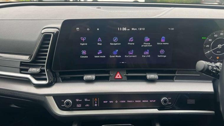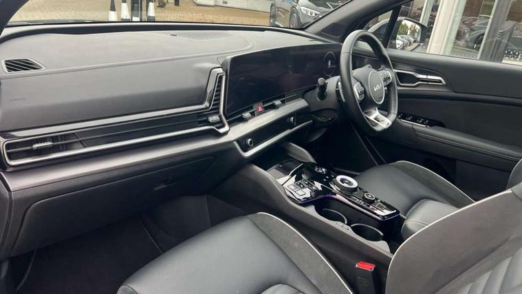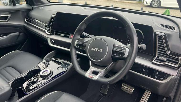 12.3" Display with navigation, 12.3" supervision colour cluster display, 360 degree around view monitor, Apple car play/Android Auto with voice control, Blind spot collision avoidance assist, Blind spot view monitor, Drive mode selector, E-call, Forward collision avoidance assist (FCA) - city/pedestrian/cyclist/junction covering, Front and rear parking sensors, Highway Driving Assist (HDA), Intelligent speed limit assist, Kia Connect (UVO), Lane Following Assist (LFA), Lane keep assist, Low washer fluid warning, Parking collision avoidance assist (PCA), Remote smart parking assist, Reversing camera system integrated into centre fascia screen, Smart cruise control with stop and go functionality, Smart power tailgate, Speed sensitive power steering, Trip computer, Windscreen washer level indicator, Wireless Smartphone charger, Intelligent Stop and Go, Bluetooth audio streaming, DAB Radio with MP3, Harman Kardon premium sound system, Rear USB port, Steering wheel mounted audio controls, USB C type charging ports on centre console, USB C type charging ports on side of front seats, USB port for connection of a media device, All round electric windows with drivers and front passenger auto up/down function, Automatic headlight control system, Automatic window defogger, Backlite glass heated with timer, Body colour and black bumper with silver accents, Body colour exterior door handles, Body colour radiator upper garnish and door garnish, Dual LED adaptive headlamps, Electric panoramic glass sunroof (Electric one touch with safety function), Electrically adjustable/heated/folding door mirrors with LED indicators, Front and rear chrome skid plates, Gloss black door mirrors, Gloss black radiator grille, Gloss black side sill and wheel arch body mouldings, Glossy black roof rack, High beam assist, Interior electrochromic mirror, LED daytime running lights, LED front fog lamps, LED High mounted stop light, LED rear combination lamp, Rain sensing wipers with aero blades, Rear fog lamp, Rear privacy glass, Rear side wing doors, Rear spoiler, Rear wiper, Satin finished beltline, Trailer stability assist, 10 way driver/8 way passenger electrically power adjustable seats, 12V power socket in front centre fascia and luggage compartment, 3 seat bench in 2nd row, 3 x passenger assist grips, 40/20/40 split folding rear seat, All-round height adjustable headrests, Ambient lighting, Black headlining, Centre console storage box, Cupholders in rear armrest, D-Shaped sports leather steering wheel and perforated inserts with GT-Line logo, Door courtesy lamps, Drink holder at centre armrest, Driver and front passenger side sunvisors with illuminated vanity mirrors, Driver seat memory function, Drivers seat power lumbar support, Front and rear door storage, Front seat and rear pockets, Front/rear centre armrests, Gear shift indicator, Glovebox illumination, Heated front and outer rear seats, Heated steering wheel, Interior door lock/unlock function, ISOFIX Child seat top tethers and anchor fixings outer rear seats, LED interior personal lamp, LED lighting in overhead console, Luggage area LED light, Luggage area load cover, Luggage net with hooks, Metal paint interior door handles, Paddle shift controls, Rear coat hooks, Single front passenger seat, Sports pedals, Suede leather upholstery, Three zone climate control, Tilt/telescopic adjustable steering wheel, Ventilated front seats, Ventilation ducts to rear compartment, Active front headrests, All round 3-point seatbelts, Anti-lock braking system (ABS), Dual front side airbags, Dual horn, Electronic parking brake, Electronic stability control with downhill brake control, Front passenger airbag cut-off switch, Front seatbelt pretensioners + load limiters, Height adjustable front seatbelts, Hill start assist control (HAC), Impact sensing auto door unlocking, Multi collision brake assist, Rear door child safety locks, Rear seat alert system, Traction control, Twin curtain airbags, Twin front airbags, Tyre pressure monitoring system, Advanced anti-theft system including immobiliser and alarm, Door deadlocks, Engine Start/Stop Button with Smart Entry System, Locking wheel nuts, Speed sensitive auto door locking, Visible vehicle identification number, Aluminium pattern finish centre fascia and door garnish, 18" Alloy wheels, Michelin tyres, Tyre mobility kit,