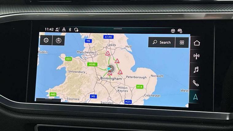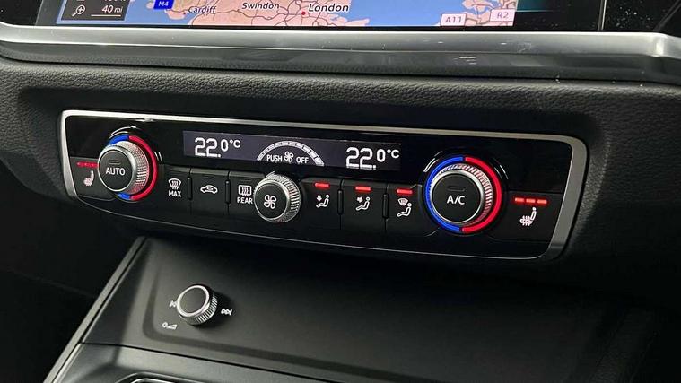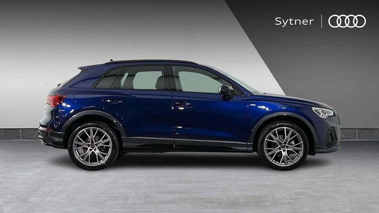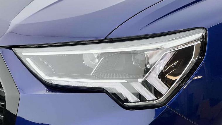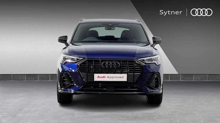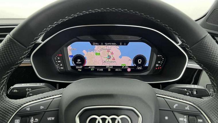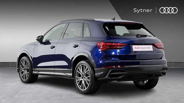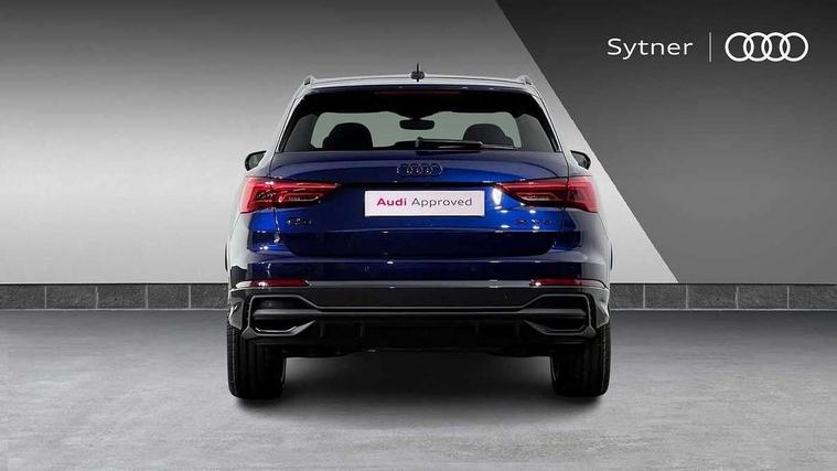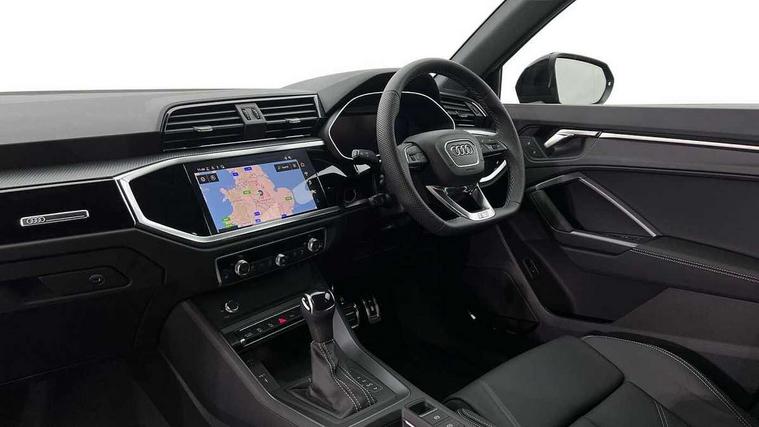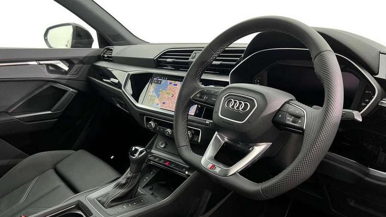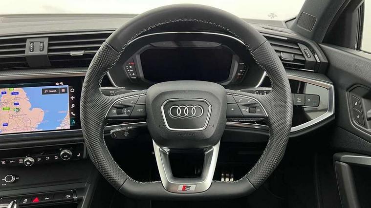 Amazon alexa Integration, Audi connect safety and service, Audi drive select, Audi lane departure warning, Audi Virtual Cockpit - 10.25" display, Bluetooth interface, Camera based traffic sign recognition, Distraction and Fatigue warning, Legal emergency call, MMI Navigation Plus with high resolution 10.1 inch touchscreen colour display, Power operated tailgate, Progressive steering, Service interval indicator, Smartphone interface includes wireless Apple carplay/Android Auto, Start stop system with recuperation, Voice control system with natural language interaction, Sports suspension, 2 USB-C ports with charge and data functions, 6 passive loudspeakers, DAB digital radio module, Acoustic windscreen, Audi Beam uses LEDs to project the Audi logo onto the ground as you exit your Q3, Auto dimming door mirrors, Auto dimming frameless rear view mirror, Black roof rails, Electrically folding, adjustable and heated door mirrors with integrated LED side indicators and kerb view function for passenger side, Front and rear electric windows, Front fog lights, Grille vertical bars in aluminium silver/Matt, High gloss black finish B and C pillars, LED Dynamic rear indicators, LED headlights with LED daytime running lights, LED rear lights, LED third brake light, Privacy glass dark tinted rear and rear-side windows (from B-pillar backwards), Rain and light sensors, Rear diffuser grille in grained matt black, Rear diffuser strip in matt anthracite black, Rear side wing doors, Rear wiper, S line bumpers in contrasting Manhattan grey, Variable front intermittent wipers, 12V socket in rear centre console, 3 seat bench in 2nd row, 40:20:40 folding with manual adjustment for 60:40 forwards/backwards position and backrest angle, Adjustable rear seat bench/backrest with centre armrest and cupholder, Black cloth headlining, Dual zone electronic climate control, Electric lumbar support, Front and rear black floor mats with contrast stitching in rock grey, Front and rear headrests, Front centre armrest, Height and reach adjustable steering wheel, Illuminated door sill trims with S logo, ISOFIX child seat mounting for front passenger with airbag deactivation and outer rear seat including top tether attachment point for outer rear seats, Manual front seats with height adjustment, Perforated leather gearknob, Single front passenger seat, Stainless steel luggage compartment sill finisher, Stainless steel pedals, Twin leather upholstery with front sport seats + S embossing, Black styling pack - Q3, Non smoking pack - Q3, 3x3 point rear seatbelts, 6 airbags - Driver, front passenger, curtain and side windows, Audi pre-sense front with pedestrain and cyclist recognition, Electrically operated child locks on rear doors, Electromechanical parking brake, Electronic stabilisation control including ABS, ASR and EDL, Front seatbelt reminder, Hill descent control, Hill hold assist, Pre sense basic, Seatbelt monitoring, Tyre pressure warning, Warning triangle and first aid kit, Anti theft wheel bolts, Immobiliser, Remote central locking, Thatcham approved category 1 anti theft alarm, Aluminium look interior elements, Detail dashboard around MMI touch colour display in glass look, black with surround in aluminium look, Leatherette door armrest, Piano black inlay,