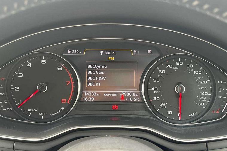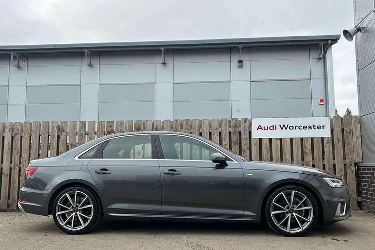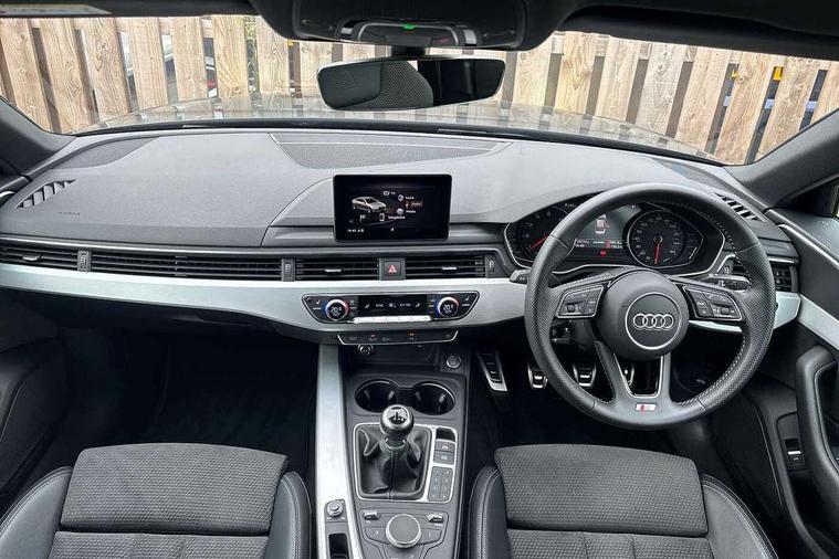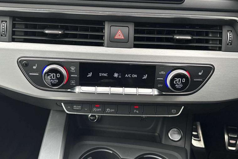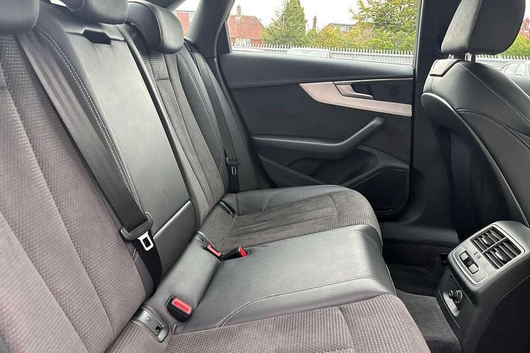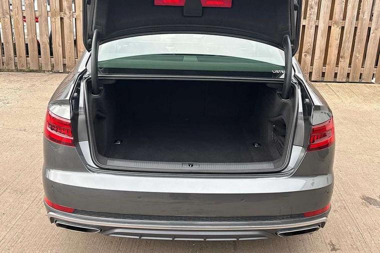 7" Colour driver information system, Audi connect safety and service (e-call), Audi drive select, Audi parking system plus with front and rear sensors, Audi Pre sense collision avoidance, Bluetooth interface, Electric boot release, Electromechanical power steering, MMI SD card Navigation, Service interval indicator, Stop/start button, Voice control system, 54 litre fuel tank, 2 USB interfaces and Aux-In jack, DAB digital radio module, Acoustic windscreen, Air inlets in titan black with two horizontal inlays in chrome, Aluminium window trim, Auto dimming rear view mirror, Automatic headlights + automatic windscreen wipers, Black grained rear grille, Blue tinted glass, Body colour bumpers, Body colour door handles, Body colour door mirrors, Chrome rolled exhaust, Chrome tailpipe finisher, Electric front windows, Electric rear windows, Headlight range control, High beam assistant, High gloss black triangular aperture at rear door, LED daytime running lights, LED indicators in door mirrors, Rain and light sensors, Rear diffuser in Twilight grey matt, S Line badges on the front wings, S line front and rear bumpers with side skirts, Twilight grey matt radiator grille with chrome inlay, 3 zone climate control, 4 way electric lumbar support for driver and front passenger, 40/20/40 split folding rear seats with rear centre armrest, Black cloth headlining, Contrast stitching on seats, steering wheel and gear lever gaiter, Front centre armrest, Front headrests, Front/rear floor mats, Height and reach adjustable steering wheel with full size airbag, Illuminated door sill finishers, Isofix child seat preparation for front passenger/outer rear seats inc passenger airbag deactivation, Jack and tool kit, Luggage compartment carpet, Perforated leather gearknob, Rear headrests, Stainless steel foot rest, Stainless steel pedals, Sunvisors with vanity mirrors, Top tether anchor plate for isofix child seat, Non Smokers pack, S line exterior styling pack - A4 Saloon, 3 point seatbelts on all rear seats, Adaptive driver and front passenger airbags, Electromechanical parking brake, Electronic stabilisation control including ABS, ASR and EDL, Front head airbags, Front seatbelt pretensioners + load limiters, Front side airbags, Multi-Collision braking, Pop-up bonnet for pedestrian protection, Seatbelt warning, Traction control, Tyre pressure warning, Variable restraint system, Warning triangle and first aid kit, Anti theft alarm, Keyless Start, Locking wheel bolts, Remote central locking, Thatcham category 1 alarm + immobiliser, MMI radio plus with smartphone interface, Tyre repair kit,