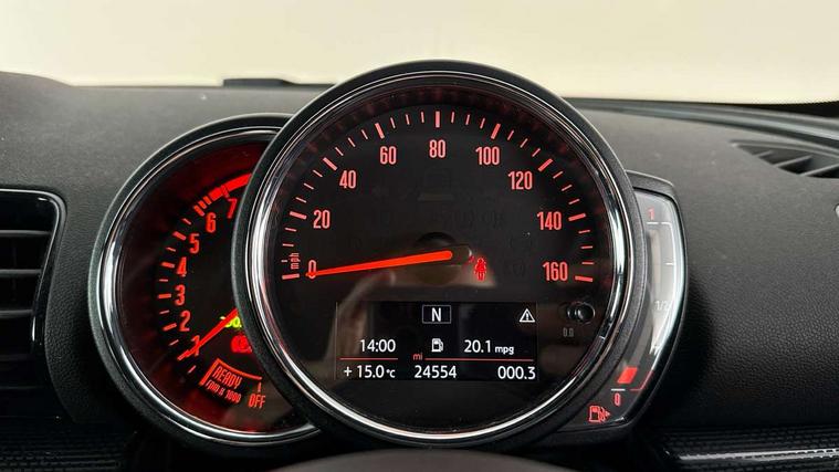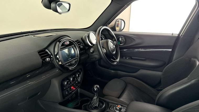 Apple car play, Brake pad wear indicator warning light, Central display with LED ring and 6.5" colour touch screen, Connected driver, DTC - Dynamic traction control, Exterior temperature gauge, Intelligent emergency call, MINI remote services, MINI TeleServices, Navigation system, On board computer, Personal Profile, Real time traffic information, Service interval indicator, Servotronic speed sensitive power steering, Electronic differential lock, Performance Control, Auxiliary input socket, DAB digital radio module, MP3 compatible radio/single CD player, Radio visual boost, Anti dazzle rear view mirror, Body colour scoop integrated into engine- compartment lid, Body coloured bumpers, Chrome door handles, Chrome headlight surround, Electric front windows + one touch + anti-pinch, Electrically adjustable door mirrors, Follow me home headlights, Front intermittent wipers, Heated door mirrors/heated windscreen washers, Heated rear window with timer, Honeycomb radiator grille, Illuminated door handles, Metal look door sill finishers, Rain sensor including auto headlights activation, Rear wiper, Roof spoiler, Twin chromed exhaust pipes, White indicator lights, 12V power point front, 4 lashing points to secure luggage, 60/40 split folding rear seat, Centre console storage box, Chrome interior door handles, Driver/passenger sunvisors, Easy entry seats, Front and rear cupholders, Front headrests, Front interior light, Front passenger grab handle, Front seat backrest storage nets, Heater with recirculation function, Height/reach adjust steering wheel, Isofix rear child seat preparation, Luggage compartment lighting, Multifunction steering wheel, Outer passenger rear headrests, Rear armrest with storage, Rear grab handles, Sport front seats, Storage compartments in doors, Toolkit in luggage compartment, Interior lights pack - Mini Clubman, 3 point automatic seatbelts, 3 point seatbelts on all rear seats, ABS, Automatic Stability Control (ASC), Cornering brake control (CBC), Crash Sensor - activates hazard/interior lighting + unlocks doors, Driver and passenger airbags, Driver and passenger side airbags, DSC - Dynamic Stability Control, Electronic brake force distribution, Electronic parking brake, Front curtain airbags, Front passenger airbag deactivation, Fuel cut off safety device, Hill start assist, Pyrotechnically pre-tensioned front seatbelts, Traction control, Twin horns, Tyre pressure warning, Drive away door locking, Keyless Start, Locking wheel bolts, RF remote control central locking, Second remote key, Thatcham category 1 alarm + immobiliser,