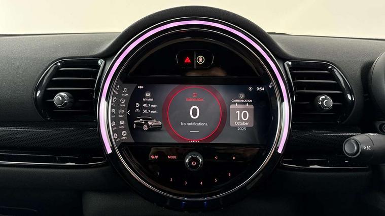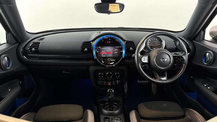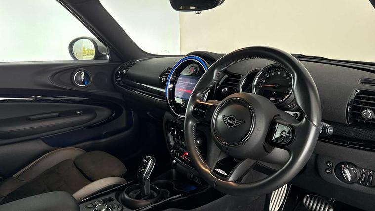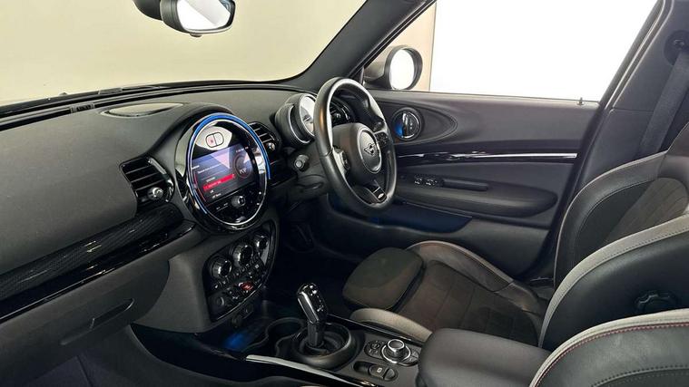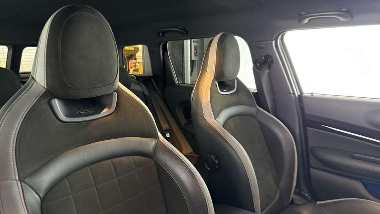 Active Guard incl speed limiting and lane departure functions with auto steering, and front collision warning with brake intervention, Automatic start/stop function with brake energy recuperation, Car sharing preparation, Compatible mobile phone bluetooth with audio streaming, Electro-mechanical speed dependant steering assistance, Instrument cluster, Mini E-call, MINI TeleServices, On board computer, Rear parking distance control, 7 Speed steptronic transmission with double clutch including electronic gear shifter, Double Vanos system, Fully variable valve control, High precision injection, Performance Control, FM tuner and DAB digital radio, A-panel shadow design with integrated scuttle trim, Body colour fuel filler cap, Door sill strips, Dynamic brake lights, Electric windows, Exhaust tailpipe, Heated rear window, Heated windscreen washer jets, John Cooper Works - aerodynamic kit (front and rear apron, spoiler), front and rear sport bumpers and part-painted side sills with door sill finishers, John Cooper Works rear spoiler, LED headlights with closed ring as daytime driving lights, LED rear light with union jack design, Left exhaust tailpipe with chrome finisher, Model logo on rear doors, Piano black exterior, Radiator grille, Rain sensor with auto headlights, Rear fog lights, Rear window wiper, Shadow design bonnet, Silver roof and mirror caps, Special metallic paint, Split rear doors, Sun/heat protection glass, White indicator lenses, 12V Accessory socket in centre console, 360L luggage compartment capacity, 4 lashing eyes in luggage compartment, 60/40 split folding rear seat, Anthracite headlining with grab handles and clothes hooks, Chrome interior highlights, Cupholders, English handbook, Floor mats, Glove compartment, Height and length steering column adjustment, Interior dashboard trim Shadow logo, Interior lighting with 12 basic colours selectable via toggle switch in roof, Interior tread plates in Shadow design, Isofix rear child seat preparation, John Cooper Works leather gearshift lever and handbrake gaiter, John Cooper Works sports seat with integrated headrest, adjustable thigh support and John Cooper Works logo, LED reading lights, vanity mirror lights, front foot well light and spotlight on front seats, Lower roof section Shadow logo, Manual air conditioning, Multifunction steering wheel, Nappa leather steering wheel with JCW badge, Stainless steel pedals, Storage compartments in doors, Sunvisors with vanity mirrors, Toolkit, Excitement pack - Clubman, Extended interior lighting pack - Mini Clubman, Navigation pack - Clubman, 2 tone horn, 3 point seatbelts on all seats, 6 Airbags - front, side, head and seat belt tensioners, Anti-lock braking system (ABS), DSC - Dynamic Stability Control, Electronic handbrake, Front and rear disc brakes, Tyre pressure monitoring system, Alarm system with tilt sensor, monitoring doors, bonnet interior and tailgate, Auto drive away locking, Deadlocking function, Electronic vehicle immobiliser, Locking wheel bolts, Start/stop toggle with keyless go, Piano black interior trim, 19" John Cooper Works circuit spoke alloy wheels, Tyre repair kit,