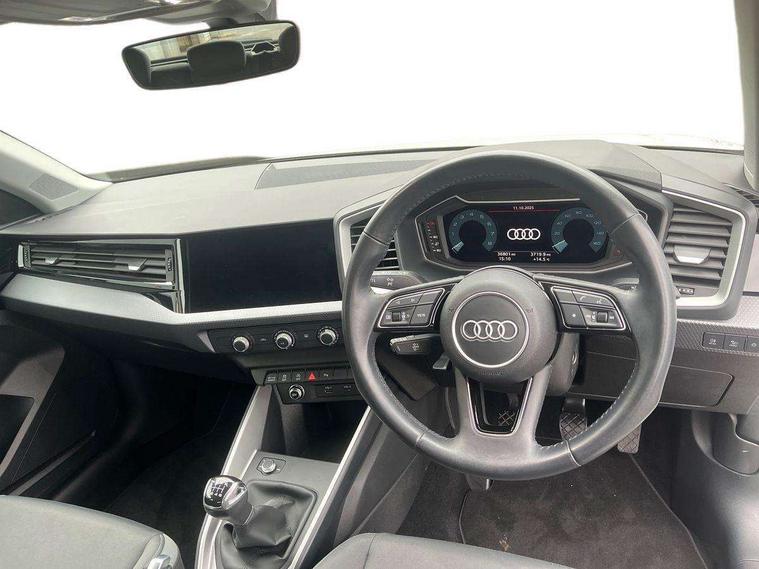 10.25" Digital instrument cluster display screen, Audi connect safety emergency and service including E-call, Audi drive select, Audi smartphone interface, Automatic start/stop system, Bluetooth interface, Driver's information system, Electromechanical power steering, Lane departure warning system, Service interval indicator, Speed limiter, Voice control system, Washer fluid level indicator, Dynamic suspension, 1 x SDXC card reader, 1 x USB type C and 1 USB type A charging points, Audi music interface, Bluetooth audio streaming, DAB Digital radio, MMI radio plus with 8.8" colour MMI display screen and MMI touch, Auto dimming rear view mirror, Body coloured bumpers, Body coloured door mirrors, Electric front and rear windows, Front side air inlets in grained matt black and C frame in titanium black, Heat insulating glass windscreen and side windows, Heated rear windscreen, LED headlights with LED rear lights + dynamic rear indicators, Radiator grille in matt titanium black, Radiator protective grille frame in matt aluminium silver, Rain and light sensors, Rear fog lights, Rear wiper, Side front spoiler lips in grained matt black, Titanium black matt diffuser, 12V socket in centre console with two cup holders, 3 rear seats, Door sills trims with aluminium inlays, Driver and passenger seat with manual height adjust with forward and backwards adjustment, Front head restraints, Front/rear floor mats, Height and reach adjustable steering wheel, Illuminated glovebox, ISOFIX child seat mounting in front passenger and rear outer seats, Leather gear knob with aluminium trim, Leatherette handbrake grip, Luggage compartment light with front and rear reading lights, Lumbar adjustment for front seats, Novum cloth upholstery with front sport seats, Rear head restraints, Split folding rear seats, Titanium grey cloth headlining, 3x3 point rear seatbelts, Audi pre-sense front with pedestrain and cyclist recognition, Brake assist function, Driver and front passenger airbag with front side and head airbags, Electronic Stability Control including ABS, EBD, ASR and EDL, Front and rear seatbelt reminder, Front passenger airbag deactivation switch, Hill hold assist, Seatbelt height adjustment for front seats, Seatbelt monitoring, Tyre pressure warning light, Warning triangle and first aid kit, Anti theft alarm, Anti theft wheel bolts and loose wheel warning, Immobiliser, Remote central locking with 2 remote folding keys, Aluminium trim for control switches, air vents and digital instrument cluster, Silver grey accent areas including air vents, door handle recesses and centre console in diamond paint finish, Slate grey inlays polygon structure in fine paint finish,