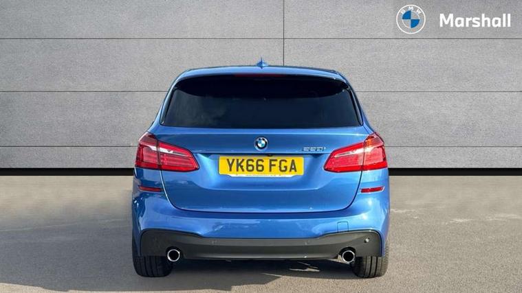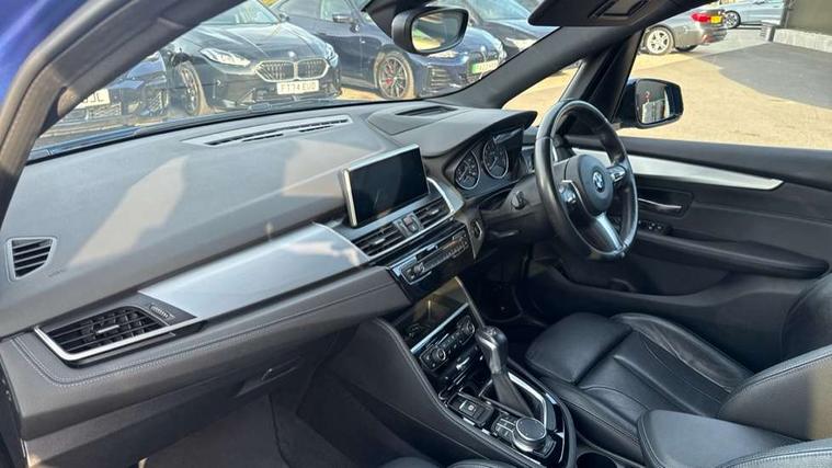Attentiveness assist, Automatic tailgate operation, BMW Online services, BMW Teleservices, Check control system, Door/boot open warning light, Forward collision warning, Lights on warning, Oil temperature gauge, On board computer, Outside temperature display, Personal Profile, Service interval indicator, Speed limiter, Stop/start button, Drive Performance Control, Electronic differential lock, Bluetooth audio streaming, BMW professional radio/CD/MP3, DAB Digital radio, Body colour bumpers, Body colour door handles, Body colour door mirrors, Body colour roof mouldings, Chrome kidney grille with black vertical slats, Door mirror integrated indicators, Door sill finishers, Electric adjustable heated door mirrors, Electric front/rear windows with one touch/auto up/down, Follow me home headlights, Front fog lights, Heat insulating tinted glass, Heated windscreen washer jets, High beam assistant, LED daytime running lights, Rain sensor including auto headlights activation, Rear wiper, Twin chrome exhaust tailpipes, Welcome lighting, 12V sockets in front centre console and passenger footwell, 3 rear headrests, 3 spoke sports leather multi-function steering wheel, 4 grab handles, Anthracite Velour floor mats, Dual zone automatic air conditioning, Front armrest, Front head restraints, Front/rear armrests within door panels, Illuminated glovebox, Isofix front passenger and rear seat preparation, Luggage compartment lighting, Reach + rake adjustable steering column, Rear centre armrest, Sunvisors, Extended storage pack - 2 Series Active/Gran Tourer, 3 point seatbelts on all seats, ABS, BMW emergency call, Brake assist function, Childproof rear door locks, Collision mitigation braking system, Crash Sensor - activates hazard/interior lighting + unlocks doors, Driver/Front Passenger airbags, DSC+, Dynamic Traction Control - DTC, Front and rear curtain airbags, Front passenger airbag deactivation, Front seatbelt force limiters, Front seatbelt pretensioner, Front side airbags, Hill start assist, Seatbelt warning, Side impact protection, Tyre pressure monitoring system, Warning triangle and first aid kit, Drive away door locking, Electronic immobiliser, Key integrated remote control central locking, Locking wheel bolts, Remote control Thatcham category 1 alarm,