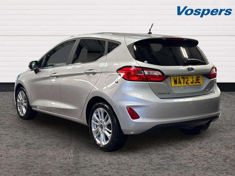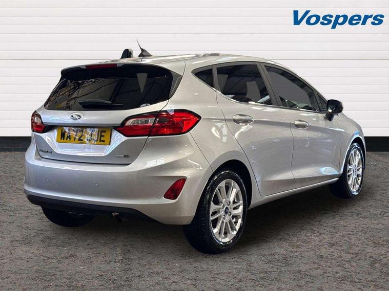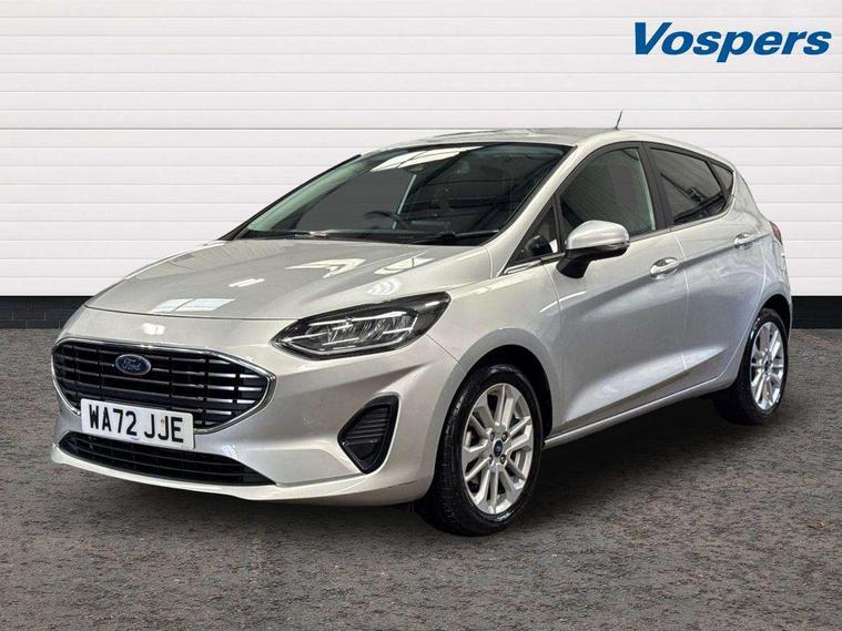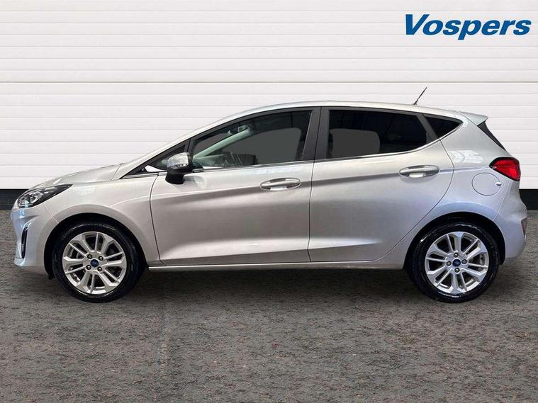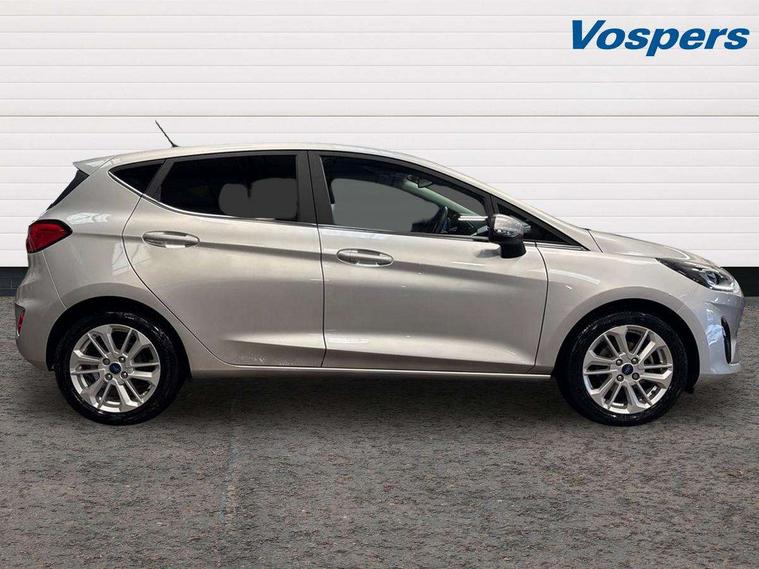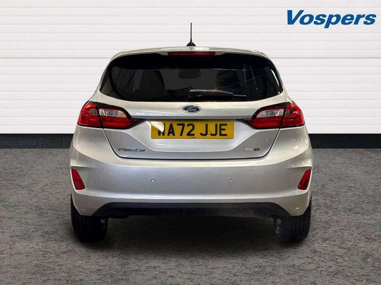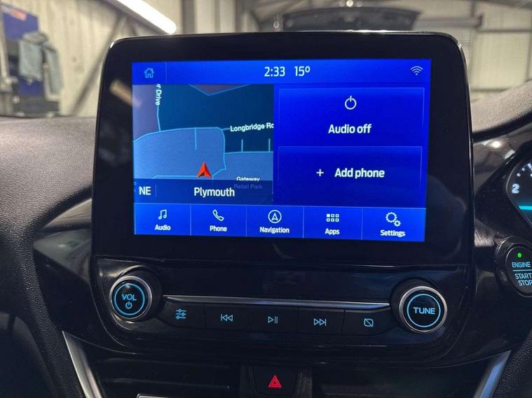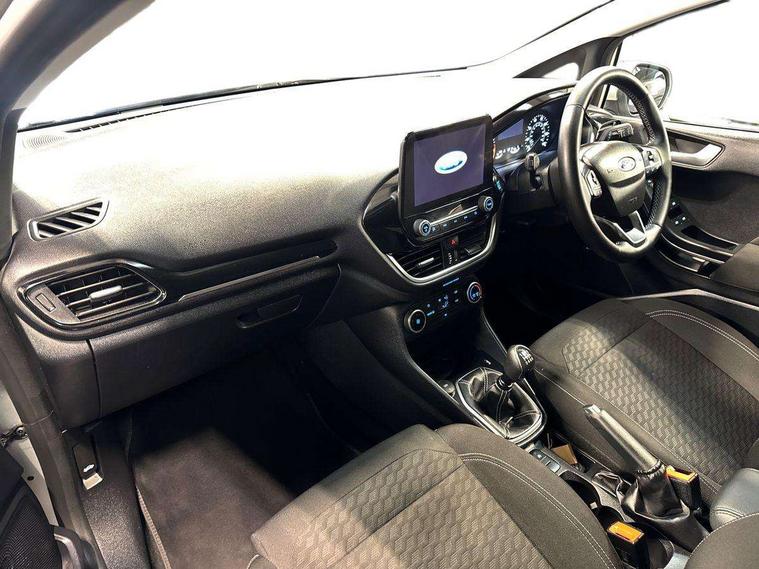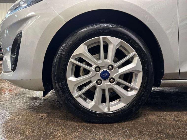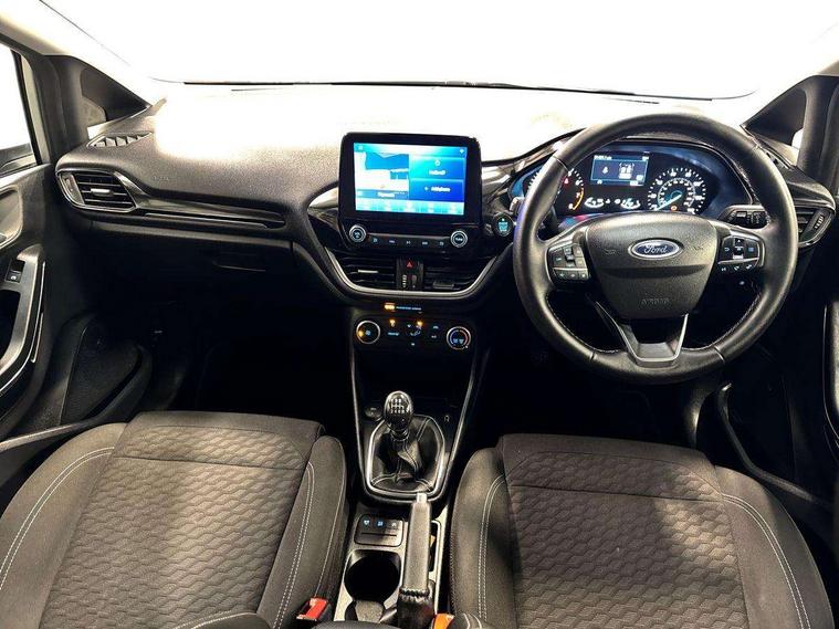 Bluetooth system, Electric power steering, Ford easy fuel, Ford SYNC 3 Navigation system incl 8" touchscreen, 7 speakers, FordPass connect, Apple carplay, android auto, voice control and emergency assistance, Rear parking distance sensors, Selectable drive modes (Normal, Sport, Track), Trip computer, 2 USB ports, Auxiliary input socket, DAB Digital radio, Steering wheel mounted controls, Body colour bumpers, Body colour door handles, Body colour rear spoiler, Body coloured electrically operated and heated door mirrors with side indicators, Chrome beltline trim, Chrome front grille, Chrome lower window surround, Cornering front fog lights, Electric front windows/one touch facility, Electric rear windows, Quickclear heated windscreen, Rain sensing wipers and auto dimming rear view mirror, Rear privacy glass, Rear wiper, 3 spoke leather trimmed steering wheel with audio control, 60/40 split folding rear seat, Adjustable head restraints, Boot carpet, Centre console with opening armrest, 2x cupholders, 12v and USB, Chrome inner door handles, Cloth upholstery, Footwell illumination, Front floor mats in velour, Front map reading lights, Front seat and rear pockets, Illuminated glovebox, Leather gaiter, Load area light, Luxury woven headliner, Manual 2 way passenger seat adjust, Manual 4-way driver seat adjust, Manual air conditioning, Overhead console with sunglasses holder, Pollen filter, Rake/reach adjustable steering wheel, Sensico wrapped steering wheel, NCAP Pack - Fiesta, 3 point seatbelts on all rear seats, ABS+EBA, Curtain airbags, Driver and passenger airbags, Drivers knee airbag, Electronic stability control with hill start assist, Front passenger airbag deactivation, Front side airbags, Seatbelt warning, Two tone horn, Tyre pressure monitoring system, Keyless start with 'Ford Power' starter button, MyKey system, Remote central locking & engine immobiliser, Thatcham Cat.1 alarm, 16" 10 spoke alloy wheels,