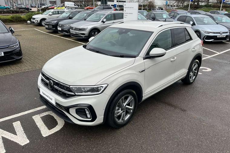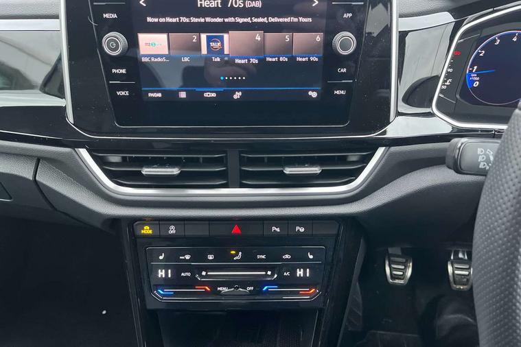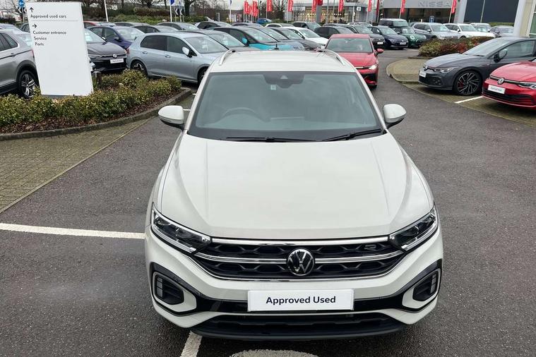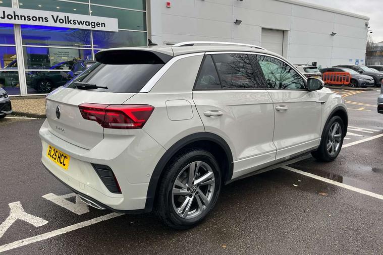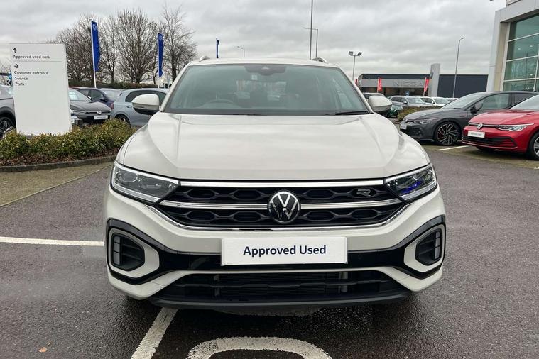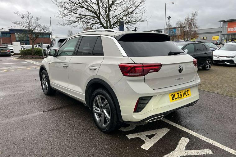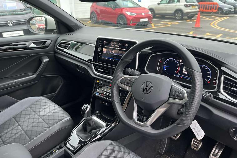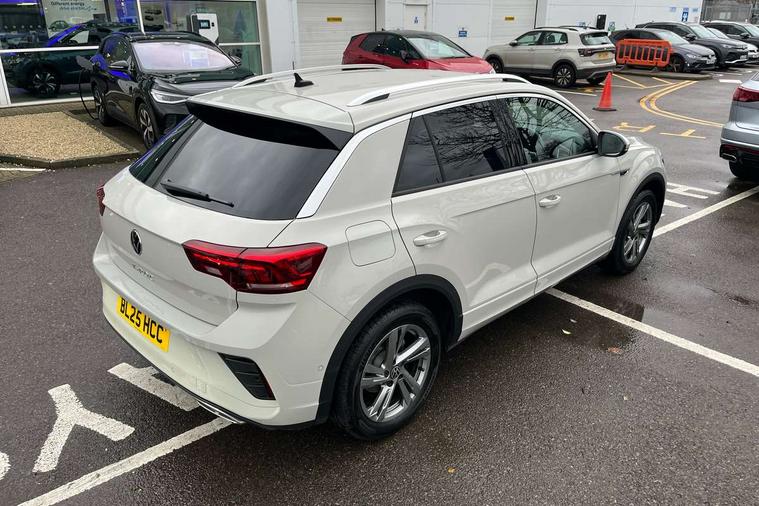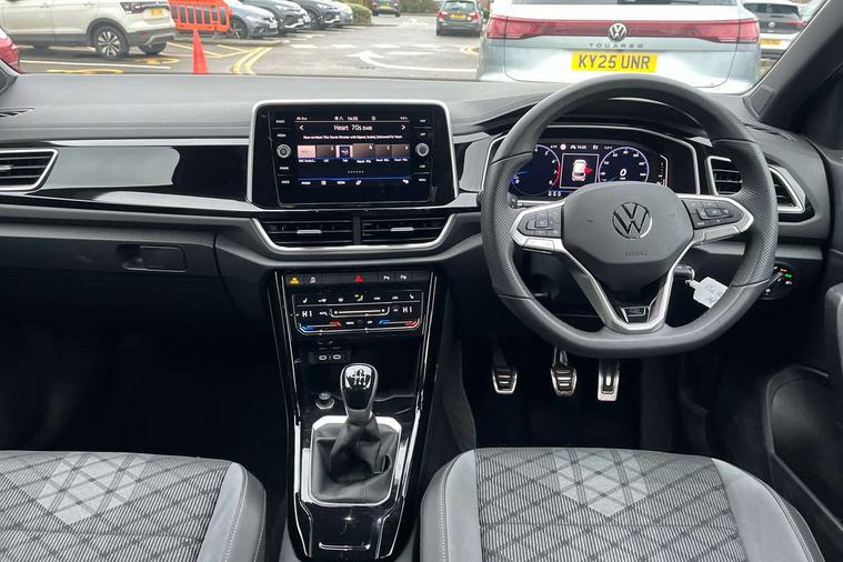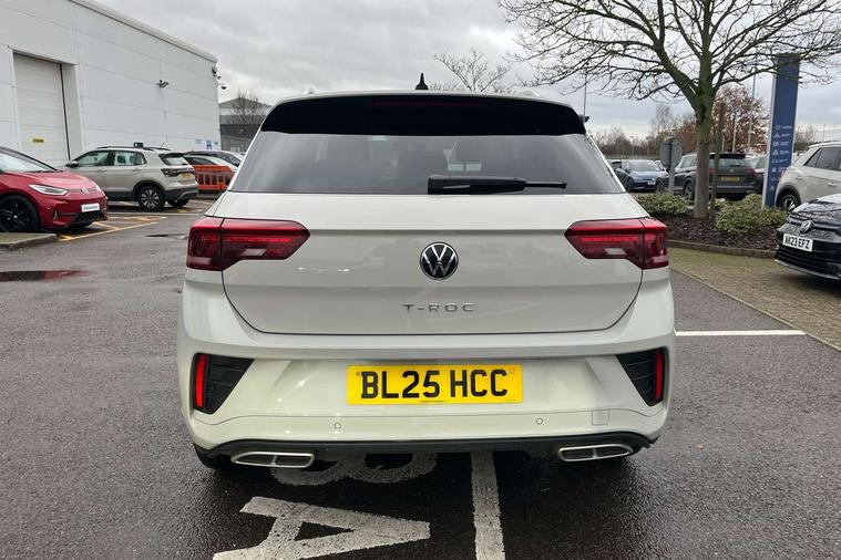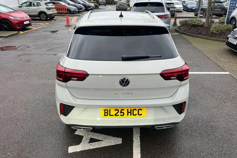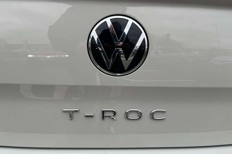 10.25" Digital cockpit pro, Advanced driver attention and drowsiness monitor, Emergency call service, Lane keeping system Lane Assist, Mobile phone interface, Modified key software - reduce switch off time for key status change to Long no motion, Online services, Park assist including front and rear parking sensors, Service interval indicator, Tailgate/trunk lid release from outside, Think blue trainer driver tips and journey analysis, Warning sound and light for front seatbelts unfastened, Wireless app connect, Battery regeneration during braking, Start/stop function with battery regeneration, DAB Digital radio, Diversity antenna for FM reception, Front and rear 6 speakers, Music playback - MP3, WMA and AAC files, Premium USB cable in choice of either Apple or Android smartphone compatibility, SD card slot, Simultaneous pairing of 2 compatible mobile devices, Title and cover art display, We Connect and We Connect Plus functionality, Auto dimming interior rear view mirror, Automatic hazard lights activation under emergency braking, Automatic headlight control with LED separate daytime running lights with coming/leaving home function, Body coloured exterior mirror housings and door handles, Electrically adjustable and heated door mirrors, Extended roof spoiler, Exterior mirrors aspherical on driver side, convex on front passenger side, External USB type C socket and charging sockets, Front windscreen wiper with intermittent wipe and 4 position delay, Heated rear window, LED 3rd brake light, LED rear combination lamps, LED rear number plate lights, Power windows with comfort operation and circuit breaker, Privacy glass for rear side windows and rear window, R-Line design body coloured bumpers, Rain sensor, Rear exhaust tailpipe, Rear fog light on one side and reversing lights on both sides, Rear side wing doors, Rear wash/wipe with intermittent wipe setting, Remote electrically foldable door mirrors, puddle lights and reverse activated passenger's door mirror, 12V power socket in centre console, 3 rear head restraints, 3 seat bench in 2nd row, 4 load lashing points in luggage compartment, Air care climatronic air conditoning system with active combination filter and 2-zone temperature control, Black roof lining, Chrome plated decorative trims, Chrome plated radiator grille inserts, air vent surrounds and light switch surrounds, Door and side trim panel with leatherette insert, Front + rear carpet mats, Front centre armrest, Front cupholders x 2, Front footwell illumination, Front reading light, Front scuff plates with R Line logo, Front seat back storage pockets, Glove compartment door with light, Instrument lighting, white adjustable panel illumination, Interior ambient lighting and surround lighting, Interior light delay, Isofix child seat preparation, Leather gearshift handle, Load-through provision with cup holder when folded down ('Unsplit rear seat bench, split folding backrest, with centre armrest), Luggage compartment lighting, Single front passenger seat, Stainless steel pedals, Storage compartment in left and right luggage area, Storage compartment in rear doors, Storage compartments in driver and front passenger doors, Sunvisors with illuminated vanity mirrors, Variable boot floor, height adjustable and removable, Driver assistance pack without proactive passenger protection - T-Roc, 3 point height adj front seatbelts + pretensioners, 3 point seatbelts in outer rear with ECE label, ABS, Child locks on rear doors, City emergency braking and pedestrian monitoring, Driver and front passenger airbag with front passenger airbag deactivation, Driver and front passenger safety-optimised head restraints, Drivers seatbelt reminder, Electronic parking brake, Electronic Stability Control (ESC) inc EDL (Electronic Differential Lock) and ASR (Traction Control), Front and rear passengers curtain airbag system including front side airbags, Hill start assist, Predictive pedestrian protection, Rear disc brakes, Two tone horn, Tyre pressure loss indicator, Volkswagen roadside assistance, Piano black decorative inserts in dashboard and front door trim panels, Trims for alloy wheels,