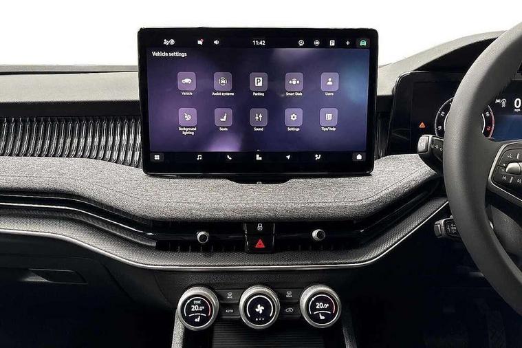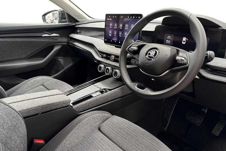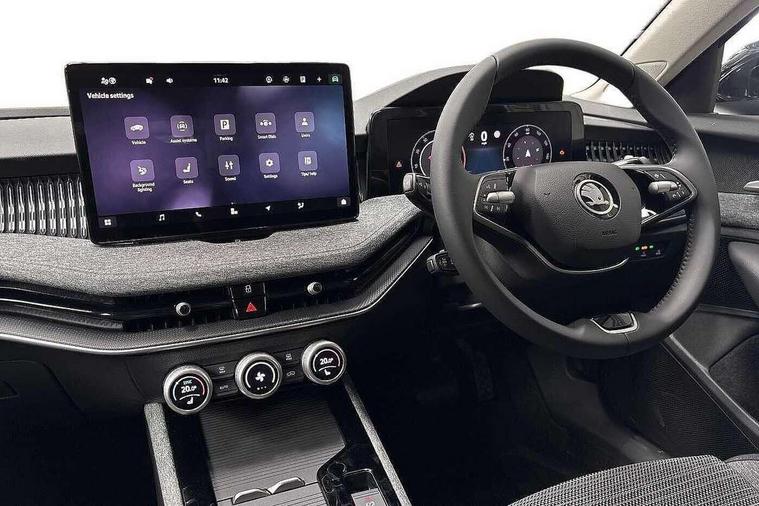 13" touchscreen display with satellite navigation, 4x USB-C ports (2x in front centre console and 2x in rear) (45W), Adaptive cruise control with speed assist, lane assist plus and traffic tram assist, Blind spot detection with door exit warning, Bluetooth system, CareConnect and Emergency Call, ChatGPT functionality, Driver fatigue sensor, Front assist with extended predictive pedestrian protection, Front cross traffic assist, PAS, Quick start all heating software functionality, Rear view camera with washer, Stop/start engine system, Traffic sign recognition, Turn assist with evasive assistance, Virtual Cockpit - 10.25" digital display, Voice control system, Wireless charging for one smartphone (15W) with cooling function, Wireless smartlink apple carplay, SmartLink+ android auto, 8 Speakers, DAB Digital radio, Display cleaner, FM radio connection, Web radio connection, Acoustic side windows and interior noise suppression, Backdrop lighting, Body colour door handles, Body coloured door mirrors, Chrome window surround, Electrically adjustable, heated, folding and driver side auto-dimming door mirrors with integrated indicators and logo projection, Frameless auto-dimming rear view mirror with USB-C, Front windscreen with heat-insulating glass, Ice scraper in fuel tank cap, LED 3rd brake light, Light assist with High beam control, Light assistant (coming/leaving home/tunnel light), Privacy glass, Rear fog light (x1), Rear side wing doors, Tow bar preparation, Unique dark chrome design logo on alloy wheels, Unique dark chrome grille surround with dark chrome rib elements, Windscreen wipers with rain sensor, 12V socket 1x centre console 1x boot, 12V socket and 2x cargo elements in boot, 2 spoke multifunction steering wheel with DSG paddles, 3 seat bench in 2nd row, 60:40 Split folding rear seats, Bottle holders in the front doors 1.5 litre bottle and rear 1.5 litre bottle, Cup holder in front with easy open mat, Front and rear footwell illumination, Front armrest with storage box, Front comfort seats, Heated front seats, Height adjustable driver and front passenger seats with 2-way electric tilt, 4-way pneumatic lumbar support, and extendable thigh support, Height adjustable front and rear head restraints, Height adjustable front passenger seat, Illuminated glovebox, Interior lights with control switches, Isofix child seat fittings in outer rear and front passenger seats, LED front and rear reading lights, Massage function for front seats, Single front passenger seat, Skoda lettering on steering wheel, Storage pockets on back of front seats, Sun visors with illuminated vanity mirrors, Ticket holder on A Pillar, Tri zone climate control, Umbrella in driver's door, 3 rear seatbelts, 8 Airbags - Front driver and passenger, front side driver and passenger, centre, curtain front and rear, drivers knee, Crew protect assist, Driver and passenger seatbelts with warning light, Electronic parking brake, ESC including ABS, EBV, MSR, ASR, EDS, HBA, DSR, RBS, CBC, multi-collision brake (MKB) and Auto hold, Hill hold assist, Power operated child lock in rear doors, Alarm with interior monitoring tilt sensor and back up horn, Backrest remote release from trunk, Electronic engine immobiliser, Keyless start/stop, Remote central locking with SAFE system, Third key, Decorative front door sills,