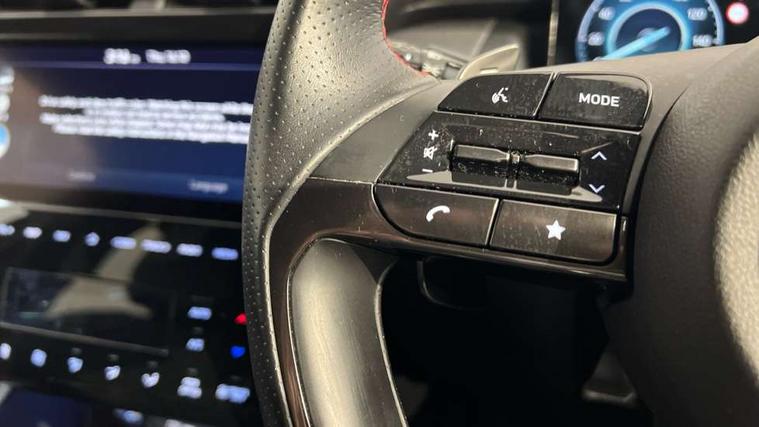 10.25" super vision instrument cluster, 10.25" touchscreen satellite navigation with mapcare and live services, Apple car play/Android Auto, Bluetooth system, Digital clock, Drive mode selector, Driver attention warning, E-call, Emergency stop signalling system, Front and rear parking sensors, Intelligent speed limit assist, Lane follow assist, Lane keep assist, PAS, Rev counter, Reversing camera, Roll over sensor, Tailgate open warning light, Trip computer, Trip odometer, Voice recognition, Water temperature gauge, Windscreen washer fluid sensor and warning indicator, Wireless phone charging pad, 2 front and 2 rear speakers with 2 tweeters, DAB Digital radio, Steering wheel mounted audio/phone controls, USB connections in front and rear, Adjustable intermittent front windscreen wipers with aero wiper blade, Auto dimming rear view mirror, Automatic defog system, Automatic headlights with dusk sensor, Automatic windscreen wipers with rain sensor, Black headlamp bezels, Body colour bumpers, Body colour door mirrors with integrated indicators, Body colour exterior door handles, Body coloured wheel arches, Dark chrome effect radiator grille, Electrically adjustable, heated and power folding door mirrors, Follow me home headlights, Front and rear electric windows with anti-trap mechanism and one touch control, Front fog lights, Gloss black door frame moulding, High beam assist, High level third brake light, LED daytime running lights, LED rear lights, MFR - LED headlight with static bending light, N Line body coloured side mouldings, N Line design front grille, N Line Exclusive front and rear bumpers, N Line rear spoiler with fins, Positioning Lights - LED, Privacy glass - Rear windows and tailgate, Rear wash/wipe with intermittent wipe setting, Roof rails, Silver front and rear skid plate, Sports twin tip exhaust and diffuser, Tinted glass with windscreen shade band, Trailer stability assist, 12V power outlets in front console and luggage compartment, 40/20/40 split folding rear seat, Adjustable head restraints (Up and down), Alloy pedals, Ambient lighting, Black headliner, Cupholders in centre and rear console, Cupholders in rear armrest, Door courtesy lights, Driver and passenger sunvisors with illuminated LED vanity mirrors, Driver's seat electric lumbar support, Driver's seat manual height adjust, Dual zone climate control, Front and rear door pockets, Front armrest with storage box, Front door pocket bottle holders, Front passenger seat lumbar adjustment, Heated front seats, Height/reach adjustable steering column, Illuminated/air conditioned glove compartment, ISOFIX child seat anchorage points attached on outer rear seats, Leather wrapped steering wheel, Leather/suede upholstery, Luggage area underfloor compartment, Luggage compartment lighting, Luggage cover, Luggage hooks, Manual height adjustable front passenger seat, Map and reading lights, N Line logo on steering wheel, Retractable load cover, Sunglasses holder, 3x3 point rear seatbelts, Active bonnet, Airbag - Front, front side, curtain and centre front airbags, Anti-lock brake system (ABS), Autonomous emergency braking, Brake assist function, Childproof rear door locks, Downhill brake control, Electric parking brake with auto hold function, Electronic stability control, Front and rear seatbelt reminder, Front passenger airbag deactivation switch, Front seatbelt pretensioners, Hill start assist control (HAC), Multi-Collision braking, Outer rear seatbelt height adjustment, Seatbelt height adjustment for front seats, Traction control, Tyre pressure monitoring system with individual tyre pressure display - TPMS, Vehicle stability management, Alarm, Deadlocks, Immobiliser, Locking wheel nuts, Remote control central locking, Smart key with keyless entry and engine start/stop button, Speed sensitive auto door locking, 19" Alloy wheels, Tyre repair kit,