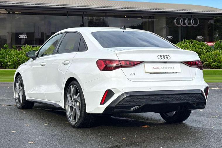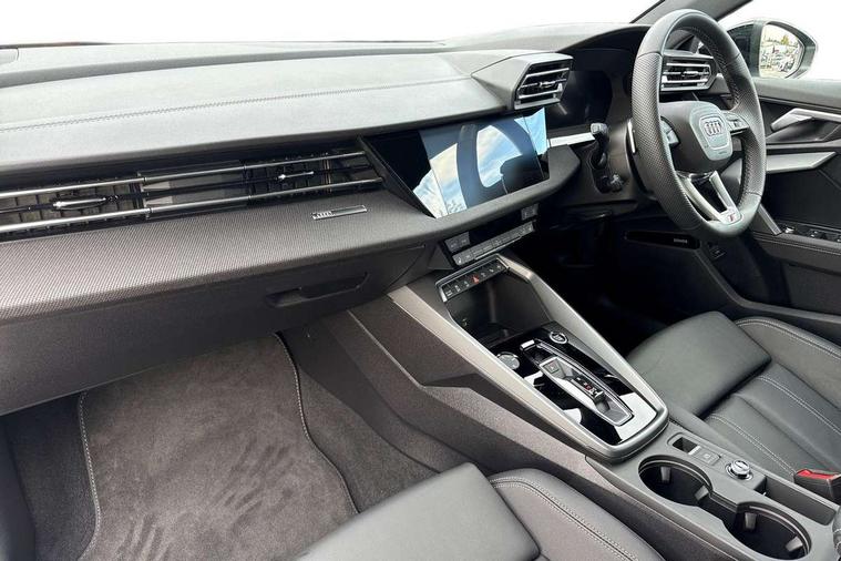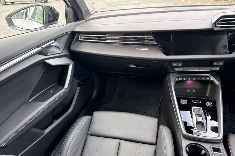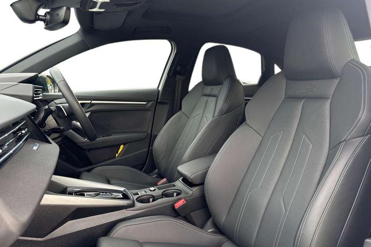 Adjustable speed limiter, Audi drive select, Audi smartphone interface with app store includes wireless Apple carplay, Android auto and Amazon alexa integration, Audi virtual cockpit plus - 12.3" full HD resolution dynamic digital instrument cluster, Automatic start/stop system with recuperation, Bluetooth interface, Camera based traffic sign recognition, Collision avoidance assistant, Cruise control, Distraction and Fatigue warning, e-Call (emergency call), Electromechanical power speed sensitive steering, Emergency assist, Lane departure warning system, MMI Navigation Plus with high resolution 10.1" colour touch screen display, Park Assist with parking system Plus, Service indicator, Trip computer, Voice control system with natural language interaction, Sports suspension, Audi Phonebox light with wireless charging, Audi sound system - 10 loudspeakers including centre loudspeaker and subwoofer, DAB Digital radio, USB ports with charging function in the rear, Acoustic glass windscreen, All weather light, Anthracite grey Audi rings (front and rear), Audi beam uses LEDs to project the Audi logo onto the ground as you exit your A3, Auto dimming frameless rear view mirror, Automatic dynamic range control, Black accents front and rear bumpers, Black accents in the area of the Audi single frame grille, Black accents window trims strips, Dipped beam, main beam, position light and turning light, Electrically adjustable/heated/folding/auto dimming door mirrors with integrated LED indications + kerb view function for passenger side, Exterior model badging, Front and rear side air inlets in grained matt black with dark liquid chrome frame, Front electric windows, Heat insulating glass windscreen, Illuminated door sills with aluminium inserts at the front with S logo, Intersection light, LED 3rd brake light, LED brake lights, LED daytime running x3, LED headlights with LED rear lights and dynamic rear indicators, LED rear number plate lights, LED reverse light, LED tail lights, Light and rain sensors, Manoeuvring light, Motorway light, Privacy glass - dark tinted rear window, rear door and side windows, Rear boot, Rear diffuser and grill in grained matt black with inlay in dark liquid chrome, Rear electric windows, Rear side wing doors, Static Cornering lights, 12V socket and storage compartment in front centre console, 3 seat bench in 2nd row, 3 spoke flat bottomed leather multifunction sport steering wheel with gear shift paddles, 3-zone deluxe automatic air conditioning, 4 way electrically adjustable lumbar support for driver and front passenger, 40/20/40 split folding rear seat bench, Black cloth headlining, Black front and rear floor mats, Front and rear centre armrest in artificial leather with contrasting stitching on armrests and instrument panel, Front and rear headrests, Heated front seats, Height and reach adjustable steering wheel, Manual boot compartment lid, Manually adjustable front seats, Rear centre armrest with cupholder, S badging on the steering wheel, Seat side bolsters, Single front passenger seat, Stainless steel pedals and front footrest in black, Twin leather upholstery with front sports seats S embossed logo, Aluminium interior elements pack - A3, 3x3 point rear seat belts, Driver and front passenger airbag with passenger airbag deactivation, Electronic Stabilisation Control (ESC) including ABS, ASR and EDL, First aid kit with warning triangle and 2 safety vests, Front side airbags with head airbags and interaction airbag, Hill hold assist, Pre-sense front with pedestrian and cyclist detection, Seatbelt monitoring, Tyre pressure loss indicator, Anti theft alarm, Anti-theft wheel bolts, Electronically operated child locks, Immobiliser, Remote central locking with safelock, Black dashboard,