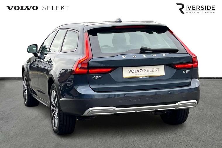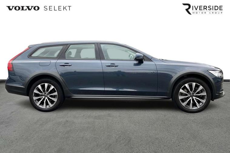 12.3" Progressive Driver Display, 9" centre console touch screen, Adjustable steering wheel force, Bluetooth Handsfree Phone Connection, Drive mode settings, E-call, Google automotive services - Enabled entertainment apps, navigation with google maps, voice recognition with google assistant, Lane keep assist with driver alert control, Oncoming Lane Mitigation, Power operated tailgate, Speed limiter, Speed sensitive steering, Volvo on call, Wireless/Inductive Mobile Phone Charging, 65mm additional ground clearance, 8 speed automatic transmission with start/stop + manual change functions, DAB Radio (Digital Audio Broadcasting), Steering wheel remote infotainment controls, Adaptive brake lights with high level LED brake lights, Auto dimming interior + exterior mirrors, Automatic headlamp levelling, Automatic LED Headlights + Active high beam incorporating daytime running lights, Charcoal lower grille, Charcoal wheel arch extensions, Colour coordinated auto folding and heated power door mirrors, Cross Country embossed rear bumper, Enlarged door mirrors, Front and rear power windows, High gloss black front grille with chrome details, High gloss black window trim, Home safe and approach lighting, Integrated roof rails in silver, Puddle lights in exterior door handles, Rain sensor with automatic windscreen wiper activation, Rear LED lights with sequential indicators, Rear side wing doors, Rear wiper, Roof antenna, Roof spoiler, Silver front and rear skid plate, Visible VIN plate, 3 seat bench in 2nd row, 3 spoke leather steering wheel with chrome trim, A-pillar parking ticket holder, Ambient door and instrument panel lighting, B Pillar ventilation, Blond headlining, Bright metal luggage threshold, Cargo divider with grocery bag holder, Center Console Cupholders and Storage, Driver's side lower dashboard storage compartment, Extended front seat cushions, Floor mats, Front 12V socket tunnel console and cargo area, Front centre armrest storage illumination, Front footwell and side step illumination, Front head restraints, Front/rear door pockets and front cupholder illumination, Front/rear reading lights, Heated front seats, Height/reach adjustable steering column, Illuminated front and rear tread plates, Illuminated glovebox, Illuminated luggage compartment, Illuminated tailgate, Illuminated vanity mirrors + ticket holder, Integrated sun curtains in rear doors, Isofix system on outer rear seats, Leather upholstery with unique stitching, Load cover, Load protection net, Off-black finish in steering wheel, Power driver seat with memory for seat and exterior mirrors, Power Folding Rear Seat Backrests and Headrests, Rear armrest with storage + cupholders, Rear footwell and side step illumination, Single passenger seat, Ski hatch, Underfloor cargo storage, Versatile split folding rear seat - 60/40, Driver assist pack - V90, 3x3 point rear seatbelts, Active bonnet, City safety with steering support with Pedestrian + cyclist + front collision warning with full auto brake and rear auto brake, Drivers knee airbag, Dual stage driver/passenger airbags, Front seats SIPS airbags, Hill descent control, Hill start assist, IC (Inflatable Curtains) - Full Length, Passenger airbag cut-off device, Power parking brake with auto hold function, Road sign information display, Run off Road Mitigation, Run off Road Protection, Seatbelt reminder and pretensioners for all seats, SIPS (Side Impact Protection System), Slippery road and hazard light alert, Stability and Traction Control with Spin control, Engine Drag Control and Corner Traction Control, Tyre pressure monitoring system, Vehicle deceleration control with Anti-lock Brake System, Electronic Brake Distribution and Emergency Brake Assist, Warning triangle and first aid kit, WHIPS whiplash protection system - front, Anti-theft alarm including immobiliser/volume sensor + level sensor, Care key with user defined top speed, Key integrated remote control central locking + fuel flap with deadlocking system and auto open/close power windows, Keyless drive with Keyless entry and start, Locking wheel nuts, Private locking for tailgate, Tailored Instrument Panel and Door Tops with Contrast Stitching,