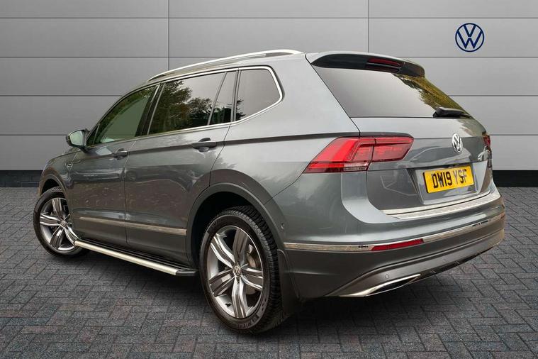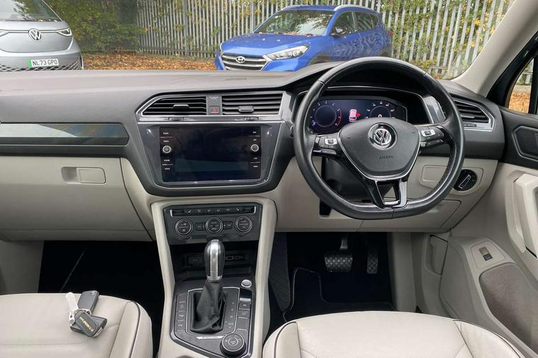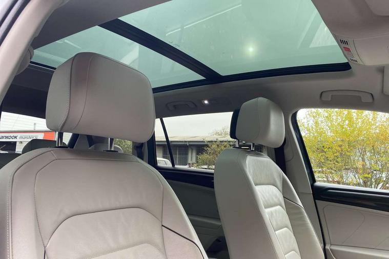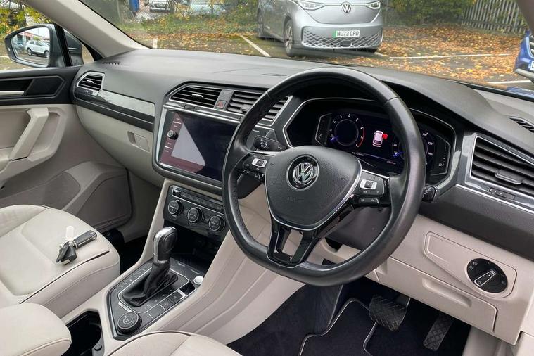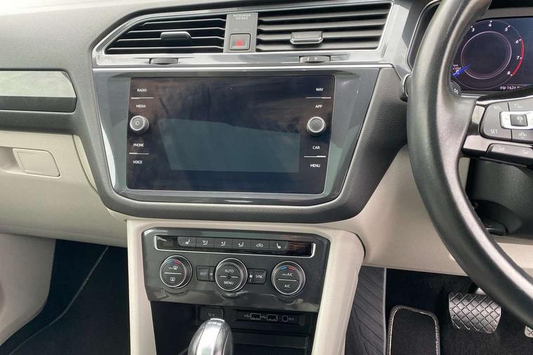 Active information display, Adaptive cruise control, App-Connect, Bluetooth phone integration system, Car-Net Security and Service, Coasting function, Drive mode selector, Driver alert system, Driver profile selection, Fatigue detection system, Front assist, radar sensor controlled distance monitor, city emergency braking + predictive pedestrian protection, Fully electric tailgate + keyless entry and start, Instrument cluster, Lane assist, Low washer fluid warning light, Outside temperature display, Service interval indicator, Speed limiter, Start/Stop function, Warning sound and light for doors and tailgate open, Battery regeneration during braking, 2x USB sockets in front, 4 X 20 watt output, DAB Digital radio, Dynamic navigation based on TMC+, Music playback - MP3, WMA and AAC files, SD card slot, Simultaneous pairing of 2 compatible mobile devices, SMS Functionality, Three route options - Fast, Short, Eco, Title and cover art display, Volkswagen media control, 3D effect cherry red LED rear tail lights, Auto dimming interior mirror, Automatic activation of hazard warning lights, Black door protector with chrome inserts, Body colour door handles, Body colour door mirrors, Body coloured bumpers, Chrome side body trim, Chrome side window surrounds, Chrome trimmed radiator grille, Coming/leaving home lighting function, Door mirror puddle lights, Door sill protector, Dusk sensor + auto driving lights, Electric panoramic sunroof with sunblind, Electrically heated and foldable door mirrors, door mirror puddle lights and reverse activated kerb view adjustment on passenger's door mirror, Front air intake with chrome strip, Front and rear electric windows, Heated rear window, Heated windscreen washer jets, High level 3rd brake light, LED headlights with dynamic light assist daytime running lights and cornering front fog lights, LED rear number plate lights, Rain sensor windscreen wipers, Rear tinted windows from B pillar back, Rear windscreen washer and wiper with interval delay, Silver anodised roof rails, Silver rear diffuser trim, Twin trapezoid chrome exhaust pipes, Windscreen wipers/ intermittent wipe + 4 position delay, 12V socket in centre console storage area, 12V socket in luggage compartment, 12V socket on rear of front centre armrest, 2 cup holders in front, 2 head restraints in 3rd row, 2 individual 3rd row seats, 3 head restraints in 2nd row, 3 single seats foldable in 2nd row, 3 zone climate control, 4 load lashing points, Assymetric split folding rear bench seat and backrest with centre armrest, Bag hook in luggage compartment, Driver + front passenger lumbar support, Foldable front passenger seat backrest, Front + rear carpet mats, Front centre armrest with storage compartment, longitudinal and height adjustable and two rear air vents, Front seatback folding tables, Height/reach adjust steering wheel, Illuminated driver/passenger vanity mirrors, Illuminated scuff plates, Instrument lighting white adjustable panel illumination, Interior light with delay, Isofix Preparation 2 Rear child seats, Load through provision with 2 cupholders when folded, Lockable cooled glovebox, Luggage compartment lighting, Luggage compartment side storage, Map pockets on front seats, Passenger seat height adjuster, Rear cupholders, Removable luggage cover, Sliding/reclining rear seats, Storage compartment in driver's door, Storage compartment in passenger's door, Storage tray on dashboard, Sunglasses storage, Variable boot floor, Ambient lighting pack - Tiguan, 3 point seatbelts on all seats, ABS+EBD+Brake assist, Active bonnet, Active pedestrian safety system, Curtain airbags, Driver/Front Passenger airbags, Driver/Passenger whiplash optimised head restraints, Drivers knee airbag, Electronic parking brake with auto hold, ESC with EDL, ASR, EDTC and trailer stabilisation function, First aid kit, Front and rear brake disc, Front seat side impact airbags, Front side airbags, Front ventilated brake discs, Head airbag system, Height adjustable front 3 point seatbelts + pretensioners, Hill hold control, Passenger airbag deactivate switch, Passenger knee airbag, Pre crash system, Rear side airbags, Rigid safety cell with front and rear crumple zones, Seatbelt warning lamp and buzzer, Two tone horn, Volkswagen roadside assistance, Warning sound and light for front seat belts if unfastened, Warning triangle, Alarm with interior protection, Electronic engine immobiliser, Remote central locking with 2 remote folding keys, Chrome door trim inserts, Dark grey decorative inserts in dash and door panel, Piano black interior trim, Steel space saver spare wheel,