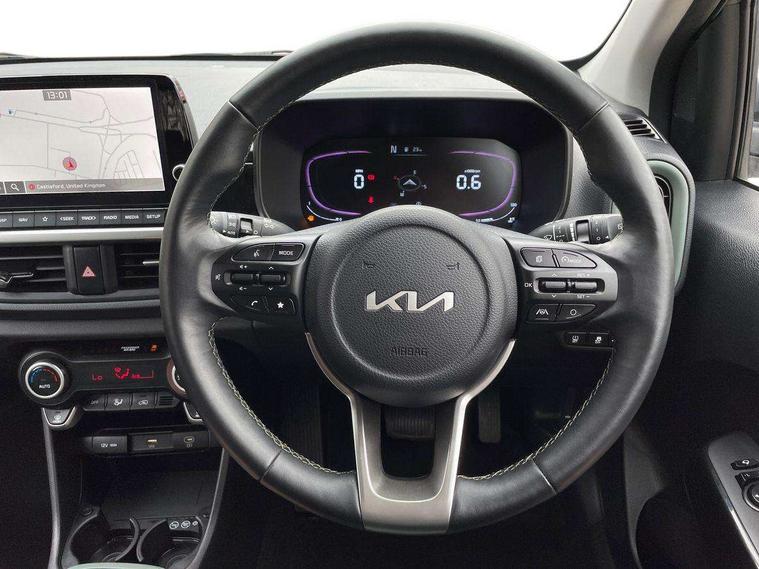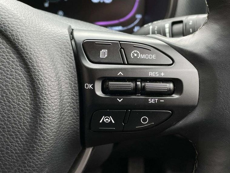 4.2" driver display screen, 8" touchscreen navigation, Apple car play/Android Auto with voice control, Cruise control + speed limiter, Emergency call service, Emergency stop signalling system, External temperature gauge, Forward Collision-Avoidance Assist (FCA) 1.0 - City/Pedestrian/Cyclist, Intelligent speed limit assist, Kia Connect (UVO), Lane Follow Assist 1.0, Lane keep assist, Motor driven power steering, Rear parking sensors, Reversing camera system, Tachometer, Trip computer, Wireless Smartphone charger, 4 speaker audio system, Bluetooth with music streaming, USB ports for connection of a media device, Automatic defog system, Automatic headlight control system, Body colour bumpers, Body colour side sill mouldings, Body coloured door mirrors, Body coloured wheel arches, Electric adjustable/heated/folding door mirrors with LED indicators lights, Electric front and rear windows, Electric front touch drivers front window, Headlamp levelling, Heated rear window, High mount brake light, LED daytime running lights, LED Headlights, LED rear lights, Premium paint, Privacy glass - Rear windows and tailgate, Rain sensing front wipers, Rear fog lights, Rear side wing doors, Rear wiper, Silver window surround, Tinted windshield glass, Visible VIN plate, 12V power point front, 3 seat bench in 2nd row, 60:40 Split folding rear seats, All round height adjustable headrests, Artificial leather steering wheel, Artificial leather upholstery, Automatic air conditioning, Centre console storage box, Driver and front passenger sunvisors with driver's side illuminated vanity mirrors, Front and rear door storage, Front cabin lights, Front passenger USB-C charging port, Glovebox, Grey headlining, Heated front seats, Heated steering wheel, ISOFIX Child seat top tethers and anchor fixings, Luggage area light, Luggage board, Luggage net + hook, Manual adjust steering wheel, Manual adjustable driver and front passenger seat, Rear cabin lights, Rear USB charging port, Single front passenger seat, All round 3-point seatbelts, Anti-lock braking system (ABS), Electronic stability control, Front airbags, Front passenger airbag cut-off switch, Front seatbelt height adjusters, Hill hold control, Hill start assist control (HAC), Rear airbags, Seatbelt reminder warning, Seatbelt warning, Side airbags, Side impact protection, Torque vectoring brake based and straight line stability (SLS), Traction control, Tyre pressure monitoring system, Vehicle stability management, Anti theft alarm, Engine immobiliser, Folding key, Locking wheel nuts, Manual child locks, Rear occupant alert, Remote central door locking, Smart key with engine start/stop button, Smart key with motion sensor, Thatcham category 2 security alarm and immobiliser, 16" alloy wheels, Tyre mobility kit,