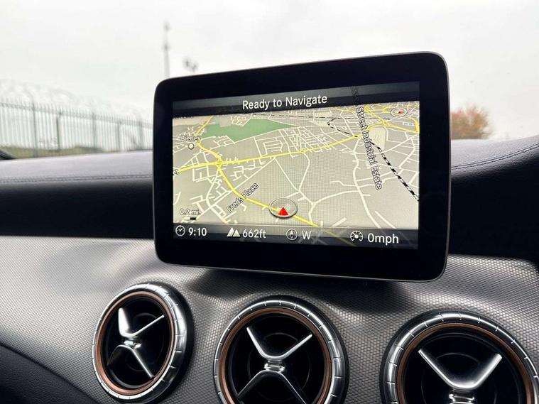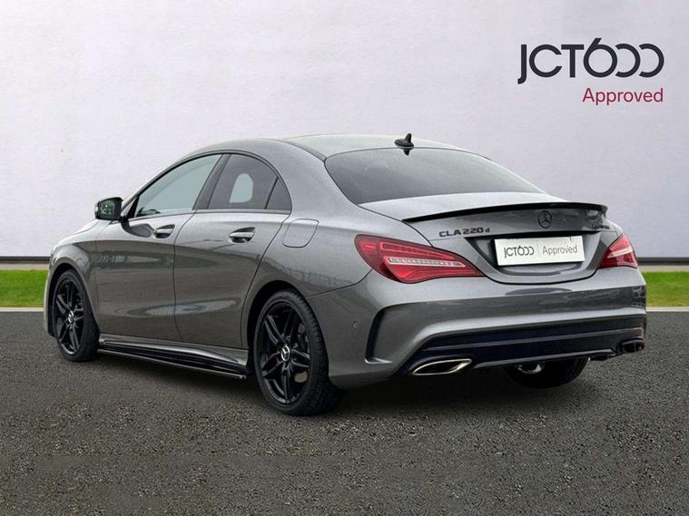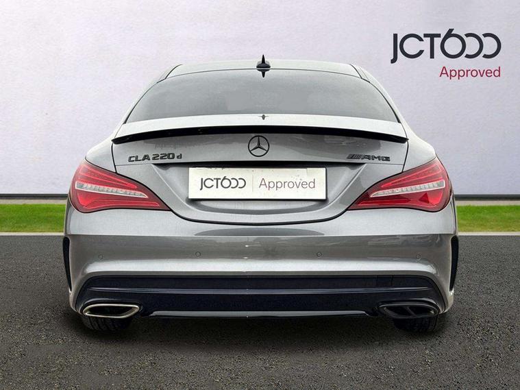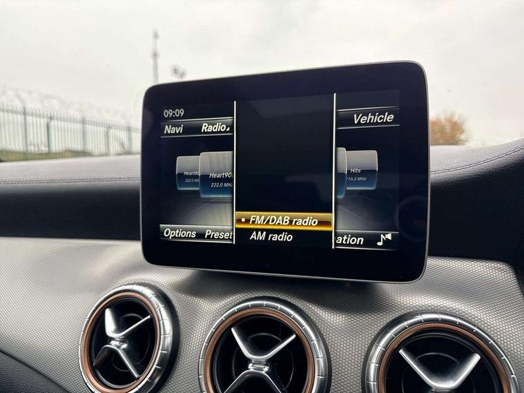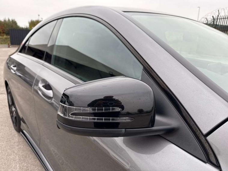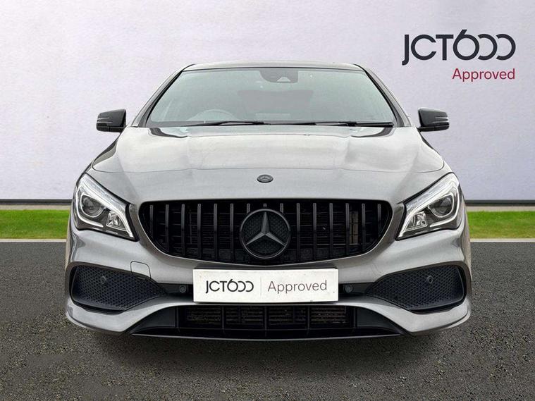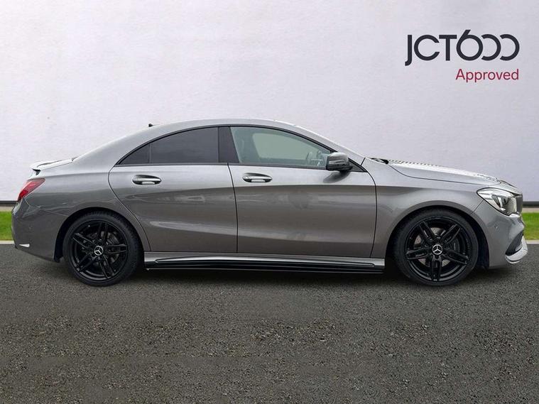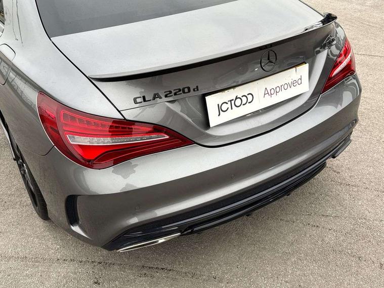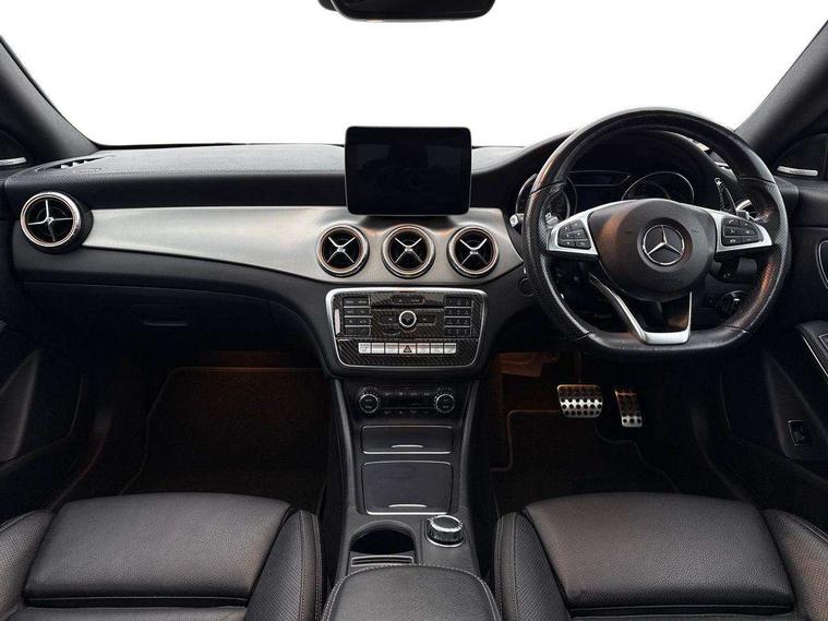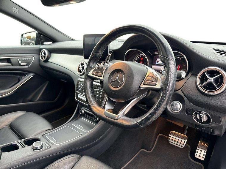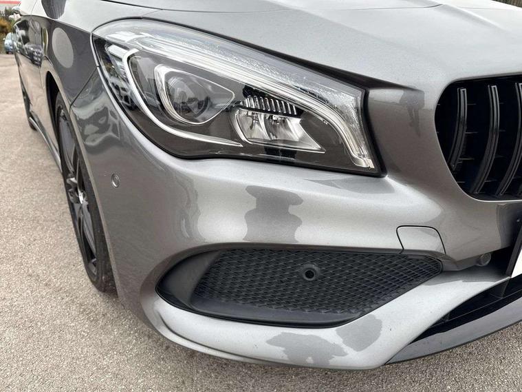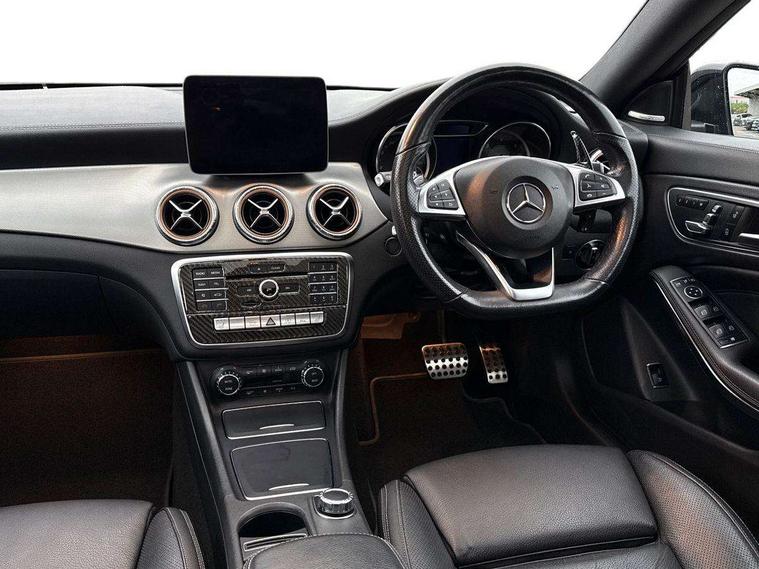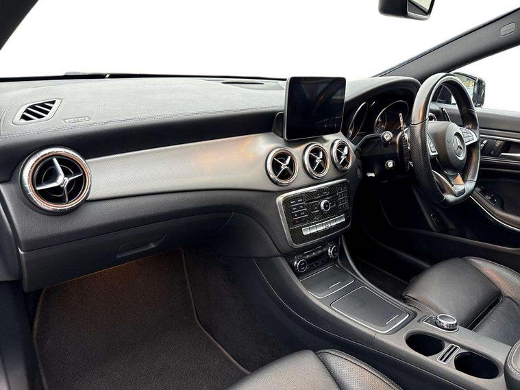 8" colour display screen, Active park assist, Attention assist, Bluetooth system, Direct steering, Door/boot open warning light, DYNAMIC SELECT with a choice of driving modes (ECO, Comfort, Sport, Sport+ and Individual), Front and rear parking sensors, Low fluid warning light, Outside temperature gauge, Reversing camera, Service indicator (ASSYST), Trip computer, Diesel particulate filter, Lowered comfort suspension, Media interface, Mercedes Audio 20 radio/single CD, USB connection, Adaptive brake lights, AMG body styling, Automatic headlights, Automatic rain sensing wipers, Black high gloss beltline, Body colour bumpers, Body colour door handles, Body colour side skirt, Diamond grille with pins in chrome and single louvre in high-gloss black with chrome inserts, Electric adjustable heated door mirrors, Electric panoramic sliding sunroof, Front and rear electric windows, Heated rear window with timer, High gloss black door mirror housing, High level LED brake light, LED headlights with LED daytime running lights, LED Indicators, LED tail lights, Privacy glass, Rear fog lights, 1/3 to 2/3 split folding rear seats, 3 spoke flat bottom multi-function sports leather steering wheel in black with topstitching in red, Auto Mercedes-Benz child seat recognition sensor, Centre console with cupholders, Courtesy light in boot, Door sill illumination, Dual zone climate control, Electric memory seats, Front centre armrest with storage box, Front door courtesy lamps, Front footwell lights, Front head restraints, Front sports seats, Height adjustable front seats, Height/reach adjustable steering column, Illuminated glovebox, Illuminated storage compartment, Isofix rear child seat fastenings, Load securing rings in luggage compartment, Reading lights, Rear footwell lights, Rear head restraints, Sports pedals with rubber studs, Sunvisors with illuminated vanity mirrors, Mirror pack - CLA, 3x3 point rear seatbelts, ABS with Brake Assist, Active bonnet, Adaptive brake system, ASR, Brake pad warning light, Child lock for rear electric windows, Child proof door locks, Crash responsive emergency lighting, Drivers knee airbag, Dual stage driver/passenger airbags, Electronic parking brake, ESP curve dynamic assist, Front and rear seatbelt reminder, Front passenger airbag deactivation, Front passenger seat occupancy sensor, Front side airbags, Hill start assist, Tyre pressure monitoring system, Warning triangle and first aid kit, Window airbags, Anti theft alarm system, Chrome surround in electric key, Immobiliser, Keyless Start, Remote central locking, Chrome air vent surrounds, 18" AMG 10 spoke alloy wheels, Tirefit,