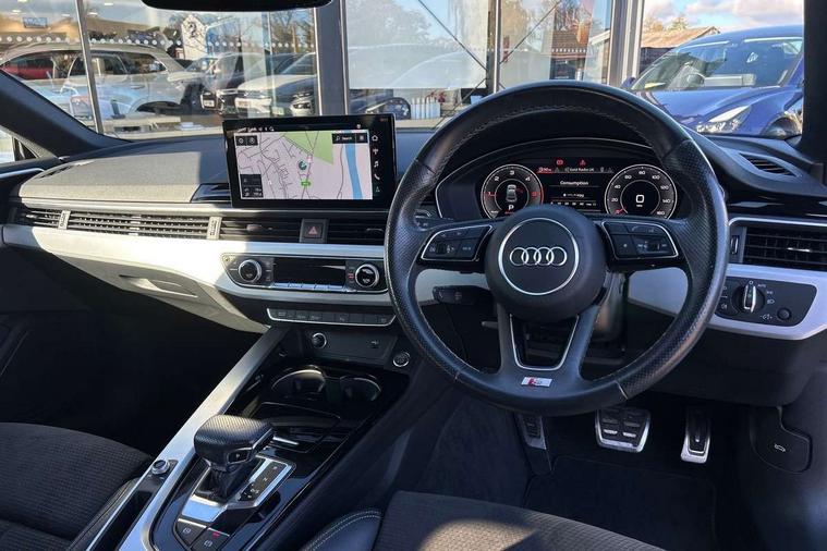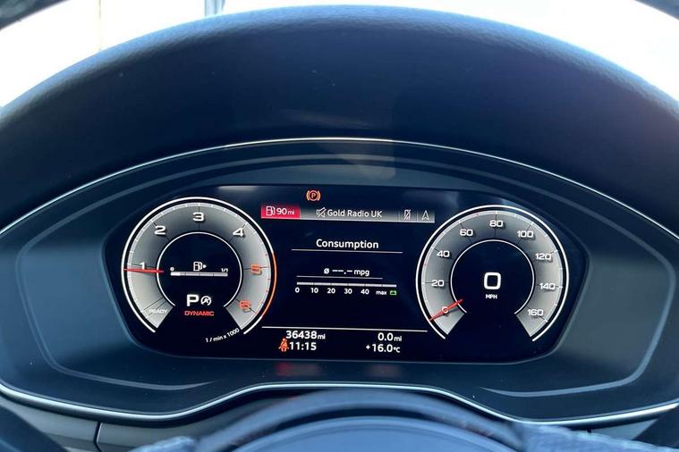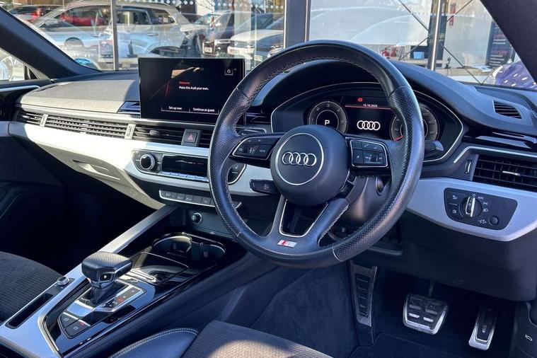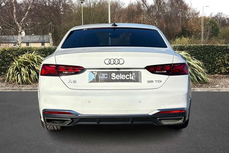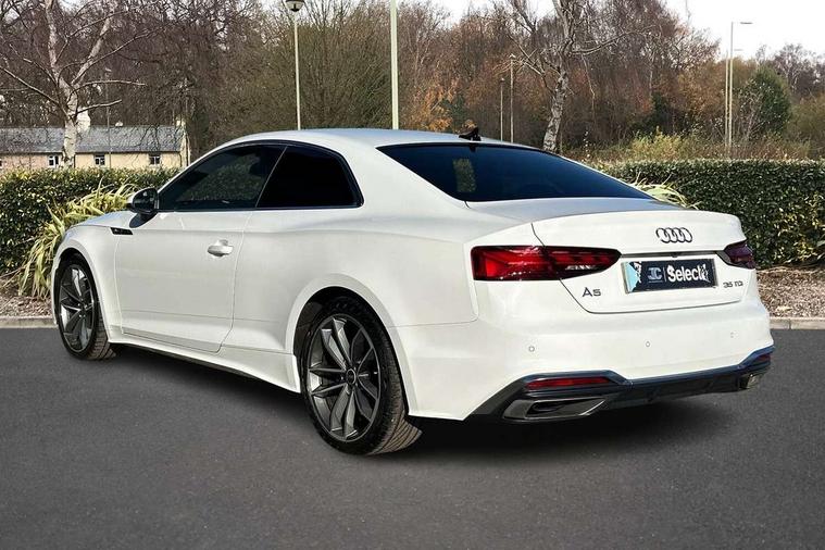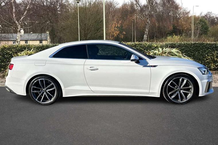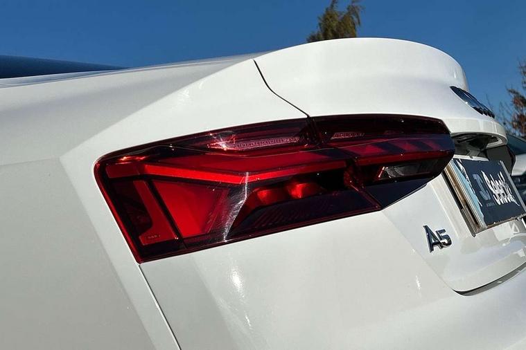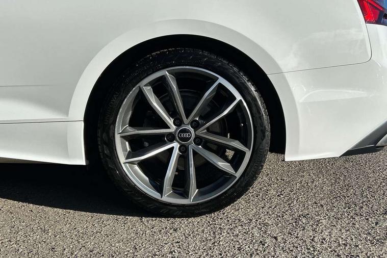 Audi connect safety and service (e-call), Audi connect with Amazon Alexa Integration, Audi drive select (Auto, Comfort, Dynamic, Efficiency and Individual), Audi parking system plus with front and rear sensors, Audi phone box with wireless charging, Audi smartphone interface, Audi virtual cockpit - 12.3" full colour digital instrument cluster, vehicle/engine speed, Radio/media information+Driver assistance systems, Automatic start-stop system with coasting functionality and efficiency programme, Bluetooth interface, Electric boot lid release, Electro-mechanical power steering, Email, calendar and text messages displayed via MMI, MMI nav+ with MMI touch - 10.1" high resolution MMI display, touch sensitive, 3D map, route/country info, dynamic route guide, personal route assist, Rear view camera, Service interval indicator, Voice control system, Diesel particulate filter, Sports suspension lowered by 23mm, 8 passive loudspeakers, CD player, DAB digital radio reception, Two additional USB ports for rear passenger in rear centre console, Two SDXC card slots, Audi matrix LED headlights with LED rear lights + dynamic front and rear indicators, Auto dimming rear view mirror, Body colour bumpers, Body colour door handles, Body colour front spoiler lip, Body colour side sill trim, Body coloured door mirrors, Electric adjustable heated door mirrors, Electric folding door mirrors, Electric front windows, Front fog lights, Honeycomb structure radiator grille in grained matt black, LED daytime running lights, Matt aluminium silver tailpipe trim, Privacy glass, Rain and light sensors, S line badges on front wings, S line front and rear bumpers with side skirts, S Line rear diffuser in matt titanium black with trim strip in matt aluminium silver, Side air inlets in grained matt black with matt aluminium silver inlay, Windscreen with acoustic glazing, 4 way electric lumbar support for driver and front passenger, 40/20/40 split folding 2 seater rear seat bench with rear centre armrest, Adjustable steering column, Black cloth headlining, Black perforated leather gearknob, Contrast stitching on seats, steering wheel and gear lever gaiter, Deluxe 3 zone electronic climate control, Front centre armrest, Front head restraints, Front/rear floor mats, Heated front seats, Illuminated door sill trim with S logo, ISOFIX child seat mounting and top tether, Luggage compartment mat, Manual seat adjustment, Rear headrests, Stainless steel pedals, Sunvisors with vanity mirrors, Tool kit, LED interior light pack - A5/RS5, 2 x 3-point rear seat belts, 6 airbags - Driver, front passenger, curtain and side airbags, Electromechanical parking brake, Electronic Stabilisation Control (ESC) including ABS, ASR and EDL, Front passenger airbag deactivation, Height adjustable front seatbelts, Hill hold assist, Multi collision brake assist, Pop-up bonnet for pedestrian protection, Pre sense city, Seatbelt monitoring, Tyre pressure warning, Variable restraint system, Warning triangle and first aid kit, Anti theft alarm system, Anti theft wheel bolts, Immobiliser, Keyless Go, Remote central locking, Matt brushed aluminium inlays, Tyre repair kit,
