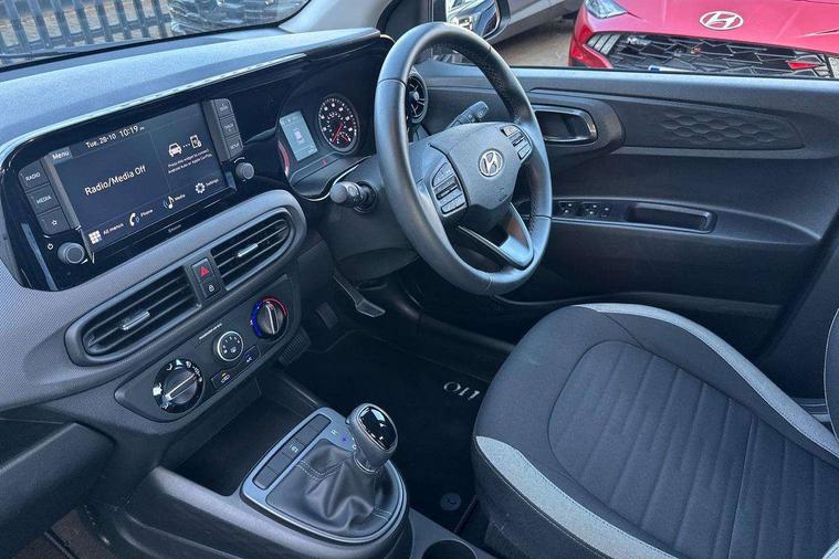 8" Touchscreen centre console display audio with smart device integration and DAB, Apple car play/Android Auto, Bluetooth connectivity with voice recognition, Cruise control + speed limiter, Driver attention alert system, eCall emergency call system, ISG - Idle stop and go, Lane departure warning system with lane keep assist - LKAS, PAS, Rear view camera, Roadside assistance, Trip computer, 2 front/2 rear speakers, Steering wheel audio, phone and cruise controls, USB socket, 1 speed non intermittent rear windscreen wiper, Black finish on B pillars, Body colour door handles, Body coloured bumpers, Body coloured door mirrors, Electric front windows, Electric rear windows, Electrically adjustable and heated door mirrors, Front grille in matte black, Front intermittent wipers, Halogen daytime running lights, Halogen headlights, Heated rear window, High beam assist, Indicator light on door mirrors, Rear roof spoiler with integrated LED brake light, Rear side wing doors, 12v power outlet - front, 3 seat bench in 2nd row, 60/40 split folding flat to floor rear seats, Air conditioning, Auto light control, Bottle holders in front/rear doors + front centre console, Cabin and luggage compartment interior lighting, Cloth upholstery, Driver + passenger vanity mirrors, Driver's seat height adjustment, Driver/passenger sunvisors with ticket holders, Front door pockets, Front Head Restraints - Vertical and Horizontal Adjustment, Glove compartment, Height adjustable steering column, Isofix child seat preparation, Leather wrapped steering wheel and gear knob, Metal paint effect interior door handles, Rear door pockets, Single front passenger seat, Vertical adjustment rear head restraints, 3x3 point rear seatbelts, Airbags - front, front side and curtain airbags, Anti-lock brake system (ABS), Autonomous emergency braking (AEB) with forward collision warning system, Brake assist function, Childproof rear door locks, Electronic stability control, Front and rear seatbelt reminder, Front seatbelt pretensioners, Hill start assist control (HAC), Passenger airbag deactivate switch, Traction control, Tyre pressure monitoring system, Immobiliser, Perimeter alarm, Remote central locking, Second remote key, Speed sensitive auto door locking, 15" Alloy wheels, Tyre repair kit,