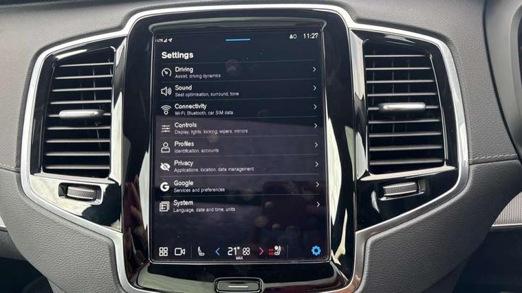 12.3" Progressive Driver Display, 360 degree surround view parking camera with side proximity sensors, 9" centre console portrait touch screen, Adjustable steering wheel force, Bluetooth hands free telephone connection, Driver alert control with lane keeping aid, Driver assistance (pilot assist and adaptive cruise control), Driver awareness - Blind spot information system with steer assist, cross traffic alert with autobrake and rear collision warning and mitigation, Emergency call service, Front and rear park assist, Google Automotive Services - Navigation with Voice recoginition and google assistant, Handsfree power tailgate opening and closing, Oncoming Lane Mitigation, Power operated tailgate, Service interval indicator, Speed limiter, Speed sensitive steering, Trip computer, Volvo on call, Wireless Mobile Phone Charger, 8 speed automatic transmission with start/stop + manual change functions, Touring chassis, DAB Radio (Digital Audio Broadcasting), Premium Sound by Harman Kardon, dirac unison, dolby pro logic II surround sound, 13 speakers/600W output and fresh air subwoofer, Steering wheel remote infotainment controls, Active bending headlights with adaptive shadow technology, Adaptive brake lights with high level LED brake lights, Auto dimming interior + exterior mirrors, Auto folding and heated power door mirrors, Automatic headlight levelling system, Automatic LED Headlights + Active high beam incorporating daytime running lights, Body colour bumpers, Front and rear power windows, Headlight cleaning system, Heated front windscreen, High gloss black door mirrors and window surround, High gloss black front and rear bumper deco, High gloss black mesh front grille with surround, Home safe and approach lighting, Integrated roof rails in high gloss black, LED front fog lights with cornering light function, Power glass tilt and slide panoramic sunroof with sun curtain, Puddle lights, Rain sensor with automatic windscreen wiper activation, Rear side wing doors, Rear wash/wipe with intermittent wipe setting, Roof antenna, Roof spoiler, Visible VIN plate, 12V socket front tunnel console, rear passenger compartment and cargo area, 2 seat bench in 3rd row, 2nd Row centre armrest with and cupholders, 3 seat bench in 2nd row, 4 zone electronic climate control with Clean zone air quality system + pollen filter, A-pillar parking ticket holder, Advanced interior air cleaner PM2.5, Air conditioning for 3rd row of seats, Ambient door and instrument panel lighting, B Pillar ventilation, Bright metal luggage threshold, Centre console cupholders and storage, Floor mats, Front and rear door pocket and front cupholder illumination, Front and rear reading lights, Theatre lighting and centre armrest storage illumination, Front footwell and side step illumination, Front headrests, Front seat cushion extensions, Heated front seats, Heated rear seats, Heated steering wheel, Height/reach adjustable steering column, Illuminated front and rear tread plates, Illuminated luggage compartment, Illuminated tailgate, Illuminated vanity mirrors + ticket holder, Illumination lockable glovebox compartment, Integrated sun curtains in rear doors, Isofix outer rear child seat preparation in 2nd row, Load protection net, Luggage compartment divider with grocery bag holder, Outboard armrest with cupholder and storage for third row passengers, Power driver seat with multi directional lumbar support and memory for seat and exterior mirrors, Power folding 2nd row headrests, Power passenger seat with multi directional lumbar support and memory, Rear footwell and side step illumination, Rear headrests, Semi automatic load cover, Single front passenger seat, Underfloor luggage compartment storage, 7 three point seatbelts, City safety with steering support includes pedestrian, cyclist and large animal detection and front collision warning with full auto brake, Drivers knee airbag, Dual stage driver/passenger airbags, First aid kit, Front seats SIPS airbags, Hill descent control - off drive mode, Hill start assist, IC (Inflatable Curtains) - Full Length, Passenger airbag cut-off switch, Power child locks on rear doors, Power parking brake with auto hold function, Road sign information display, Run off Road Mitigation, Run off Road Protection, Seatbelt reminder and pretensioners for all seats, SIPS (Side Impact Protection System), Slippery road and hazard light alert, Stability and Traction Control with Spin control, Engine Drag Control and Corner Traction Control, Tyre pressure monitoring system, Vehicle deceleration control with Anti-lock Brake System, Electronic Brake Distribution and Emergency Brake Assist, Warning triangle, WHIPS whiplash protection system - front, Anti-theft alarm including immobiliser/volume sensor + level sensor, Care key with user defined top speed, Key integrated remote control central locking + fuel flap with deadlocking system and auto open/close power windows, Keyless drive includes keyless entry and keyless start, Locking wheel nuts, Private locking for glovebox and tailgate, Tailored Instrument Panel and Door Tops with Contrast Stitching, Tempa spare wheel and jack,