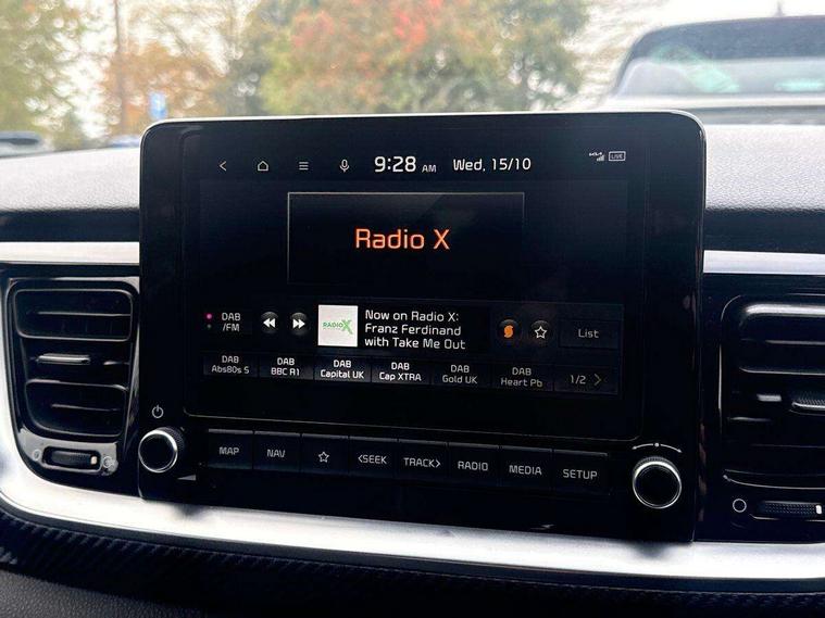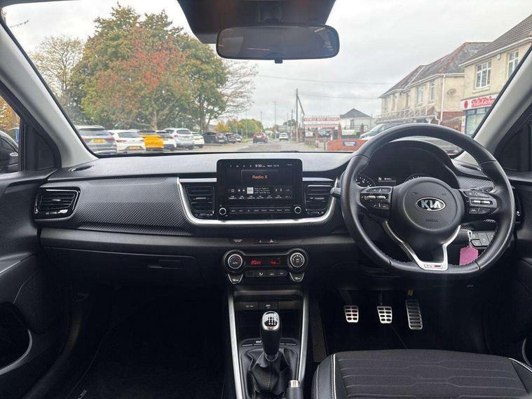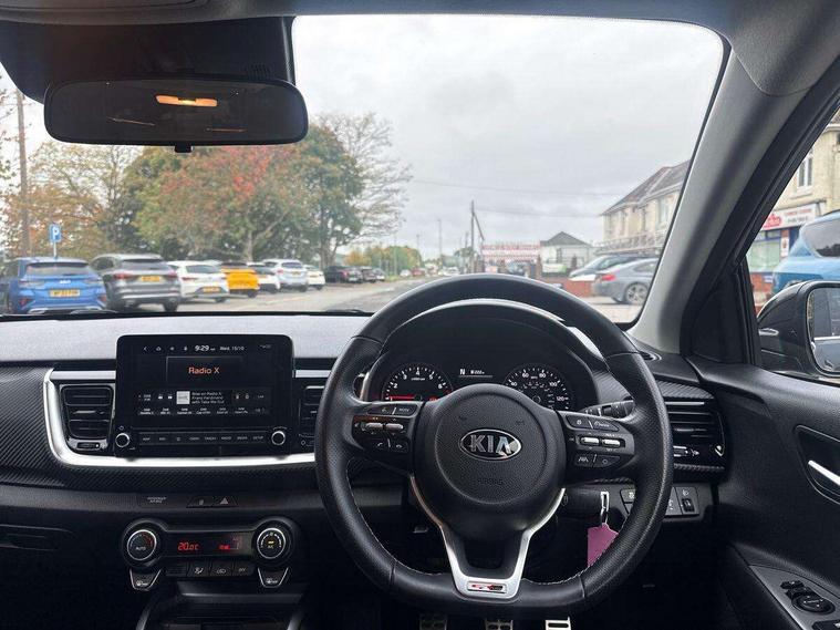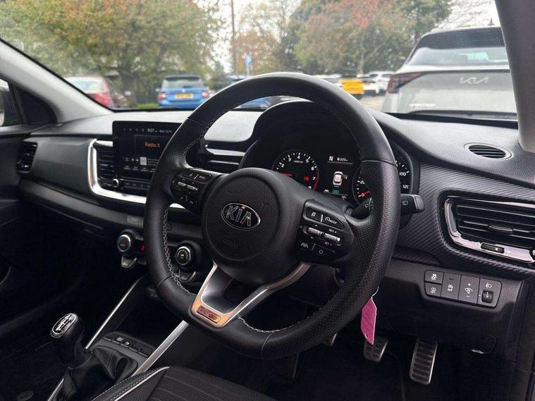 4.2" supervision colour cluster display, 8" touchscreen navigation, Apple car play/Android Auto with voice control, Cruise control + speed limiter, Drive mode selector, Electric power steering, Emergency stop signalling system, External temperature display, Forward Collision-Avoidance Assist (FCA) - City/Pedestrian/Cyclist, Kia connected services featuring TomTom live, Lane keeping assist system (LKAS), Driver attention warning (DAW) and High beam assist (HBA), Rear parking sensor, Reversing camera system, Trip computer, UVO connect, Intelligent Stop and Go, Audio system with 6 speakers, Bluetooth with music streaming, Front USB port, Rear USB port, Steering wheel mounted controls, Aero blade type windshield wipers, All round electric windows with drivers auto up/down function, Automatic defog system, Automatic headlights control, Black rear spoiler with high mounted braking light, Black side sill, door garnish and wheel arch trims, Black/body colour bumpers, Body coloured exterior door handles, Chrome side window trim, Electrically adjustable/heated/folding door mirrors with LED indicators, Front and rear silver skid plates, Gloss black door mirrors with matt black lower housing, GT-Line body kit, Headlight levelling device, Heated rear window, High gloss black and satin radiator grille, LED Bi-function projection headlights with static bending, LED daytime running lights, LED front fog lights, LED rear combination lights, Privacy glass - Rear windows and tailgate, Rear fog lights, Rear wash/wipe, Roof rails, Shark fin antenna, Solar windshield glass, Speed variable front wipers, Tinted glass, Welcome and follow-me home light functionality, Windscreen Washer Level Warning, 12V power point front, 60/40 split folding rear seat, Air filter, All-round height adjustable headrests, Aluminium pedals, Automatic air conditioning, Centre armrest storage box, Centre console with cupholders, D-Cut perforated leather trimmed steering wheel, Dash illumination dimmer switch, Driver's seat height adjuster, Dual Height Luggage Area Floor, Front and centre cabin lights, Front and rear door map pockets with bottle holder, Gear shift indicator, Glovebox illumination, GT-Line cloth/faux leather upholstery, ISOFIX Child seat top tethers and anchor fixings outer rear seats, Leather trimmed gearshift, Luggage area light, Luggage area parcel shelf, Luggage net with hooks, Overhead console lamp, Overhead console with sunglasses cases, Passenger front seatback pockets, Satin chrome interior door handles, Sunvisors with vanity mirror illumination (Driver and front passenger), Tilt/telescopic adjustable steering wheel, ABS with Electronic Brakeforce Distribution (EBD) and Brake Assist System (BAS), All round 3-point seatbelts, Electronic stability control (ESC) and vehicle stability management (VSM), Front passenger airbag cut-off switch, Front seatbelt pretensioners + load limiters, Height adjustable front seatbelts, Hill start assist control (HAC), Impact sensing auto door unlocking, Rear seat Occupancy alert, Seatbelt reminder warning, Twin curtain airbags, Twin front airbags, Twin front side airbags, Tyre pressure monitoring system, Alarm system, Door deadlocks, Engine immobiliser, Locking wheel nuts, Remote central door locking with fold away key, Speed sensitive auto door locking, Visible vehicle identification number, High gloss black centre fascia, 17" GT-Line alloy wheels, Tyre mobility kit,