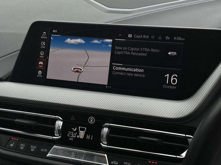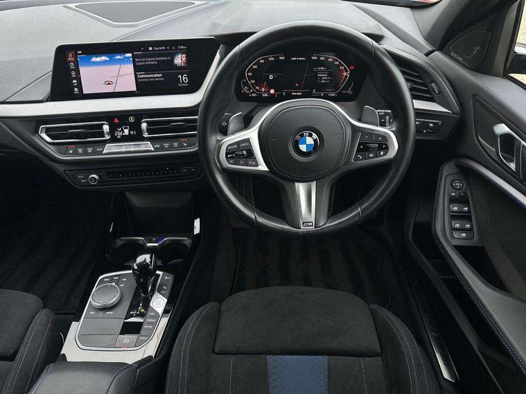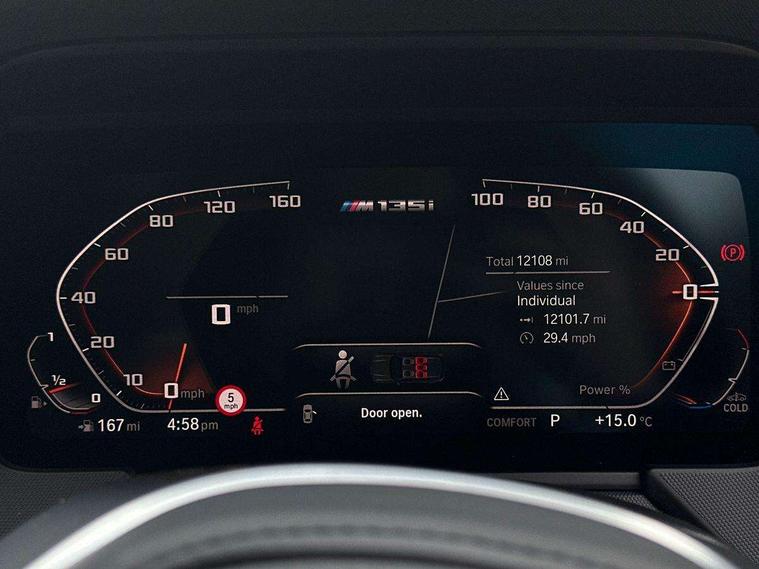 Active guard plus, Attentiveness assist, BMW ConnectedDrive online services, BMW Teleservices, Check Control warning system for monitoring of lights and door/luggage compartment open warning, Cruise control with brake assist, Eco pro mode, Electric power steering, Electro hydraulically controlled multi-plate clutch transfers drive to rear axle and with power take-off device located on the front differential., Energy efficient operating strategy, Front axle single joint with specific axle kinematics to minimise drive influences on steering + provide increased rigidity agile driving behaviour, Gearshift time display in manual mode, Integrated owners handbook, Lane departure warning system, M Sports steering with M135i xDrive specific settings, Oil sensor for level and grade, On board computer, Optimum shift indicator, Personal Profile, Pull away assistant, Rigidly mounted rear subframe - Multi link construction with separate spring / damper configuration and excellent driving characteristics, Speed limit Info including no-overtaking indicator, Speed limiter, Sporty fast gear shifting in sport mode, Aluminium lightweight construction, Anti roll bar front and rear, Balancer shaft, Double VANOS, Drive Performance Control, Eight speed sport automatic transmission with gearshift paddle switches, Electronic differential lock, Electronic selector lever, Engine cover with M performance designation, High precision injection, Larger fuel tank capacity (50 litres), Launch control, M135i specific heavily de-throttled engine intake air guide, M135i specific high-performance cooling package, M135i specific larger turbocharger with integrated divert-air valve, Petrol Particulate Filter, Twin tube gas filled shock absorbers with degressive characteristic curve, VALVETRONIC engine management, Variable, stepless and infinitely adjustable distribution of drive torque between the front and rear axles, xDrive intelligent all wheel drive with M135i specific reinforced components, DAB Digital radio, Auto dimming rear view mirror, Automatic headlight beam throw control, Automatic windscreen wipers and automatic headlight, Body colour door handles, Body colour roof trims, Cerium grey exterior mirror caps, Direction indicator side lights in exterior mirrors, Exhaust tailpipe, Cerium Grey with bevelled finish - twin, round 100mm, left and right split, Fading support, Folding side mirrors with auto dimming/folding wing mirrors with auto dimming, Follow me home headlights, Front and rear bumper system with replaceable deformation elements, Front and rear electric windows with open and close fingertip control, anti trap facility and comfort closing, Front door sill finishers with M135i designation, Green tinted heat protection glazing, Heated, electrically adjustable exterior mirror aspheric on driver side, convex on passenger side, High gloss shadowline window frame, Recess cover mirror frames and B/C pillar embelisher trim, High level third brake light, Integrated front windscreen with washer jets, Kidney grille frame in Cerium Grey with Mesh design, LED daytime running lights, LED eyebrow turn indicators, LED front fog lights, Lightweight engineering, M logo designation side in cerium grey, M Performance exhaust system with valve control and minimised exhaust back pressure, M Performance specific setup, M Sport spoiler, Matt black air guide grilles, Matt black wheel arch trim, Model designation on electric bootlid includes xDrive designation for M135i xDrive, Nearside reverse light in rear light cluster, Preparation for high beam assistant, Rear fog lights, Rear side wing doors, Rear window wiper, Reinforced crank drive, new pistons and adapted con rods, Shark fin antenna, Trailer stabilisation logic, Visible VIN plate, Welcome lighting, 12V power socket in front centre console with blanking plug, 3 rear seat head restraints, 3 seat bench in 2nd row, 3 spoke sports leather steering wheel with black leather and stitching, pearl chrome decorative finish, specific M Badge, Anthracite headlining, Black boot net with lashing eyes, Cargo function on 2nd seat row, Child seat ISOFIX attachment for two outer rear seats and front passenger seat with anchorage points, Conditioned based service, Driver and front passenger seat heating, Folding rear clothes hook, Four grab handles integrated in roof lining, Front and rear door pockets with bottle holders, Front and rear side armrest integrated into door trim, Front armrest, Front integrated head restraints, Front M sports seats, Glove compartment, Luggage compartment for bag hooks on left and right, foldable luggage compartment liner and four lashing eyelets, Manual adjust steering wheel, Multi-function controls for steering wheel, Single front passenger seat, Storage compartment in centre console, Sun visors with vanity mirrors and insert tab, Two front centre console cupholders, Two zone automatic air conditioning, Velour floor mats, Additional interior lighting pack - 1 Series M135i, BMW live cockpit professional pack- 1 Series, Connected pack professional - 1 Series, Interior lights pack - 1 Series, M Sport exterior styling aerodynamics pack - 1 Series 135i, 2 tone horn, 3 point seatbelts on all seats, front pyrotechnic belt tensioners, stopper and belt force limiters, rear coded belt buckles, Airbags - Front driver/passenger, front and rear curtain head protection, front side, manual deactivation of front passenger airbag, Anti lock braking system (ABS) with brake assist, BMW emergency call, Brake drying, Braking readiness, Child proof locking system in rear door, City braking function, Comfort modes, Cornering brake control, Crash sensor activating central locking release, hazard warning lights, fuel cut off, interior lighting + activation of safety battery terminal clamp, Driver and front passenger seat belt security check, Dynamic stability control + (DSC+), Dynamic Traction Control - DTC, Electrically operated hand brake including automatic hold function, Front and rear