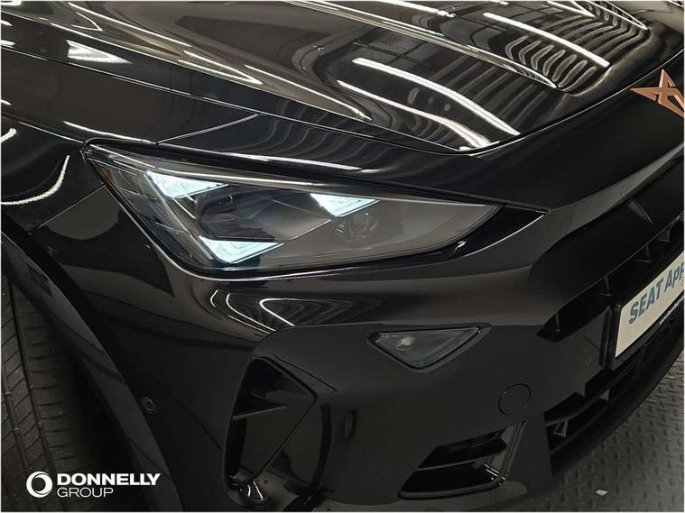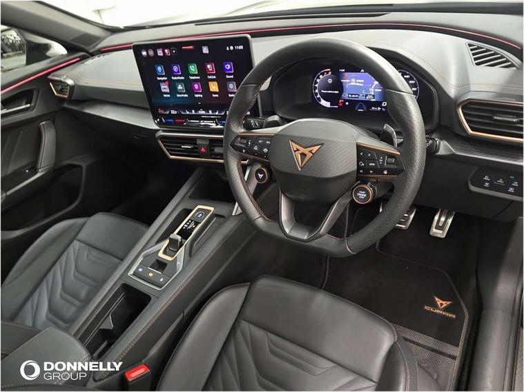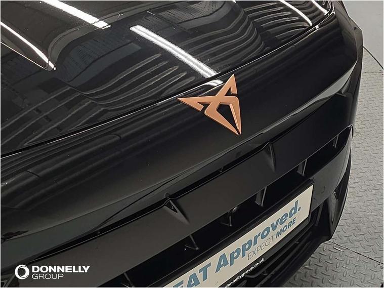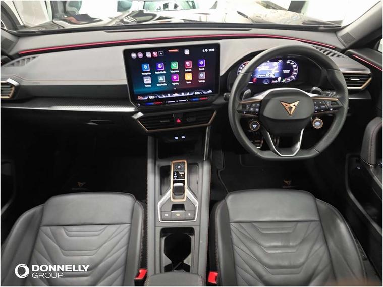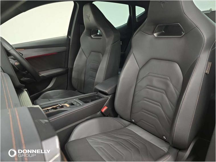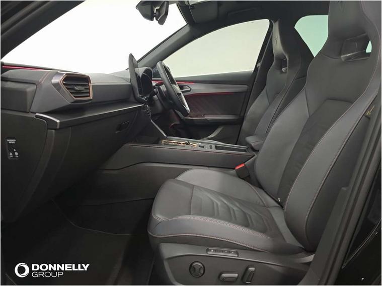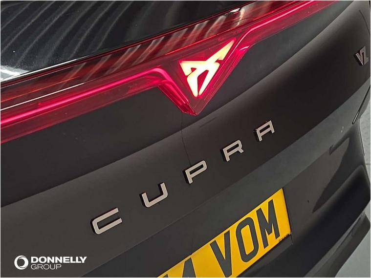 10.25" digital cockpit and configurable dashboard, Adaptive cruise control with follow-to-stop and speed limiter, Advanced driver alert system, Advanced lane assist with semi-automatic vehicle control in a medical emergency and traffic jam assist, Dynamic chassis control with driving profile selection (Comfort, Sport, CUPRA, Individual), Dynamic road sign display, Emergency steering support with turn assist, Forward collision warning with automatic braking, Full link phone integration, Intelligent park assist, RPM, trip computer, outside temp gauge, instrument light brightness, low fuel warning light, lights on reminder, gearshift indicator, Service interval indicator, Side and exit assist, Speed sensitive power steering, Start/stop system with regenerative braking, Top view camera, Virtual pedal and electric tailgate, Voice control system, Wired Android Auto, Wireless apple carplay, Wireless phone charger, Adaptive chassis control with continuous operation, CUPRA sport suspension, Electronic locking differential and dynamic traction support, 2 front and 2 rear USB type C sockets, Media system with navigation, 12.9" touchscreen display, voice control, DAB, steering wheel mounted controls, Auto dimming rear view mirror, Body colour door handles, Body coloured bumpers, Dark grey wing mirror, Daytime running light with automatic headlight control and coming home feature, Door panel ambient lighting, Dynamic headlight range control, Electric front/rear windows, Electrically adjustable heated and folding door mirrors with memory function, Gloss black roof rails and window surrounds, High beam assist, LED 3rd brake light, LED front fog lamps with cornering function, LED Taillights with dynamic indicator, Matrix LED headlights with multifunction camera, Rain sensing wipers, Rear diffuser with twin exhaust pipe on each side, Rear fog lights, Rear side wing doors, Rear wash/wipe, Tinted rear windows, Welcome lights (within exterior mirror housing), 12V socket, 2 front and 2 rear reading lights, 3 seat bench in 2nd row, 60/40 split rear bench seat with armrest and mechanical seat release, Black headlining, Black interior roof lining, Cupra sports pedals, Dust/pollen filter, Electrically adjustable front seats with lumbar support and memory function, Front and rear head restraints, Front centre armrest, Heated front seats, Heated supersports multifunction leather steering wheel with satellite buttons and gear shift paddles, Height/reach adjust steering wheel, Illuminated aluminium doorsteps, Illuminated interior front door sills, Illuminated sunvisor with mirror, Isofix, Leather dashboard, door insert and side trim panel, LED smart wraparound lighting, PVC/Leather upholstery, Satellite steering wheel, Single front passenger seat, Storage pockets on rear of front seats, Three zone climate control with control panel in rear, Variable luggage/load compartment floor, 3 point seatbelts on all rear seats, ABS, Brake control system - ESC and brake booster, Child proof door locks, Driver and front passenger airbags with front passenger airbag de-activation, Electronic parking brake, Front and rear disc brakes, Front side curtain airbags, Hill hold control, Pre-crash front and rear seat belt tensioner, window closure and hazard lights, Public e-call, Seat belt reminder for front and rear seats, Tyre pressure monitoring system, Anti theft alarm system, KESSY Advanced - Keyless start, keyless entry with SAFELOCK, Locking wheel bolts, Copper and aluminium interior detailing, 19" Artic machined sport black and silver alloy wheels, Breakdown and tool kit,