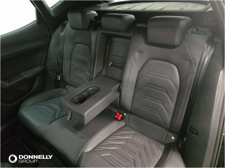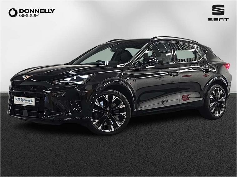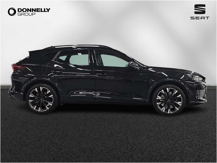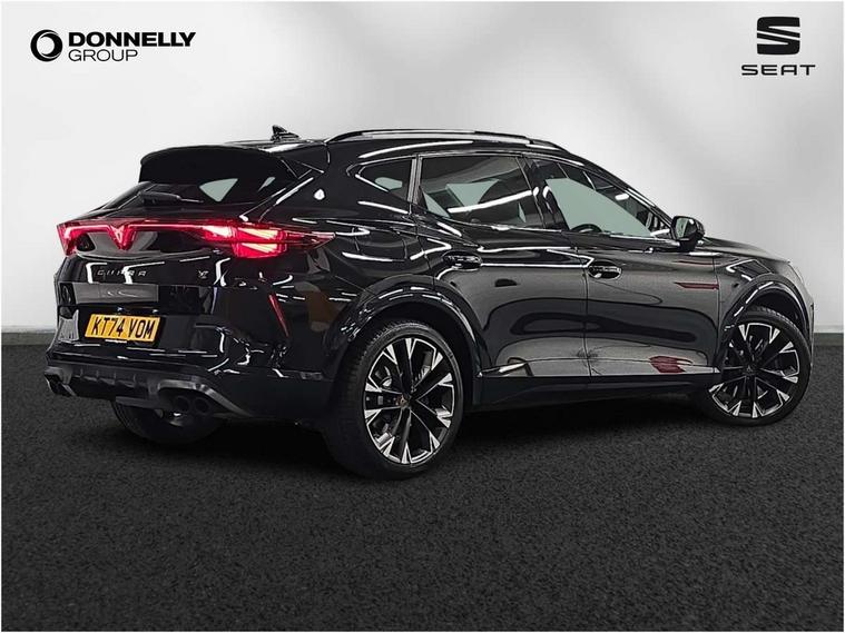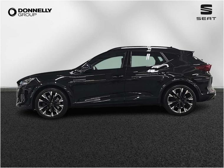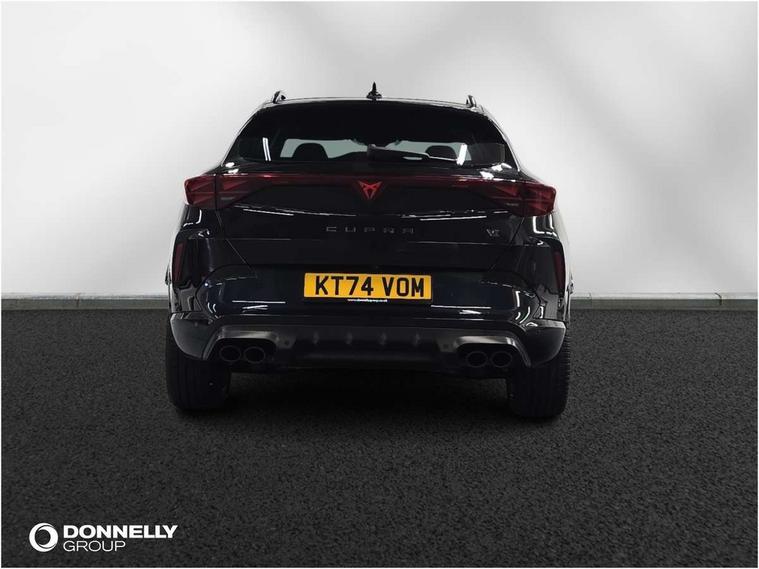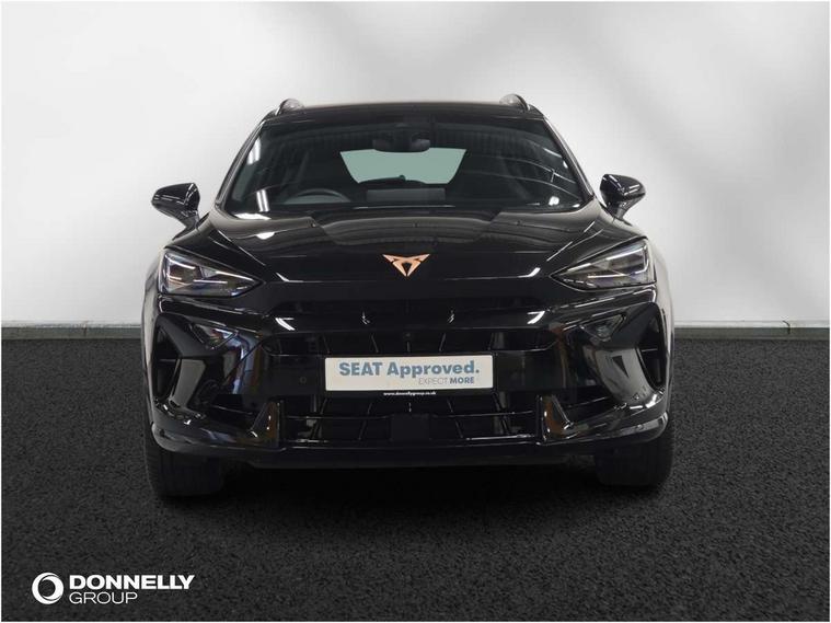 10.25" digital cockpit and configurable dashboard, Adaptive cruise control with follow-to-stop and speed limiter, Advanced driver alert system, Advanced lane assist with semi-automatic vehicle control in a medical emergency and traffic jam assist, Dynamic chassis control with driving profile selection (Comfort, Sport, CUPRA, Individual), Dynamic road sign display, Emergency steering support with turn assist, Forward collision warning with automatic braking, Full link phone integration, Intelligent park assist, RPM, trip computer, outside temp gauge, instrument light brightness, low fuel warning light, lights on reminder, gearshift indicator, Service interval indicator, Side and exit assist, Speed sensitive power steering, Start/stop system with regenerative braking, Top view camera, Virtual pedal and electric tailgate, Voice control system, Wired Android Auto, Wireless apple carplay, Wireless phone charger, Adaptive chassis control with continuous operation, CUPRA sport suspension, Electronic locking differential and dynamic traction support, 2 front and 2 rear USB type C sockets, Media system with navigation, 12.9" touchscreen display, voice control, DAB, steering wheel mounted controls, Auto dimming rear view mirror, Body colour door handles, Body coloured bumpers, Dark grey wing mirror, Daytime running light with automatic headlight control and coming home feature, Door panel ambient lighting, Dynamic headlight range control, Electric front/rear windows, Electrically adjustable heated and folding door mirrors with memory function, Gloss black roof rails and window surrounds, High beam assist, LED 3rd brake light, LED front fog lamps with cornering function, LED Taillights with dynamic indicator, Matrix LED headlights with multifunction camera, Rain sensing wipers, Rear diffuser with twin exhaust pipe on each side, Rear fog lights, Rear side wing doors, Rear wash/wipe, Tinted rear windows, Welcome lights (within exterior mirror housing), 12V socket, 2 front and 2 rear reading lights, 3 seat bench in 2nd row, 60/40 split rear bench seat with armrest and mechanical seat release, Black headlining, Black interior roof lining, Cupra sports pedals, Dust/pollen filter, Electrically adjustable front seats with lumbar support and memory function, Front and rear head restraints, Front centre armrest, Heated front seats, Heated supersports multifunction leather steering wheel with satellite buttons and gear shift paddles, Height/reach adjust steering wheel, Illuminated aluminium doorsteps, Illuminated interior front door sills, Illuminated sunvisor with mirror, Isofix, Leather dashboard, door insert and side trim panel, LED smart wraparound lighting, PVC/Leather upholstery, Satellite steering wheel, Single front passenger seat, Storage pockets on rear of front seats, Three zone climate control with control panel in rear, Variable luggage/load compartment floor, 3 point seatbelts on all rear seats, ABS, Brake control system - ESC and brake booster, Child proof door locks, Driver and front passenger airbags with front passenger airbag de-activation, Electronic parking brake, Front and rear disc brakes, Front side curtain airbags, Hill hold control, Pre-crash front and rear seat belt tensioner, window closure and hazard lights, Public e-call, Seat belt reminder for front and rear seats, Tyre pressure monitoring system, Anti theft alarm system, KESSY Advanced - Keyless start, keyless entry with SAFELOCK, Locking wheel bolts, Copper and aluminium interior detailing, 19" Artic machined sport black and silver alloy wheels, Breakdown and tool kit,