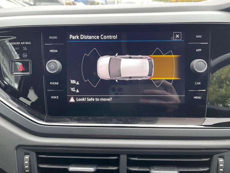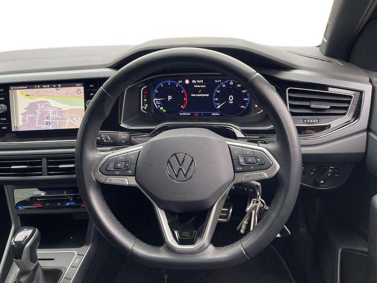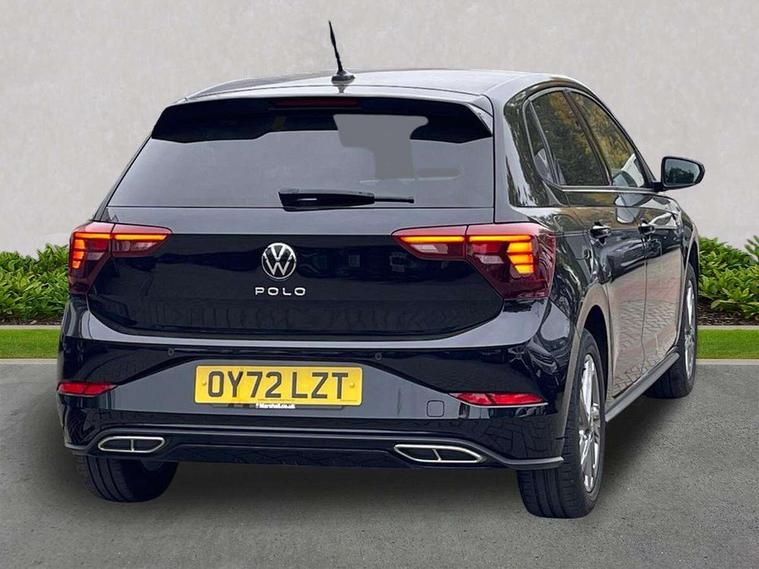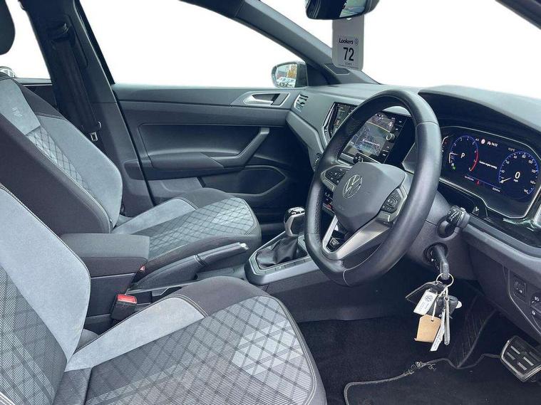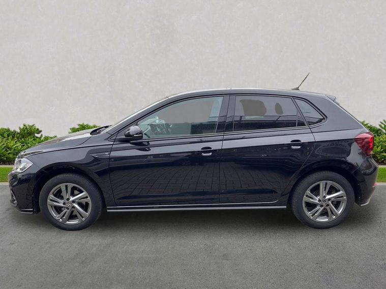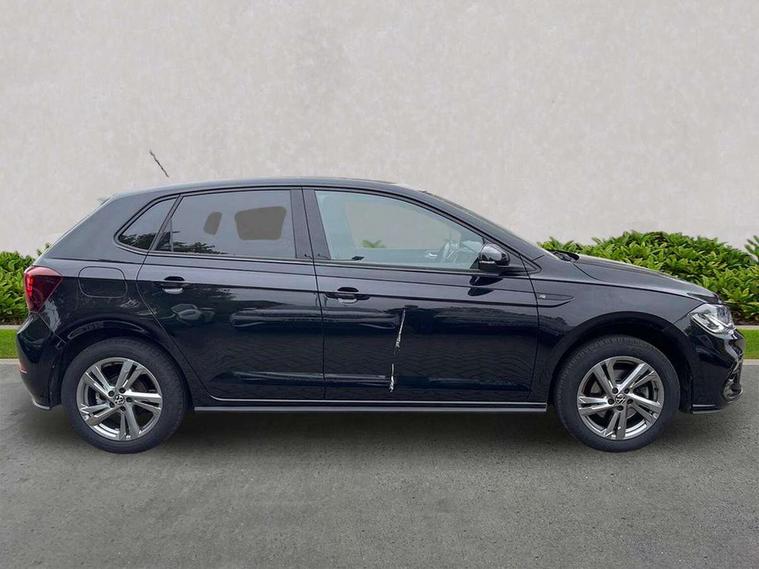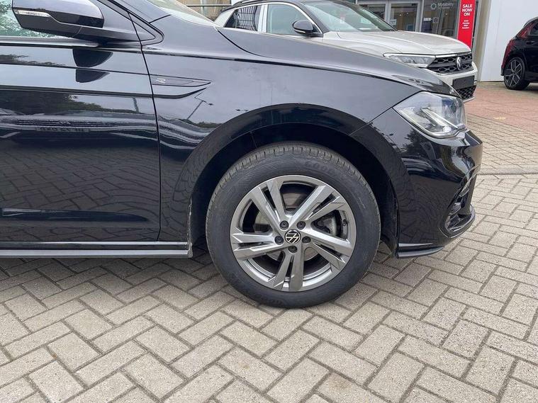 Adaptive cruise control with follow-to-stop and speed limiter, Bluetooth mobile phone interface, Digital Cockpit Pro with 10.25" Display, Driver alert system, Dynamic road sign display, Emergency call service, Power assisted speed sensitive steering, Preparation for We connect and We connect plus, Speedo and rev counter, electronic odometer, trip, service interval display and fuel gauge, Standard rear axle, Travel Assist - Lane keeping system and traffic jam assist, Travel assist including emergency assist, Trip computer, Warning signal and warning light for front and rear seatbelts not fastened, Washer fluid level indicator, Wireless app connect, Front wheel drive, Rear shock absorpion, Start-stop system with battery regeneration (recuperation - energy recovery during braking), DAB Digital radio, Diversity antenna for FM reception, Front and rear 6 speakers, Body colour bumpers, Body colour door handles, Body colour door mirrors, Electric front windows, Front scuff plates with R-Line logo, Heat insulating darkened glass in side and rear windows, Heat insulating glass windscreen, Power folding adjustable/heated exterior mirrors and front passenger exterior mirror lowering function, Rear electric windows, Rear fog light, Rear side wing doors, Rear tinted glass from B-pillar backwards approx 65% tinted, Rear windscreen washer and wiper with interval delay, Third brake light, 12V power socket in centre console, 2 USB-C ports in the front, 2 USB-C charging sockets on the center console in the rear, 3 rear head restraints, 60/40 split folding rear seat and rear seat bench not split, Air care climatronic air conditoning system with active combination filter and 2-zone temperature control, Black roof lining, Ceramique headliner, Chrome plated radiator grille inserts, air vent surrounds and light switch surrounds, Door and side trim panel, Driver and front passenger seat height adjustment, Driver/passenger sunvisors with illuminated vanity mirrors, Front + rear carpet mats, Front centre armrest, Front footwell illumination, Front seat backrest storage pockets, Front sports comfort seats, Handbrake lever handle in leather, Isofix child seat preparation easy-fit (for two outer rear seats, and front passenger seat) compatible with I-size, Karoso artvelours cloth upholstery, Leather trimmed gear knob, LED interior light with switch off delay and dimmer, 2 reading lights front and rear, Luggage compartment cover, Luggage compartment floor, Luggage compartment lighting, Lumbar adjustment for front seats, Single front passenger seat, Stainless steel pedals, Standard pedal cluster, Three spoke leather wrapped multifunction steering wheel with shifting paddles, Light and sight pack - Polo R-Line/Black Edition, 3 point height adj front seatbelts + pretensioners, 3x3 point rear seatbelts, ABS, Driver and front passenger airbag with front passenger airbag deactivation, Drivers and front passengers safety optimised head restraints, ESC (Electronic stability control) + EDL (Electronic Differntial lock) and ASR (Traction control), Extended and predictive pedestrian/ cyclist protection, Front curtain and side airbags with center airbag, Front/rear disc brakes, Hill hold control, Manual child lock in rear doors, Single tone horn, Tyre pressure loss indicator, Alarm with interior protection, Anti-theft alarm system with interior monitoring, backup horn, and towing protection, Anti-theft wheel bolts, Electronic engine immobiliser, Chrome applications on rotary light, mirror adjustment, window regulator switches, outlet with frame in black, Dark grey anodised matt decorative inserts in dash and front door panels, Low rolling resistance tyres,