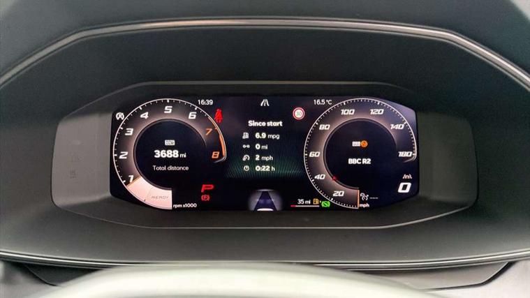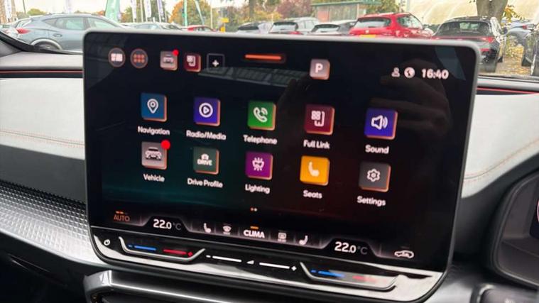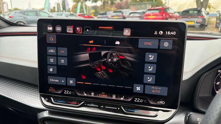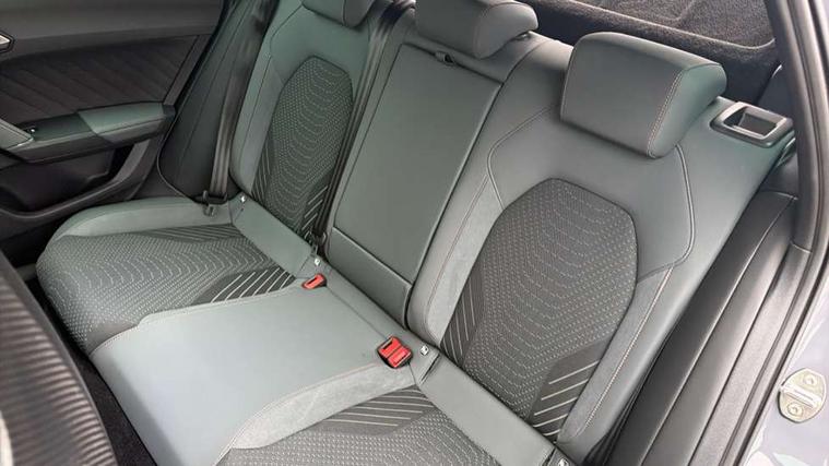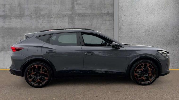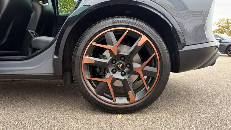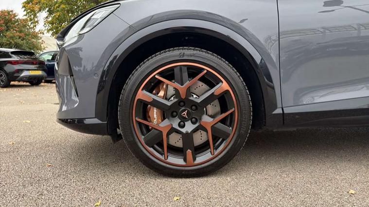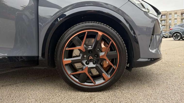 10.25" digital cockpit and configurable dashboard, Adaptive cruise control with follow-to-stop and speed limiter, Advanced driver alert system, Advanced lane assist with semi-automatic vehicle control in a medical emergency and traffic jam assist, Dynamic chassis control with driving profile selection (Comfort, Sport, CUPRA, Individual), Dynamic road sign display, Emergency steering support with turn assist, Forward collision warning with automatic braking, Full link phone integration, Intelligent park assist, RPM, trip computer, outside temp gauge, instrument light brightness, low fuel warning light, lights on reminder, gearshift indicator, Service interval indicator, Side and exit assist, Speed sensitive power steering, Start/stop system with regenerative braking, Top view camera, Virtual pedal and electric tailgate, Voice control system, Wired Android Auto, Wireless apple carplay, Wireless phone charger, Adaptive chassis control with continuous operation, CUPRA sport suspension, Electronic locking differential and dynamic traction support, 2 front and 2 rear USB type C sockets, Immersive by Sennheiser TM - 10 speakers, 1 central speaker, 1 subwoofer, Media system with navigation, 12.9" touchscreen display, voice control, DAB, steering wheel mounted controls, Auto dimming rear view mirror, Black roof spoiler, Body colour door handles, Body coloured bumpers, Dark grey wing mirror, Daytime running light with automatic headlight control and coming home feature, Door panel ambient lighting, Dynamic headlight range control, Electric front/rear windows, Electrically adjustable heated and folding door mirrors with memory function, Gloss black roof rails and window surrounds, High beam assist, LED 3rd brake light, LED front fog lamps with cornering function, LED Taillights with dynamic indicator, Matrix LED headlights with multifunction camera, Rain sensing wipers, Rear diffuser with twin exhaust pipe on each side, Rear fog lights, Rear side wing doors, Rear wash/wipe, Side skirts, Tinted rear windows, Welcome lights (within exterior mirror housing), 12V socket, 2 front and 2 rear reading lights, 3 seat bench in 2nd row, 60/40 split rear bench seat with armrest and mechanical seat release, Black headlining, Black interior roof lining, Cupra sports pedals, Dust/pollen filter, Electrically adjustable front seats with lumbar support and memory function, Front and rear head restraints, Front centre armrest, Heated front seats, Heated supersports multifunction leather steering wheel with satellite buttons and gear shift paddles, Height/reach adjust steering wheel, Illuminated aluminium doorsteps, Illuminated interior front door sills, Illuminated sunvisor with mirror, Isofix, Leather dashboard, door insert and side trim panel, LED smart wraparound lighting, PVC/Textile upholstery + cup bucket seats, Satellite steering wheel, Single front passenger seat, Three zone climate control with control panel in rear, Variable luggage/load compartment floor, 3 point seatbelts on all rear seats, ABS, Akebono brakes, Brake control system - ESC and brake booster, Child proof door locks, Driver and front passenger airbags with front passenger airbag de-activation, Driver and front passenger knee airbag, Electronic parking brake, Hill hold control, Performance brakes with front brembo calipers, Pre-crash front and rear seat belt tensioner, window closure and hazard lights, Public e-call, Seat belt reminder for front and rear seats, Side airbag for front and rear with curtain airbags, Tyre pressure monitoring system, Anti theft alarm system, KESSY Advanced - Keyless start, keyless entry with SAFELOCK, Locking wheel bolts, Copper and aluminium interior detailing, 19" Hailstorm forged machined R black and copper alloy wheels, Breakdown and tool kit,