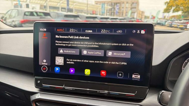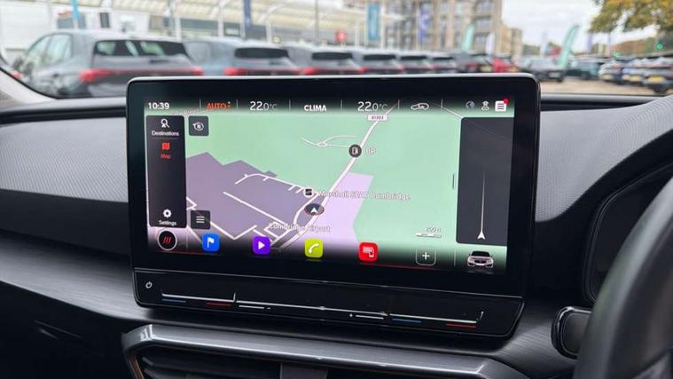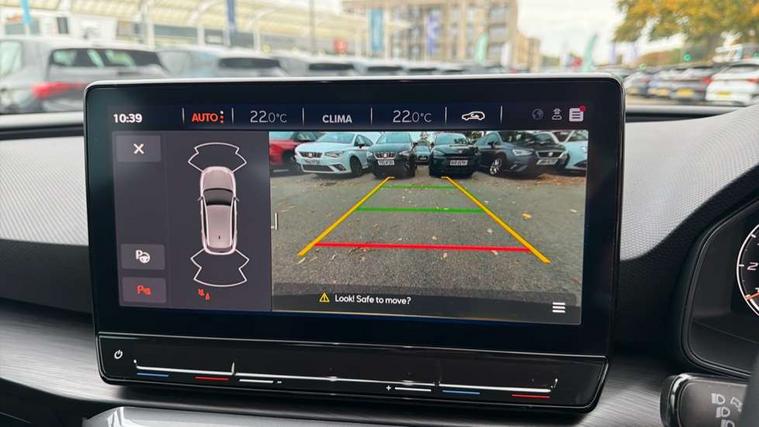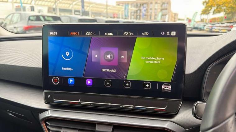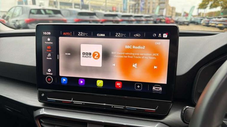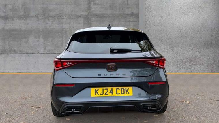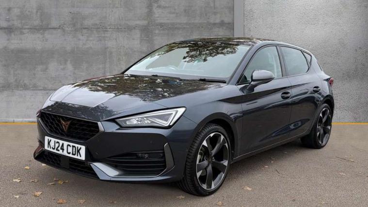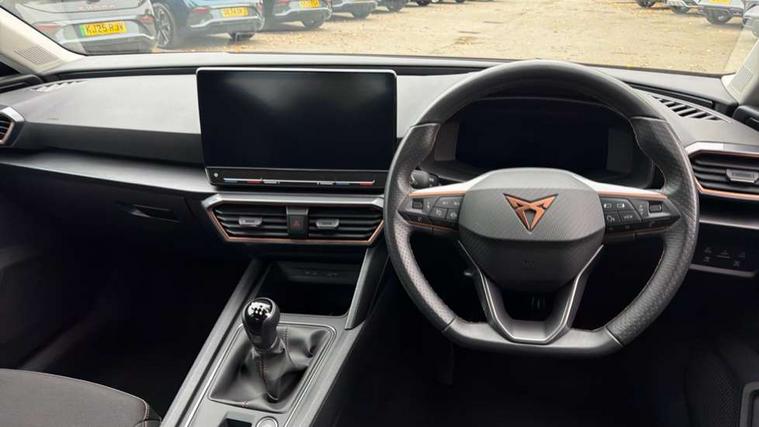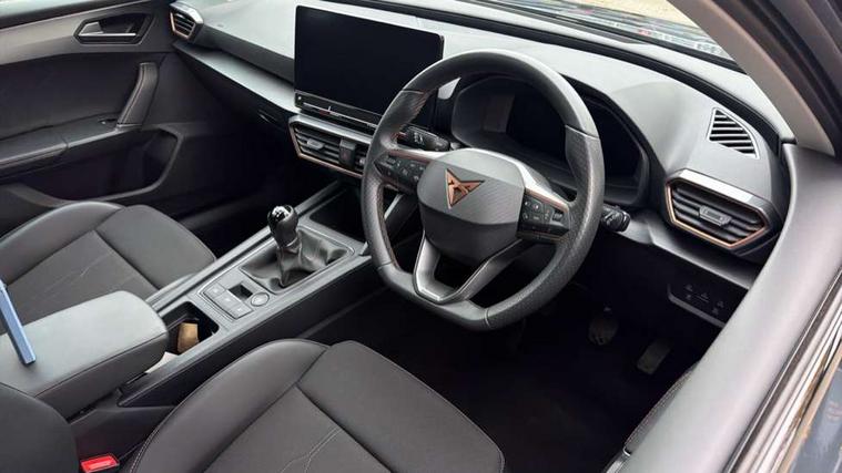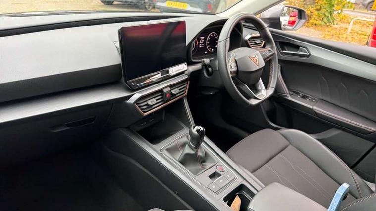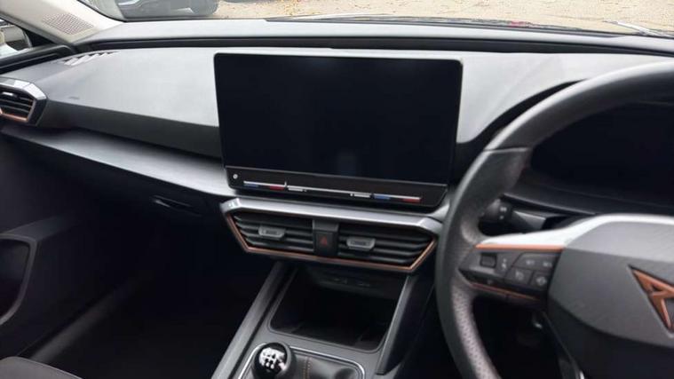 CUPRA drive profile selection with (Comfort/Sport/Individual), throttle response and gearshift mode, Digital cockpit, E-call, Electro mechanical speed sensitive power steering, Four x USB Type C ports (2 in front and 2 in rear), Front assist with forward collision warning braking reaction to vehicles, pedestrians and cyclists, Full link smartphone integration with Mirror Link, wireless Apple CarPlay and wired Google Android Auto, Lane assist, Lockable tailgate, Park assist (inc front/rear parking sensors), Rear view camera, RPM, trip computer, outside temp gauge, instrument light brightness, low fuel warning light, lights on reminder, gearshift indicator, Service interval indicator, Start/stop system with regenerative braking, Wireless phone charger, Sports suspension, Auxiliary input socket, Auto dimming rear view mirror, Body colour door handles, Body coloured bumpers, Cupra sports bumpers, Dark tinted rear windows, Electric front/rear windows, Electrically adjustable, heated and folding door mirrors, LED front fog lamps with cornering function, LED headlights with dynamic turn signals, tail lights, rear fog lights with rear coast to coast lighting, Rain sensing wipers, Rear diffuser with twin exhaust pipe on each side, Rear side wing doors, Rear wash/wipe, Separate daytime running light with automatic headlight control and coming home feature, Third brake light, 12v power supply in centre console, 3 seat bench in 2nd row, 5 headrests, 60/40 split rear bench seat with armrest, Ambient lighting with glovebox, footwell and single monocolour, Cupra Leather flat bottomed, perforated steering wheel, Driver/passenger manual seat height adjustment, Folding boot cover, Front and rear reading lights X 4, Front centre armrest, Front seats manual lumbar adjustment, Grey headlining, Height/reach adjust steering wheel, Illuminated interior front door sills, ISOFIX points in outer rear seats with top tether anchorage points, Jack and tool kit, PVC/Cloth upholstery with copper stitching, Single front passenger seat, Sports seats, Sunvisors with illuminated mirror, Three zone climate control, Media system plus with navigation pack - Leon Cupra, Safety and driving pack (M) - Cupra leon, 3 point seatbelts on all rear seats, ABS, Brake control system - ESC and brake booster, Child proof door locks, Cupra black brake calipers, Driver and front passenger airbags with front passenger airbag de-activation, front side and curtain airbags, Electronic parking brake, Extended safety system - seat belt tensioner, window closure and hazard lights, Hill hold control, Rear disc brakes, Seat belt reminder for front and rear seats, Tiredness recognition system, Tyre pressure monitoring system, Anti theft alarm system with interior monitoring in cab, backup horn and towing protection, KESSY Advanced - Keyless start, keyless entry, Locking wheel bolts, Chrome and copper interior detailing, 18" Machined sport black and silver alloy wheels with 92Y tyres,