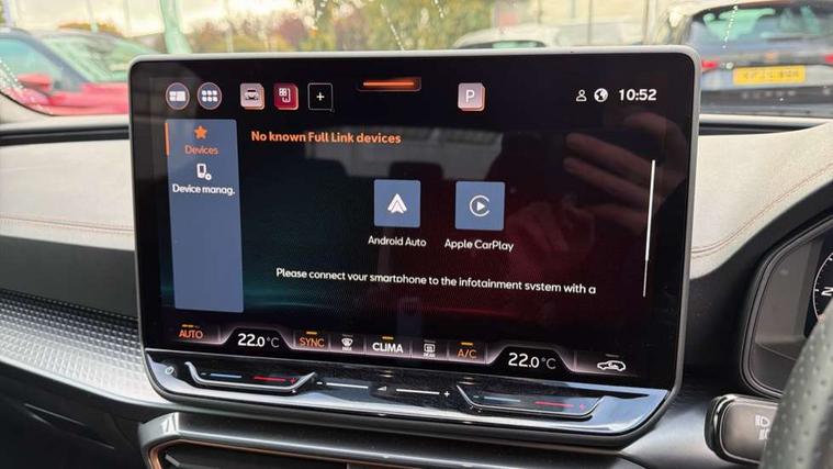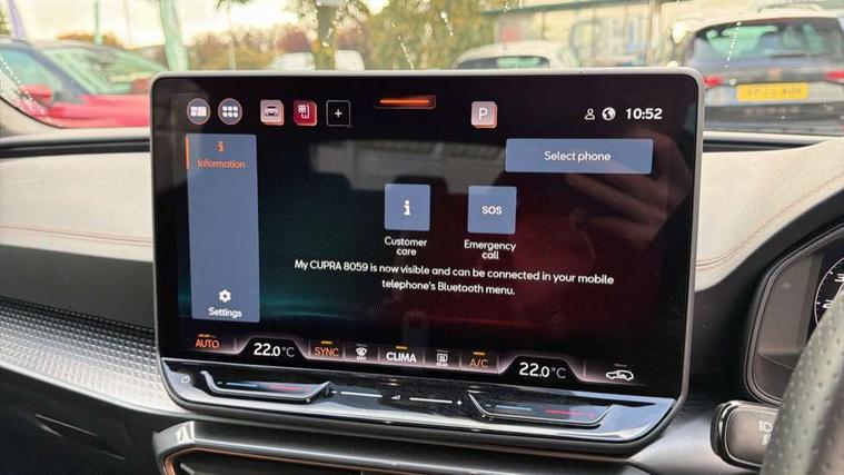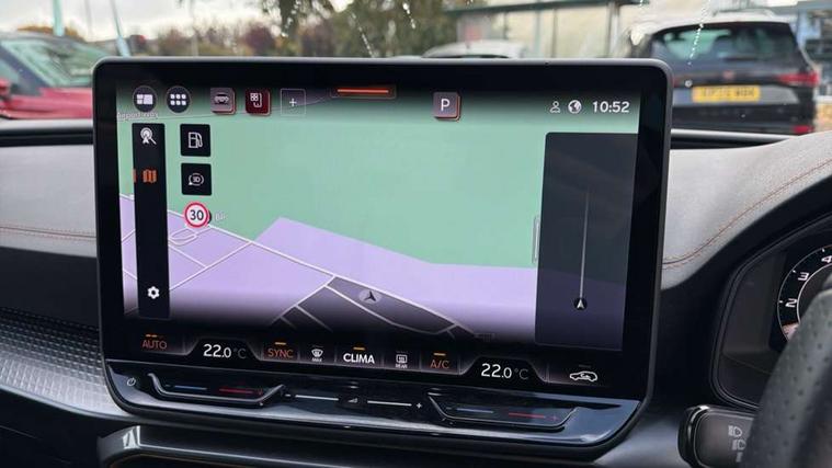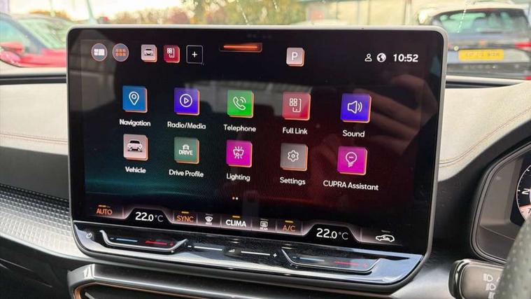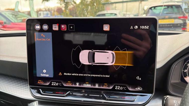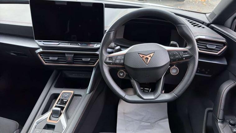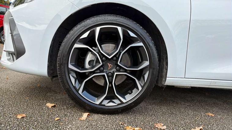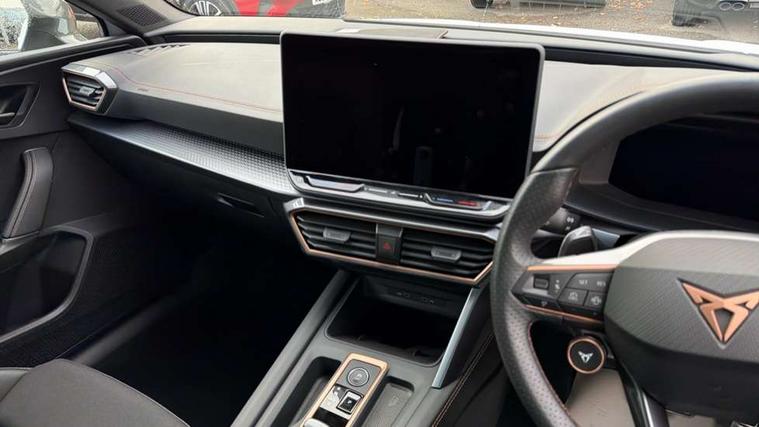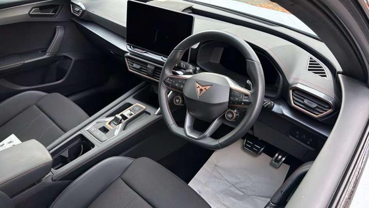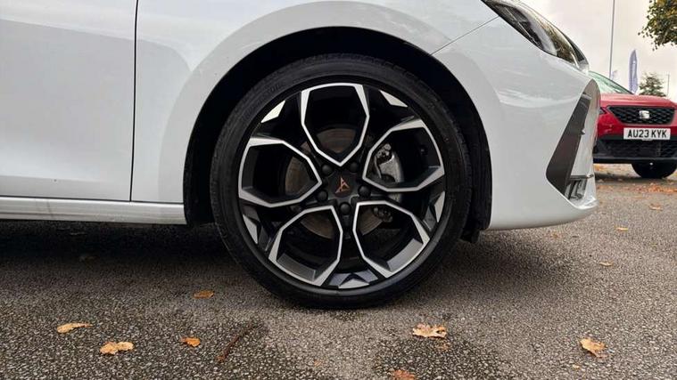 Adaptive cruise control with follow-to-stop and speed limiter, CUPRA drive profile selection with (Comfort/Sport/Individual), throttle response and gearshift mode, Digital cockpit, Dynamic road sign display, E-call, Four x USB Type C ports (2 in front and 2 in rear), Front and rear parking sensors, Front assist with forward collision warning braking reaction to vehicles, pedestrians and cyclists, Full link smartphone integration with Mirror Link, wireless Apple CarPlay and wired Google Android Auto, Lane assist, Lockable tailgate, PAS, RPM, trip computer, outside temp gauge, instrument light brightness, low fuel warning light, lights on reminder, gearshift indicator, Service interval indicator, Start/stop system with regenerative braking, Wireless phone charger, 7 speakers, Auxiliary input socket, Auto dimming rear view mirror, Body colour door handles, Body coloured bumpers, Cupra sports bumpers, Dark tinted rear windows, Electric front/rear windows, Electrically adjustable, heated and folding door mirrors, High beam assist, LED front fog lamps with cornering function, LED headlights with dynamic turn signals, tail lights, rear fog lights with rear coast to coast lighting, LED rear fog lamp, Rain sensing wipers, Rear side wing doors, Rear wash/wipe, Separate daytime running light with automatic headlight control and coming home feature, Third brake light, Welcome light with logo projector in door mirrors, 12v power supply in centre console, 3 seat bench in 2nd row, 5 headrests, 60/40 split rear bench seat with armrest, Ambient lighting with glovebox, footwell and single monocolour, Black headlining, Cloth/PVC upholstery, Cupra sports pedals, CUPRA Supersports, heated steering wheel with satellite buttons, Driver and passenger seat with manual height and lumbar adjustment, Folding boot cover, Front and rear reading lights X 4, Front centre armrest, Height/reach adjust steering wheel, Illuminated interior front door sills, ISOFIX points in outer rear seats with top tether anchorage points, Single front passenger seat, Storage pockets on rear of front seats, Sunvisors with illuminated mirror, Three zone climate control, Media system plus with 12.9" display + navigation pack - Leon Cupra, 3 point seatbelts on all rear seats, ABS, Brake control system - ESC and brake booster, Child proof door locks, Cupra black brake calipers, Driver and front passenger airbags with front passenger airbag de-activation, front side and curtain airbags, Electronic parking brake, Hill hold control, Rear disc brakes, Seat belt reminder for front and rear seats, Tiredness recognition system, Tyre pressure monitoring system, Anti theft alarm system with interior monitoring in cab, backup horn and towing protection, Central locking system Keyless Go, Locking wheel bolts, Chrome and copper interior detailing, 18" Windstorm machined sport black matt and silver alloy wheel with 92Y XL tyres, Tool kit,