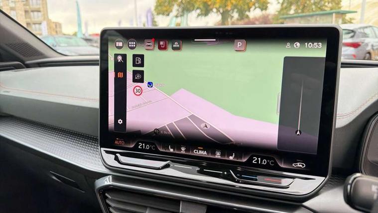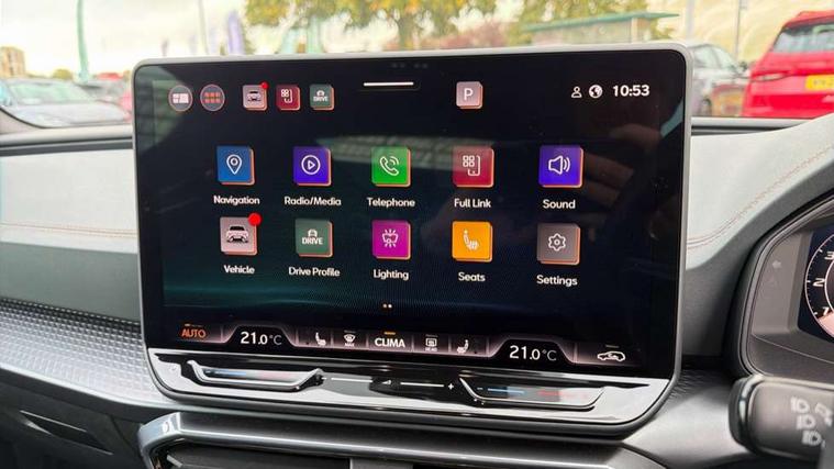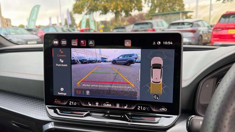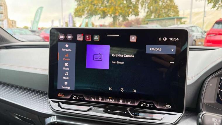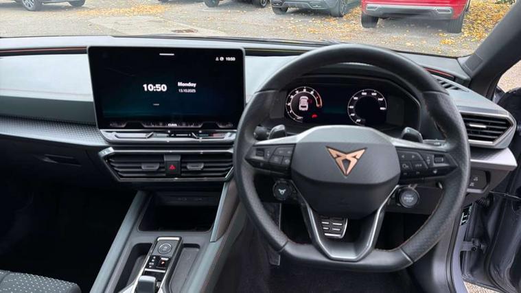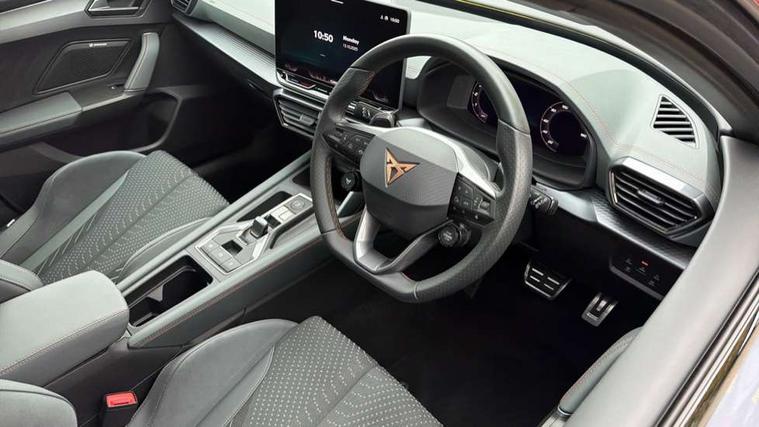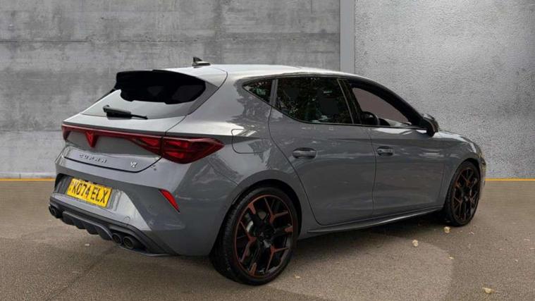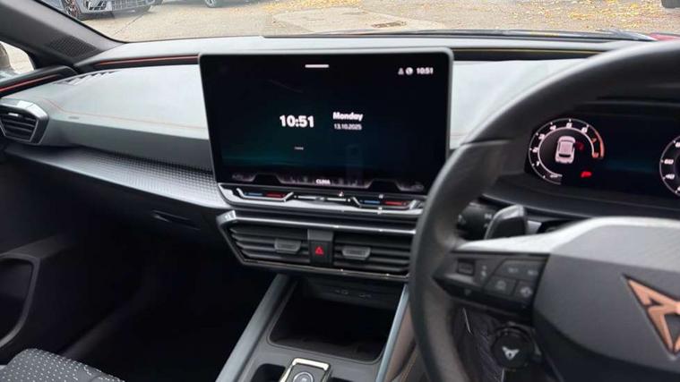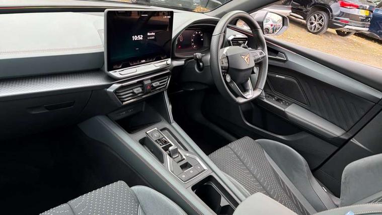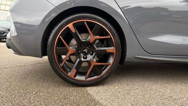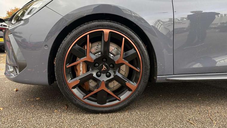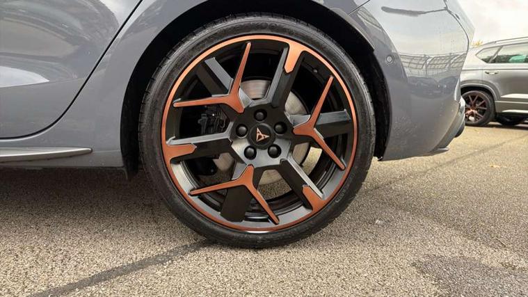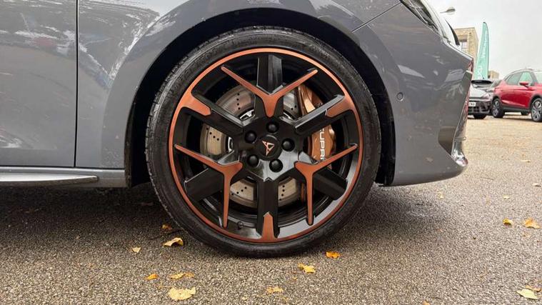 Adaptive cruise control with follow-to-stop and speed limiter, CUPRA drive profile selection with (Comfort/Sport/Individual), throttle response and gearshift mode, Digital cockpit, Dynamic road sign display, E-call, Four x USB Type C ports (2 in front and 2 in rear), Front and rear parking sensors, Front assist with forward collision warning braking reaction to vehicles, pedestrians and cyclists, Full link smartphone integration with Mirror Link, wireless Apple CarPlay and wired Google Android Auto, Intelligent park assist, Lane change assist with emergency assist, Lockable tailgate, Rear view camera, RPM, trip computer, outside temp gauge, instrument light brightness, low fuel warning light, lights on reminder, gearshift indicator, Service interval indicator, Side and exit assist, Start/stop system with regenerative braking, Wireless phone charger, Auxiliary input socket, Immersive by Sennheiser TM - 10 speakers, 1 central speaker, 1 subwoofer, Auto dimming rear view mirror, Body colour door handles, Body coloured bumpers, Cupra sports bumpers, Dark tinted rear windows, Electric front/rear windows, Electrically adjustable, heated and folding door mirrors, High beam assist, LED front fog lamps with cornering function, LED rear fog lamp, Matrix LED Headlights with variable light distribution, Matrix Beam and Dynamic headlight range control, Rain sensing wipers, Rear side wing doors, Rear wash/wipe, Separate daytime running light with automatic headlight control and coming home feature, Third brake light, Welcome light with logo projector in door mirrors, 12v power supply in centre console, 3 seat bench in 2nd row, 5 headrests, 60/40 split rear bench seat with armrest, Ambient lighting (glovebox, footwell, ambient lighting multicoloured), Black headlining, Cupra sports pedals, CUPRA Supersports, heated steering wheel with satellite buttons, Electrically adjustable driver seat and lumbar support with memory function + manually adjustable passenger seat, Folding boot cover, Front and rear reading lights X 4, Front centre armrest, Heated front seats, Height/reach adjust steering wheel, Illuminated interior front door sills, Interior wraparound lighting, ISOFIX points in outer rear seats with top tether anchorage points, Single front passenger seat, Sunvisors with illuminated mirror, Textile cloth upholstery, Three zone climate control, Dynamic and comfort pack - Leon Cupra, Media system plus with 12.9" display + navigation pack - Leon Cupra, 3 point seatbelts on all rear seats, ABS, Akebono performance brake calipers, Brake control system - ESC and brake booster, Child proof door locks, Driver and front passenger airbags with front passenger airbag de-activation, front side and curtain airbags, Electronic parking brake, Hill hold control, Pre-crash front and rear seat belt tensioner, window closure and hazard lights, Rear disc brakes, Seat belt reminder for front and rear seats, Tiredness recognition system, Tyre pressure monitoring system, Anti theft alarm system with interior monitoring in cab, backup horn and towing protection, KESSY Advanced - Keyless start, keyless entry, Locking wheel bolts, Chrome and copper interior detailing, 19" Hailstorm forged machined R black and copper alloy wheel with 91Y tyres, Breakdown kit, Tool kit,
