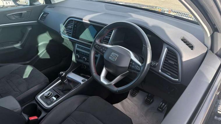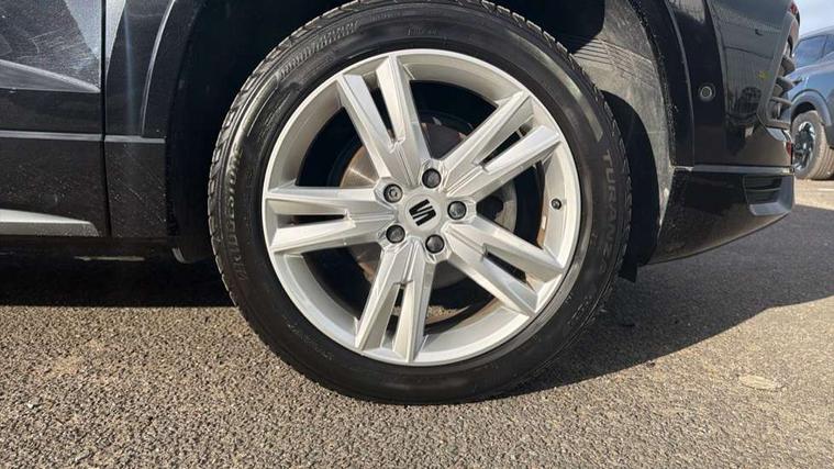 8" Digital cockpit, Colour multi-function on board computer display, Cruise control system with speed limiter, E-call, Outside temperature gauge, Progressive power assisted steering, SEAT drive profile with driving experience button - Normal, Sport, Eco and Individual mode, steering and throttle response, Self parking functionality (includes front and rear parking sensors), Start/stop system, Tailgate, Trip computer, Wireless full link smartphone integration, Wireless phone charger, Steering wheel mounted audio/phone controls, Black roof rails, Black side window trim, Body colour bumpers, Body coloured wheel arch surrounds, Chrome front grille frame, Dark tinted rear windows, Daytime running lights, Door mirrors with welcome light silhouette, Dynamic headlight range control with self adjusting whilst driving, Electric adjustable/heated/folding door mirrors, Front and rear electric windows, Full LED headlamps with lens and LED front fog lamps with cornering function, Illuminated aluminium front door sill, LED 3rd brake light, LED rear tail lights with dynamic indicators, Rear exhaust tailpipe, Rear fog lights, Rear side wing doors, Rear wash/wipe, Roof spoiler, Variable front intermittent wipers, 12v socket in front, 3 seat bench in 2nd row, 60/40 split folding rear seat, Aluminium pedals, Dinamica upholstery with front comfort seats, Drawer under right front seat, Dual zone climate control, Front and rear head restraints, Front centre armrest, Front seat back storage pockets, Height adjustable driver and passenger seat with lumbar adjustment, ISOFIX points in outer rear seats with top tether anchorage points, Leather sports steering wheel and gear knob, Rear armrest and easy back seat release mechanism from boot, Single front passenger seat, Convenience pack - Ateca, Interior lighting pack - Ateca, Navigation system pack with DAB - Ateca, Safety and driving pack with attention and drowsiness assist - Ateca, 3x3 point rear seatbelts, ABS, Traction control system (TCS), Electronic stability control (ESC) and Electronic differential lock system (XDS), Airbags - Driver and front passenger airbag with deactivation, front side, two curtain and driver's knee airbags, Electric parking brake with auto hold function, Front and rear seatbelt reminder, Front assist with autonomous emergency braking, Hill hold control, Manual rear child locks, Single tone horn, Tiredness recognition system, Tyre pressure monitoring system, Alarm, Keyless entry, Locking wheel bolts, Remote central locking, Chrome interior detailing, 18" Brillaint silver alloy wheels,