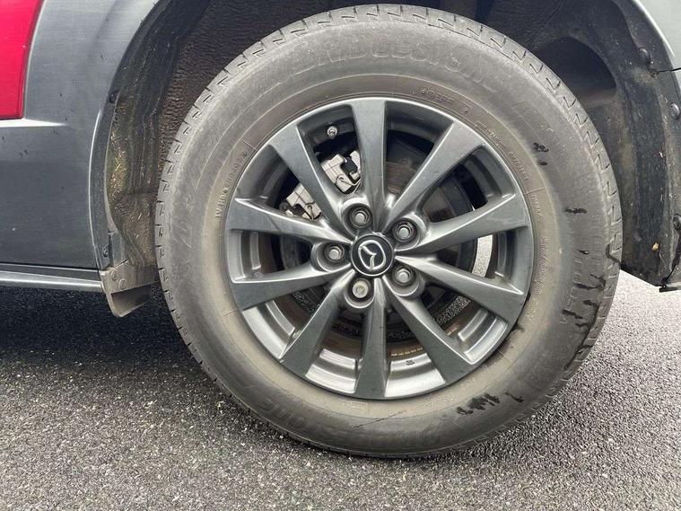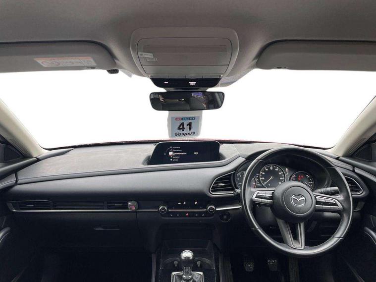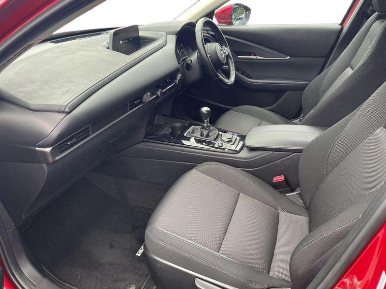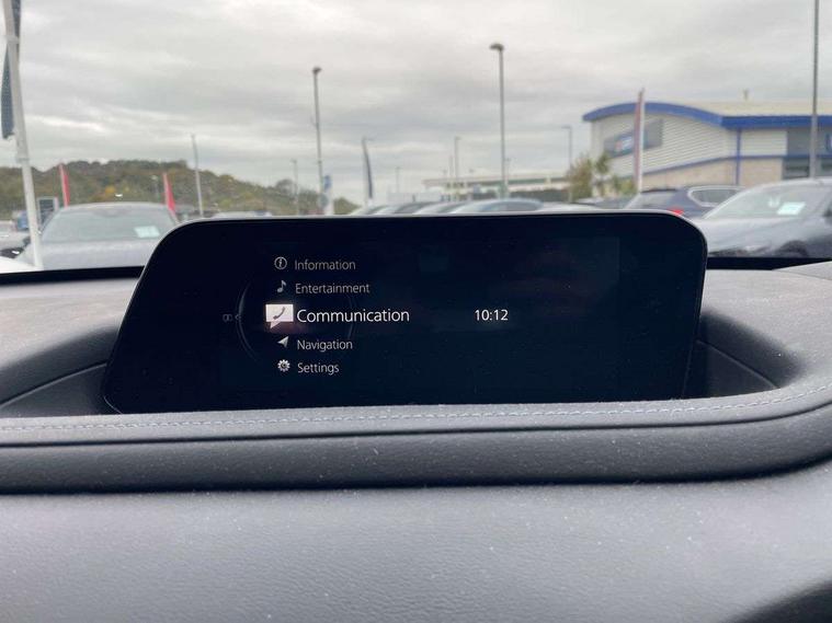7" TFT Colour driver instrument panel display, 8.8" Colour centre touch screen display with Mazda Connect infotainment, Adaptive cruise control (Mazda radar cruise control), Apple car play/Android Auto, Blind spot monitoring with rear cross traffic alert, Driver attention alert system, E-call with GPS, Emergency stop signalling system, Engine start/stop button, Front and rear parking sensors, Integrated bluetooth, Integrated Mazda navigation system, Intelligent speed assist, Lane keep assist system (LAS) with Lane departure warning system (LDWS), Mazda connected services, PAS, Reversing camera, Service indicator, Tailgate, Traffic sign recognition, Trip computer, Windscreen projected colour active driving display (HUD), Cylinder Deactivation, i-stop, 2 USB charging ports in front inner central armrest, AM / FM / DAB radio with 8 speakers, Multimedia Commander including separate volume dial, Steering wheel mounted audio/bluetooth controls, B-pillar and C-pillar garnishes in satin black finish, Auto dimming driver's door mirror, Auto dimming rear view mirror, Auto headlight levelling, Body coloured, electrically adjustable, heated auto power folding door mirrors with integrated indicators, Chrome finish signature wing in front grille, Coming/leaving home lighting function, Dual chrome exhaust, Dusk sensing headlights, Electric front/rear windows with one touch auto up/down, Front kodo turn signal, Gloss black rear roof spoiler, LED headlights with halogen daytime running lights and high beam control, LED rear combination lights, Rain sensing front wipers with adjustable speed and intermittent wipe, Rear fog lights, Rear side wing doors, Rear wiper, Satin black front grille, Third brake light, 12V power outlet in centre console, 3 seat bench in 2nd row, 60/40 split fold down rear seats, Cloth upholstery with interior accents, Dark cloth door panel inserts, Dashboard, door cards and front centre armrest in black cloth, Driver and front passenger visors with covered vanity mirror and driver ticket holder, Driver seat manual slide, recline, height and seat tilt adjust, Driver, front passenger and two rear door storage, Driver, Front passenger and two rear grab handles with coathooks, Dual zone climate control air conditioning with rear air vents, Folding rear centre armrest with two cup holders, Front and rear (x3) head restraints, Front and rear LED lighting, Front armrest, Front centre storage with two cupholders, Front passenger seatback pockets, Front passengers seat manual slide, recline and height adjustment, Gear shift indicator, Glovebox illumination, Heated front seats with 3 stage setting, ISOFIX child seat anchorage points attached on outer rear seats, Leather wrapped gear shift knob, Leather wrapped steering wheel with telescopic and tilt adjustment, LED luggage compartment lighting, Light roof headlining and pillars, Roof mounted sunglasses holder, Single front passenger seat, 3 point ELR front seat belts x2 with pretensioners, 3 point ELR rear seat belts, Anti-lock braking system (ABS), Drivers knee airbag, DSC - Dynamic Stability Control, Electronic parking brake with auto disengage function and auto hold function, Front and rear curtain airbags, Front dual stage driver and single stage front passenger airbags, Front passenger airbag cut-off switch, Front side airbags, Front smart city brake support, G-Vectoring control plus, Hill launch assist, Manual child lock in rear doors, Mild Hybrid system with regenerative braking, Seatbelt reminder for driver/front passenger and rear seats, Traction control system (TCS), Tyre pressure monitoring system (TPMS), Remote central locking with deadlocking and automatic door lock when driving, Smart keyless entry, Thatcham accredited alarm and immobiliser, 16" Grey alloy wheels, Emergency tyre repair kit,