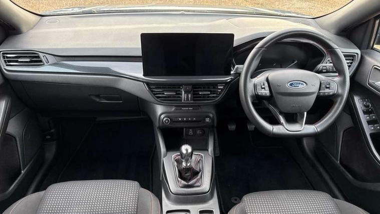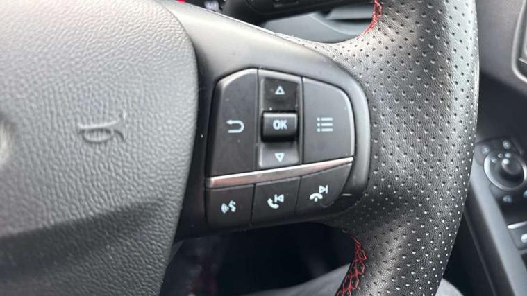4.2" Colour TFT Ice blue illumination analogue cluster with trip computer, Bluetooth system, Digital clock, Easy fuel capless refuelling system, Eco mode, Ford SYNC 4 Navigation with 13.2'' touchscreen, DAB radio, Emergency Assistance, Apple Carplay & Android Auto, 6 speakers & FordPass Connect, Lane keeping system - lane keeping alert and lane keeping aid, PAS, Rev counter, Selectable drive mode, Service interval indicator, Sports tuned suspension, 2 USB ports, Auto headlamps (on/off), Body coloured door handles, Electrically operated front and rear windows with one touch opening and closing, Electrically operated heated power fold door mirrors with puddle lamp with side indicators, Front variable intermittent wipers with electric wash, Full fixed LED headlamps, Heated rear window, LED daytime running lamp, LED rear lamps, LED third brake light, Polished twin tailpipe, Privacy glass, Quickclear heated windscreen, Rain sensor, Rear side wing doors, Tailgate wash/wipe, Unique ST-Line grille, full bodystyling kit, and large body coloured rear spoiler, 3 rear headrests, 3 seat bench in 2nd row, Cloth upholstery, Dual zone electronic air temperature control, Height adjustable front headrests, Isofix child seat preparation, Reach + rake adjustable steering column, Single front passenger seat, 3x3 point rear seatbelts, ABS+Electronic Brake force Distribution, Auto hold function, Driver airbag, EDL traction control, Electronic parking brake, Electronic stability control, Front and rear seatbelt reminder, Front inertia reel height adjustable seatbelts with pre-tensioners, Front passenger airbag, Front side airbags, Passenger airbag deactivate switch, Post collision braking, Pre collision assist with autonomous emergency braking and pedestrian/cyclist detection, Remote/power child rear door locks, Side curtain airbags, Three rear inertia reel lap/diagonal seatbelts, Tyre pressure monitoring system, Keyless entry and keyless start, MyKey system, Remote central locking & engine immobiliser, Thatcham alarm with power door dead locks, 17" 5 spoke Rock mettalic finish alloy wheels with mini spare wheel,