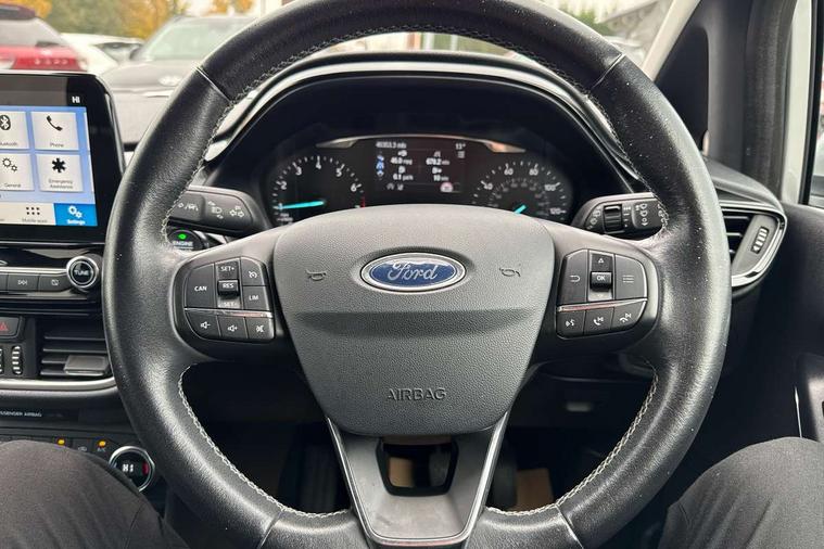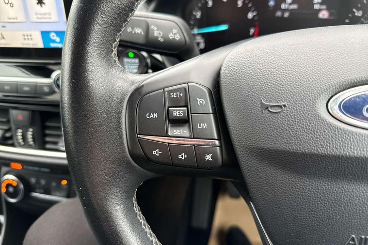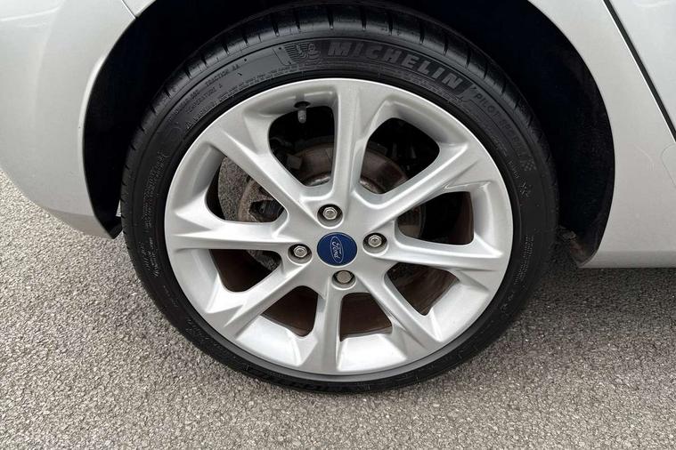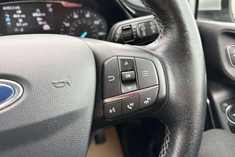 Bluetooth system, Driver alert system, Electric power steering, Ford SYNC 3 nav system, apple car play and android auto with voice control, Lane keep assist, SYNC Emergency Assistance, Traffic sign recognition, Trip computer, Auxiliary input socket, DAB with voice control, Steering wheel mounted controls, USB connection, Auto dimming rear view mirror, Auto high beam, Automatic headlights, Body colour bumpers, Body colour door handles, Body colour electric adjustable heated door mirrors, Body colour rear spoiler, Chrome beltline trim, Cornering front fog lights, Electric folding door mirrors with puddle lamps, Electric front windows/one touch facility, LED daytime running lights, LED rear lights, Privacy glass, Quickclear heated windscreen, Rear wiper, Tinted glass, Upper front grille chrome surround, 12V Accessory socket in centre console, 3 spoke leather steering wheel, 60/40 split folding rear seat, Adjustable head restraints, Air conditioning + Electric Auto Temperature Control (EATC), Ambient lighting, Boot carpet, Centre console with armrest, Chrome inner door handles, Cloth upholstery, Footwell illumination, Front and rear velour floor mats, Front map reading lights, Front seat and rear pockets, Illuminated cup holders, Illuminated glovebox, Leather gear knob, Leather trimmed handbrake handle, Load area light, Luxury woven headliner, Overhead console with sunglasses holder, Pollen filter, Rake/reach adjustable steering wheel, Rear centre head restraint, 3 point seatbelts on all rear seats, ABS+EBA, Curtain airbags, Driver and passenger airbags, Drivers knee airbag, ESP + traction control, Front passenger airbag deactivation, Front side airbags, Hill start assist, Seatbelt warning, Tyre pressure monitoring system, Immobiliser, MyKey system, Remote central locking, Thatcham Cat.1 alarm,