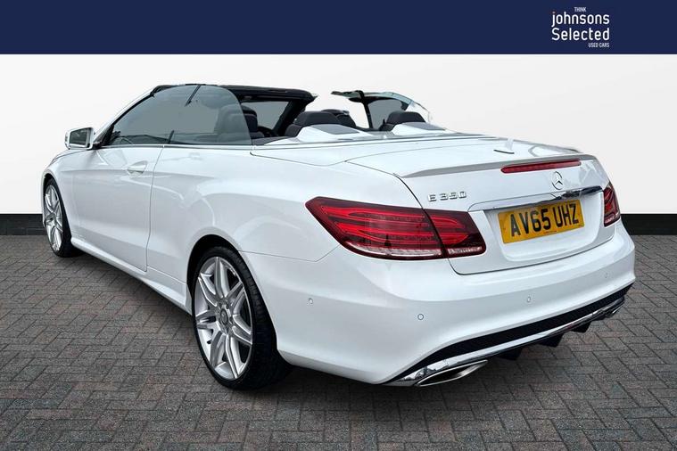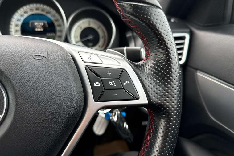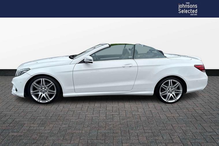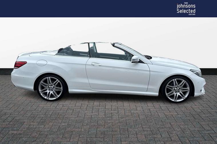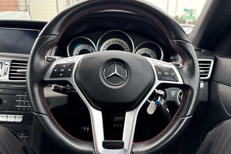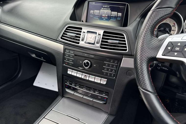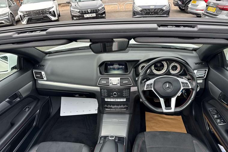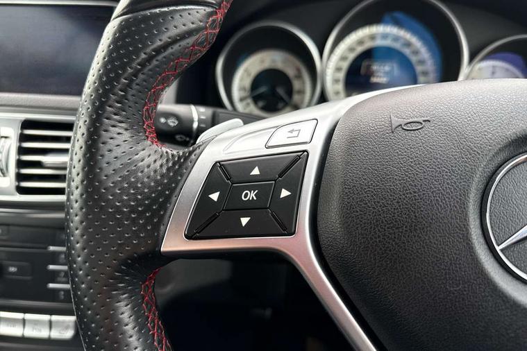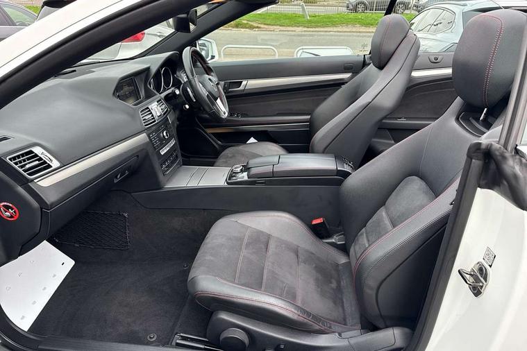 Active park assist with parktronic system, Attention assist, Bluetooth interface for hands free telephone, Collision prevention assist plus, COMAND HDD navigation with CD/DVD/Radio, media interface, linguatronic, 10GB music register, SD card slot + online, Direct steering, Front and rear parking sensors, On board computer, Outside temperature display, Service indicator (ASSYST PLUS), Speed sensitive power steering, Agility control sports suspension with selective damping system, Diesel particulate filter, Auxiliary input socket, DAB Digital radio, USB/aux-in in centre console, AMG bodystyling, Automatic rain sensing wipers, Body coloured bumpers, Body coloured door handles and locks, Chrome window highlights, Electric front/rear windows with one touch/auto up/down, Electric heated + adjustable door mirrors, Electric soft-top with auto roll-over bar, Green tinted glass, Heated windscreen wash system, LED daytime running lights, Twin Trapezoidal tailpipes, Wind deflector, AMG floormats, Black roof lining, Centre armrest and door handle illumination, Centre rear armrest with through load facility, Child seat recognition sensor, Door sill panels with stainless steel inlays, Dual zone automatic climate control, Easy entry seats, Front centre armrest with storage compartment, Front door pockets, Front footwell lights, Front head restraints, Front seat back map pockets, Heated front seats, Height/reach adjust steering wheel, Integrated rear head restraints, Interior rear light/integral reading lights, Isofix rear child seat fastenings, Multi function steering wheel, Partial electric front seats/backrest/height adjust, Rear centre armrest with 2 cupholders + storage, Sports pedals with stainless steel surfaces and rubber studs, Steering wheel gearshift paddles, Stowage compartment with 12V socket, Sunvisors with illuminated vanity mirrors, Twin front cupholders, Intelligent light system pack - E Class, Mirror pack - E Class, ABS + BAS, Active bonnet, Adaptive brake system, Adaptive driver and front passenger airbags, Drivers knee airbag, ESP with ASR, Front seatbelt pretensioners, Front side airbags, Pre-Safe anticipatory safety system, Sports braking system, Tyre pressure monitoring system, Warning triangle and first aid kit, Window airbags, Alarm system/interior protection/immobiliser, Locking wheel bolts, Remote central locking, Tirefit sealant with electric air pump,