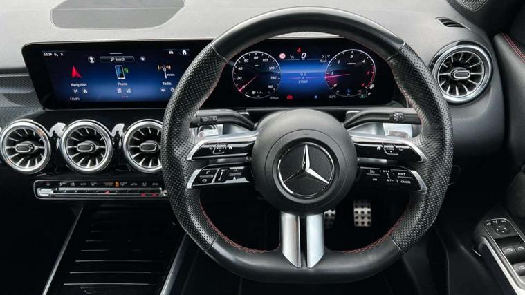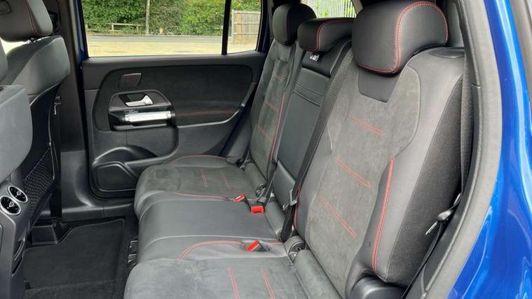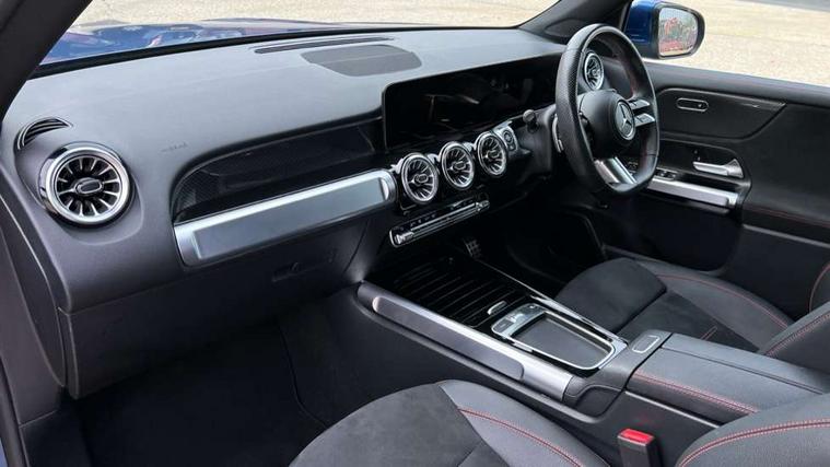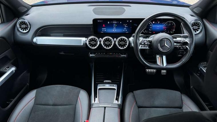 10.25 inch touchscreen central media display, 10.25" Digital instrument cluster display screen, 12 ultrasonic sensors in front and rear bumpers, 180 degree reversing camera with parking guidelines, Additional drive program "OFF-ROAD", Assisted parking: reversing backwards into perpendicular and parallel parking spaces, Attention assist - Monitors steering behaviour and long journey fatigue, Blind spot assist, Bluetooth connection, Brake pad wear indicator warning light, Car wash mode, Convenience opening and closing, Direct steering, DYNAMIC SELECT with a choice of driving modes (ECO, Comfort, Sport and Individual), ECO start/stop function, Engine start/stop button, Exit warning function, Fluid level warning indicator for fuel, oil, coolant and washer fluid, Hard disk navigation, Hey Mercedes Voice activation, Lamp failure indicator, Lane keep assist, MBUX augmented reality for navigation, MBUX navigation premium, Mercedes me connect including emergency call system, accident recovery, breakdown management and maintenance, Mercedes me remote services, Outside temperature gauge, Owners manual and service booklet in English, Pre-installation of private car share, Preinstallation for parking damage notification, Radio aerial integrated into front and rear windshields, Remote boot closing, Service indicator (ASSYST), Smartphone integration with Apple CarPlay and Android auto, Speed limit assist, Trip computer in multifunction display with current consumption indicator, Ultrasound sensors - positioned in the handle of the tailgate, Wireless charging, Comfort suspension with ride height lowering, Rear axle multi-link, 1 USB-C port in the oddments compartment (Charge + Data transfer), 2 USB-C ports for the rear on the centre armrest (Charge only), 2 USB-C ports under the front centre armrest (Charge + Data transfer), DAB digital radio tuner, MBUX multimedia system, Mercedes Benz sound system (225 W) with 10 speakers, 1 central speaker, speakers on doors, a tweeter on door, one sub woofer + boost amplifier, Pre installation for Mercedes Benz Link, Adaptive brake lights, Adaptive high beam assist, Air vents with silver chrome surrounds, AMG front apron with front splitter in the colour of the vehicle with chrome trim element, AMG rear apron with visible tailpipe trim and chrome trim element, AMG specific/dual flow exhaust pipes in chrome (non-functional), Auto dimming rear view mirror, Beltline trim and window line trim strip in high gloss aluminium, Black grained side sill trim with chrome inlay, Body coloured door handles, Electric adjustable and heated door mirrors with integrated LED side indicators, Electric folding door mirrors, Front and rear electric windows, Headlamp assist automatic headlamp activation, Heat insulating dark-tinted glass starting from B-pillar, Heated glass rear windscreen + timer control, High level LED third brake light, Illuminated door sill panels with Mercedes-Benz lettering, Interior mirror with black reading lamps and frameless, LED high performance headlamps with integrated LED daytime running lights, LED tail lamp, Polished aluminium roof rails, Radiator grille as a diamond grille with chrome pins and central Mercedes star, Rain sensor windscreen wipers, Rear fog lamp, Rear side wing doors, Rear wiper, Single louvre in matt grey with chrome inserts and black highlights, Two visible tailpipe trim elements exhaust, Ultrasonic sensors - positioned in the front and rear bumpers, Wheel arch liners in the colour of the vehicle, 12V socket in the oddments compartment, 3 seat bench in 2nd row, 3 twin spoke flattened multifunction steering wheel in nappa leather - horizontal twin spoke in high gloss black, vertical twin spoke in silver chrome, 4 way adjustable lumbar support, 40:20:40 split folding rear seats, Air conditioning - Two zone thermotronic luxury automatic climate control with display, AMG floor mats, AMG sports pedals with brushed stainless steel surfaces and black rubber studs, Automatic child seat recognition sensor, Black roof lining, Door handles with chrome inserts, Fluorescent jacket, Front and rear headrests, Front centre armrest with stowage, Galvanised steering wheel gearshift paddles in silver chrome, Handle recess lighting, Heated front seats, Height adjustable head restraints, Height/reach adjustable steering column, Interior lighting - 64 colour Ambient lighting, Luggage net on driver/front passenger seat backrest, Single front passenger seat, Sports seats, Stowage compartment with retractable cover, Sun visors with illuminated vanity mirrors, Third row of seats for two people on rear seat, Twin front cup holders, Two outer rear seat isofix and top tether child seat fixing points, Easy pack tailgate, Interior lighting with light and sight pack - GLB, Seat comfort package - GLB, 3 rear 3 point seatbelts, Active bonnet pedestrain safety measure which detects an impact and raises bonnet by 65mm, Active brake assist includes forward collision warning system with autonomous braking, Adaptive brake assist with hold function and hill start assist, Airbags - kneebag for driver, Anti-lock braking system (ABS) with brake assist, Black seatbelts, Bonnet with power domes, Childproof locks manually operated for rear doors and electrically operated for rear power windows, Crash responsive emergency lighting, Curve dynamic assist, Downhill speed regulation (DSR), Driver and front passenger head and sidebags, Driver and front passenger windowbags, Dual stage driver and front passenger airbags, Electric parking brake, Electronic stability programme with acceleration skid control, Front and rear seatbelt reminder, Front brake callipers with Mercedes Benz lettering, Front passenger seat occupancy sensor, Perforated front brake discs, Tyre pressure monitoring system, Warning triangle and first aid kit, Guard 360 degree vehicle protection - Anti theft alarm system, tow away protection with visual, acoustic warning and alarm, Interior monitoring system, KEYLESS GO acce
