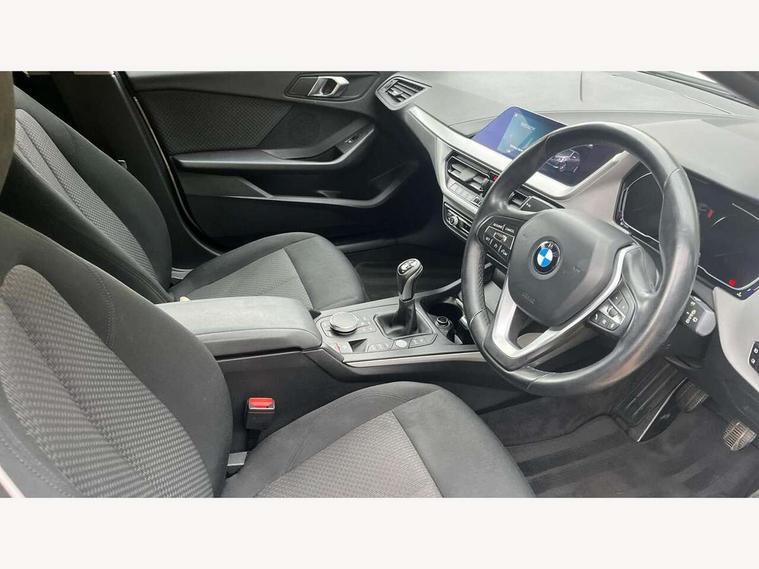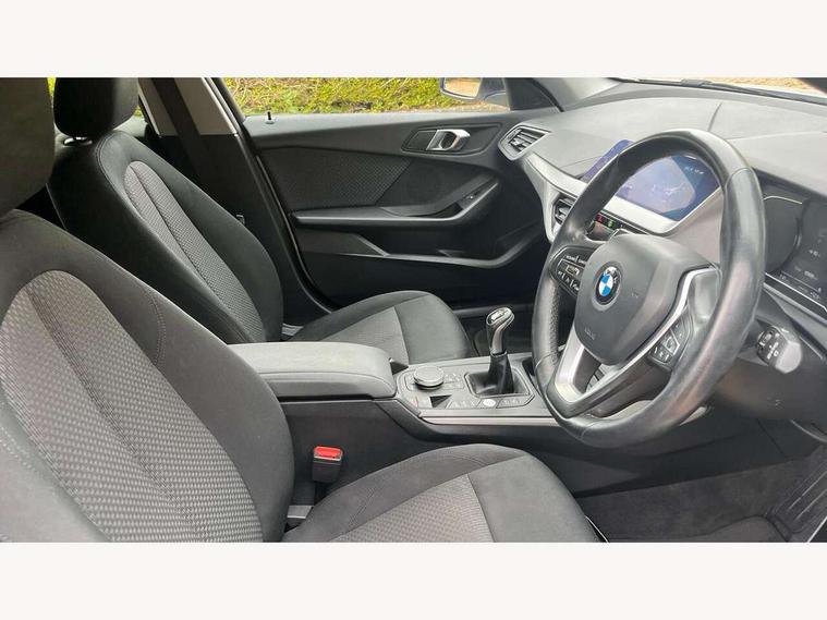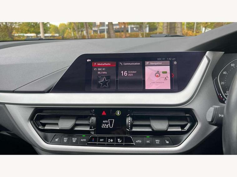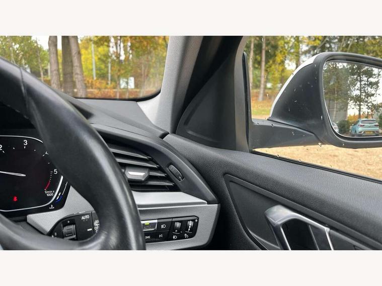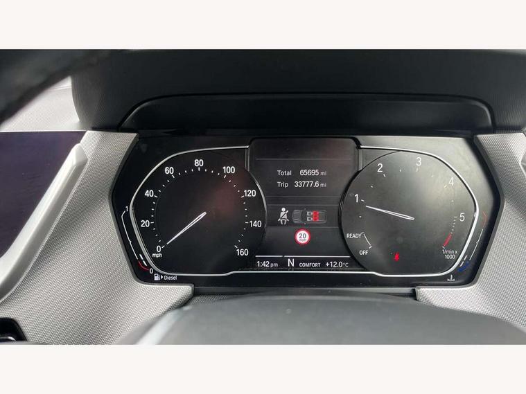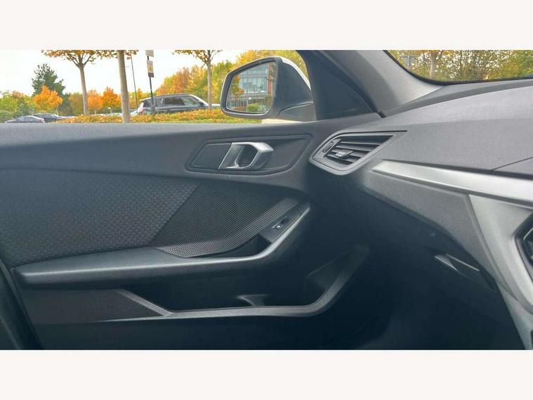 Active guard plus, Attentiveness assist, BMW Online services, BMW Teleservices, Check Control warning system for monitoring of lights and door/luggage compartment open warning, Connected eDrive Services, Cruise control with brake assist, Eco pro mode, Electric power steering, Front/rear Parking distance control, Integrated owners handbook, On board computer, Optimum shift indicator, Personal Profile, Pull away assistant, Speed limiter, Anti roll bar front and rear, Balancer shaft, Diesel particulate filter, Drive Performance Control, Electronic differential lock, Bluetooth audio streaming, DAB Digital radio, Auto dimming rear view mirror, Body colour door handles, Body colour front and rear bumpers, Body colour mirror caps, Chrome exhaust tailpipe in single, round (Exhaust tailpipe, stainless steel - single, round), Chrome kidney grille with extra wide black, high gloss black vertical slats, Direction indicator side lights in exterior mirrors, Fading support, Follow me home headlights, Front and rear bumper system with replaceable deformation elements, Front and rear electric windows with open and close fingertip control, anti trap facility and comfort closing, Front door sill finishers in black plastic with BMW designation, Green tinted heat protection glazing, Headlight beam throw control, Heated, electrically adjustable exterior mirror aspheric on driver side, convex on passenger side, High level third brake light, LED daytime running lights, LED front fog lights, Lightweight engineering, Matt black air guide grilles, Matt black roof moulding, B pillar finisher and wheel arch trim, Matt black window frame, Model designation on right side of tailgate, Nearside reverse light in rear light cluster, Rain sensor including auto headlights activation, Rear fog lights, Rear window wiper, Shark fin antenna, Visible VIN plate, Welcome lighting, Windscreen wipers with integrated washing jets, 12V power socket in centre console, 2 cupholders in front centre console, 3 rear seat head restraints, 3 spoke sports leather steering wheel in pearl Chrome, Automatic single zone air conditioning, Bag hook in luggage compartment, Child seat ISOFIX attachment for two outer rear seats and front passenger seat with anchorage points, Conditioned based service, Driver side folding compartment in instrument panel, Folding rear clothes hook, Folding rear seats, Four grab handles integrated in roof lining, Front and rear door pockets, Front and rear side armrest integrated into door trim, Front armrest foldable with integrated storage compartment, Glove compartment, Height adjustable front head restraints, Manual adjust steering wheel, Multi-function controls for steering wheel, Rear seat backrest with manual 60:40 split folding with 3 top tether clips integrated on rear of seat panels, Storage compartment in centre console, Sun visors with vanity mirrors and insert tab, Two extra lashing eyes in luggage compartment, Velour floor mats, Extended storage pack - 1 Series, Interior lights pack - 1 Series, 2 tone horn, 3 point seatbelts on all seats, front pyrotechnic belt tensioners, stopper and belt force limiters, rear coded belt buckles, Airbags - Front driver and passenger, front and rear head, front side, curtain head protection, Anti lock braking system (ABS) with brake assist, BMW emergency call, Brake drying, Braking readiness, Crash sensor activating central locking release, hazard warning lights, fuel cut off, interior lighting + activation of safety battery terminal clamp, Driver and front passenger seat belt security check, Dynamic stability control + (DSC+), Dynamic Traction Control - DTC, Electrically operated hand brake, Front passenger manual airbag deactivation, Rear child proof door locks, Seatbelt warning, Side impact protection, Tyre pressure monitoring system, Warning triangle and first aid kit, Automatic drive away locking facility, Central locking switch for all doors, fuel filler cap and luggage compartment, Deadlocking function system to all doors, Incorrect fuel protection system, Locking wheel bolts, Remote central locking with two Integrate key, one button for opening and closing all lock, open and close window, button for open luggage compartment, Start/stop button with comfort go keyless engine start and auto start stop deactivation button, Thatcham Cat.1 alarm and immobiliser, Quartz Silver matt interior trim, Reduced rolling resistance tyres,