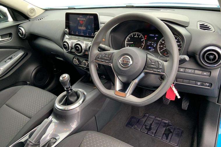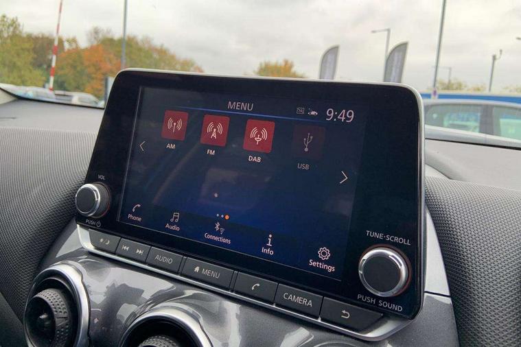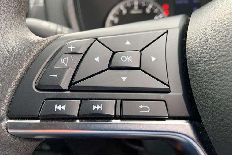 4.2" full colour TFT screen combimeter, Apple CarPlay and Google Android auto, Cruise control + speed limiter, eCall emergency call system, Emergency and breakdown call, Idle start/stop system, Intelligent lane intervention, Lane departure warning system, Nissan connect 8" touch screen entertainment system, Nissan connect services and Wifi connection, Outside temperature sensor, Power Steering, Rear view camera, Traffic sign recognition, Trip computer, Voice recognition, Gasoline particulate filter, 4 speakers, Bluetooth system, USB, Aux-in and 12V socket, DAB Digital radio, Automatic hazard signal with emergency stop signal, Body colour bumpers, Body colour door handles, Electrically adjustable door mirrors with integrated indicators, Follow me home headlights, Front and rear electric window with one touch driver window, High beam assist, LED daytime running lights, LED headlamps, LED rear fog lamp, LED rear lamps, Manual dimming interior rear view mirror, Pearl black door mirrors, Rear side wing doors, Rear wiper, Three blink turn signal, 3 height adjustable rear headrests, 3 seat bench in 2nd row, 60/40 split folding rear seat, Cloth upholstery, Driver and passenger sliding and reclining seats, Driver/passenger sunvisors and vanity mirrors, Front and rear cabin lights, Front door pockets with bottle holders, Front head restraints, Height adjustable driver's seat, Internal chrome door handles, Luggage space lighting, Monoform sporty seats, Multifunction steering wheel, Rear door bottle holders, Single front passenger seat, Telescopic steering wheel adjustment, Two cupholders in front centre console, Two rear isofix child seat anchorage points with top tether, Welcome light and console tray ambient lighting, ABS with EBD and brake assist, Active ride control, Active Trace Control, Driver and passenger airbags, Driver and passenger side airbags, Electronic Stability Programme (ESP), Front and rear curtain airbags, Height adjustable seatbelts, Hill start assist, Intelligent emergency braking with pedestrian and cyclist recognition, Rear door child safety locks, Rear drum brakes, Seatbelt reminder for driver/front passenger and rear seats, Single tone horn, Three 3 point rear seatbelts, Traction control, Tyre pressure monitoring system, VDC Dynamic Vehicle Control, Alarm, Immobiliser, Remote central locking, 17" Sakura Flex wheels,