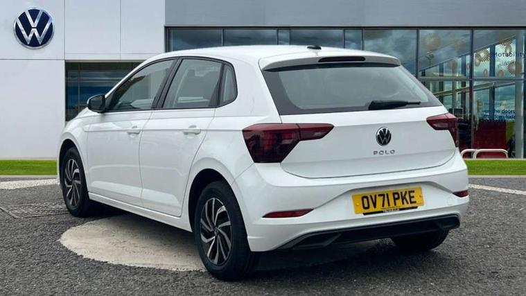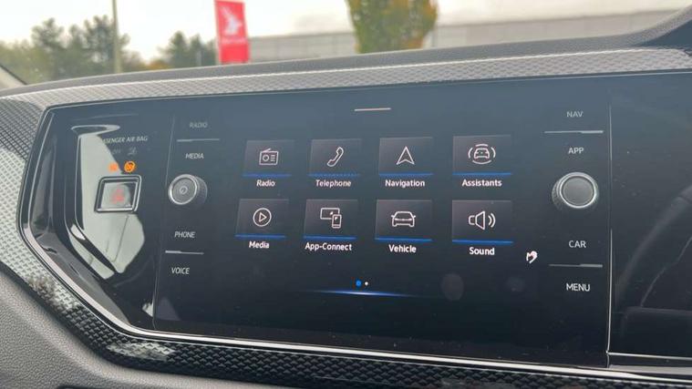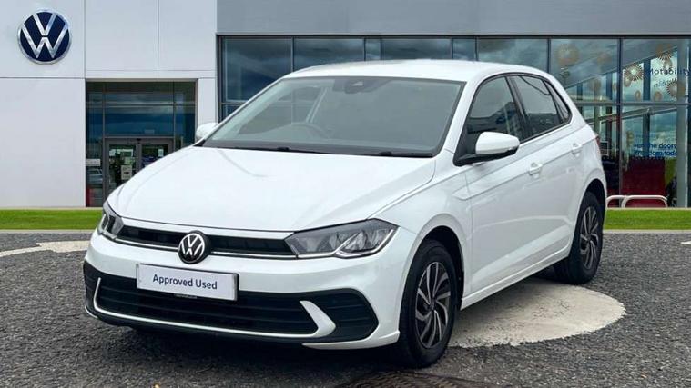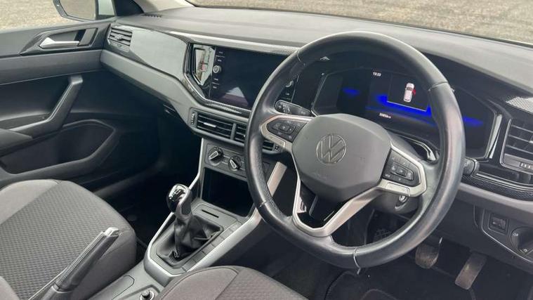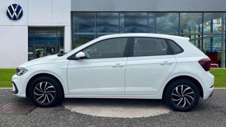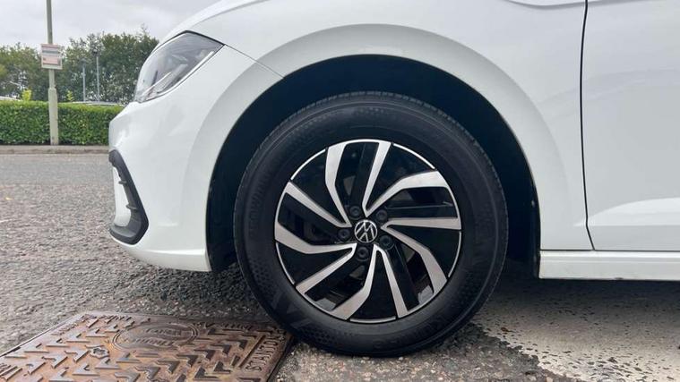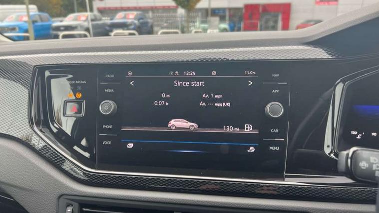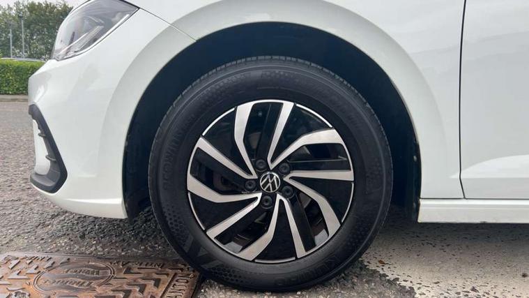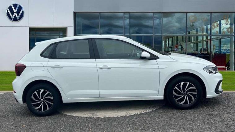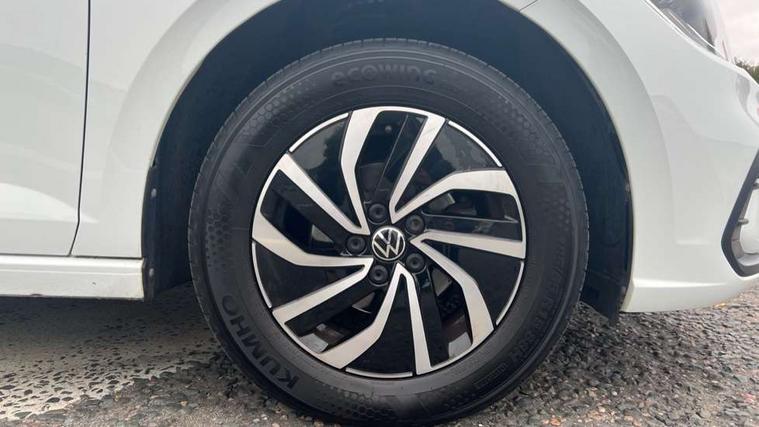 Adaptive cruise control without follow-to-stop and speed limiter, Bluetooth mobile phone interface, Driver alert system, Emergency call service, Front assist system, Power assisted speed sensitive steering, Preparation for We connect and We connect plus, Speedo and rev counter, electronic odometer, trip, service interval display and fuel gauge, Standard rear axle, Travel Assist - Lane keeping system and traffic jam assist, Travel assist including emergency assist, Trip computer, Warning signal and warning light for front and rear seatbelts not fastened, Washer fluid level indicator, Wireless app connect, Front wheel drive, Rear shock absorpion, Start-stop system with battery regeneration (recuperation - energy recovery during braking), DAB Digital radio, Diversity antenna for FM reception, Automatic dimming interior rear view mirror, Body colour bumpers, Body colour door handles, Body colour door mirrors, Electric front windows, Heat insulating darkened glass in side and rear windows, Heat insulating glass windscreen, Power folding adjustable/heated exterior mirrors and front passenger exterior mirror lowering function, Rain sensor, Rear electric windows, Rear fog light, Rear windscreen washer and wiper with interval delay, Third brake light, 12V power socket in centre console, 2 front and 2 rear reading lights, 2 USB-C ports in the front, 2 USB-C charging sockets on the center console in the rear, 3 rear head restraints, 60/40 split folding rear seat and rear seat bench not split, Ceramique headliner, Chrome plated radiator grille inserts, air vent surrounds and light switch surrounds, Door and side trim panel, Driver and front passenger seat height adjustment, Driver/passenger sunvisors with illuminated vanity mirrors, Front centre armrest, Front seat backrest storage pockets, Front standard seats, Handbrake lever handle in leather, Hartley/Thomas cloth upholstery, Isofix child seat preparation easy-fit (for two outer rear seats, and front passenger seat) compatible with I-size, Leather trimmed gear knob, Luggage compartment cover, Luggage compartment floor, Luggage compartment lighting, Multifunction steering wheel, Standard pedal cluster, Light and vision pack - Polo, 3 point height adj front seatbelts + pretensioners, 3x3 point rear seatbelts, ABS, Driver and front passenger airbag with front passenger airbag deactivation, Drivers and front passengers safety optimised head restraints, ESC (Electronic stability control) + EDL (Electronic Differntial lock) and ASR (Traction control), Extended and predictive pedestrian/ cyclist protection, Front curtain and side airbags with center airbag, Front disc brakes, Hill hold control, Rear drum brakes, Single tone horn, Tyre pressure loss indicator, Alarm with interior protection, Anti-theft alarm system with interior monitoring, backup horn, and towing protection, Anti-theft wheel bolts, Electronic engine immobiliser, Lava stone black gloss/matt decorative inserts in dash and front door panels, Low rolling resistance tyres,