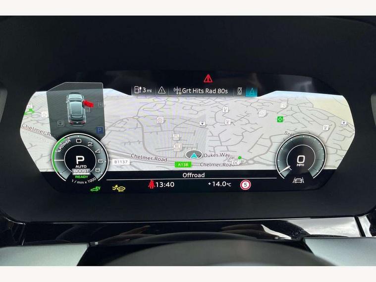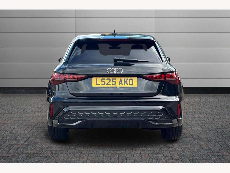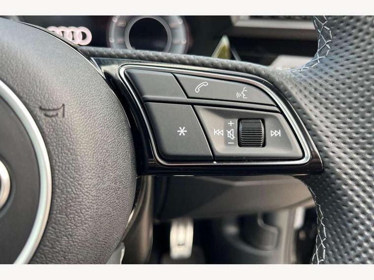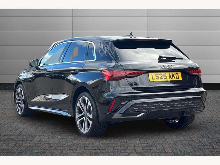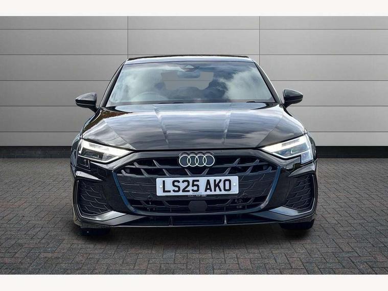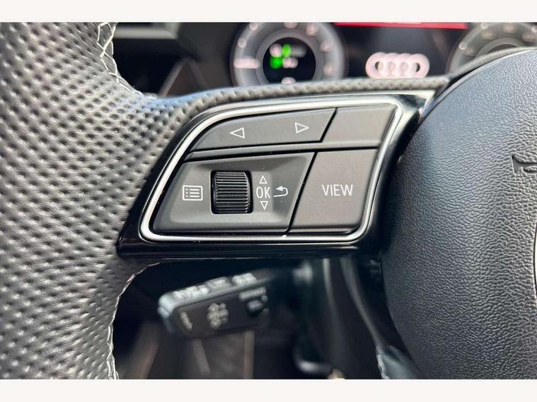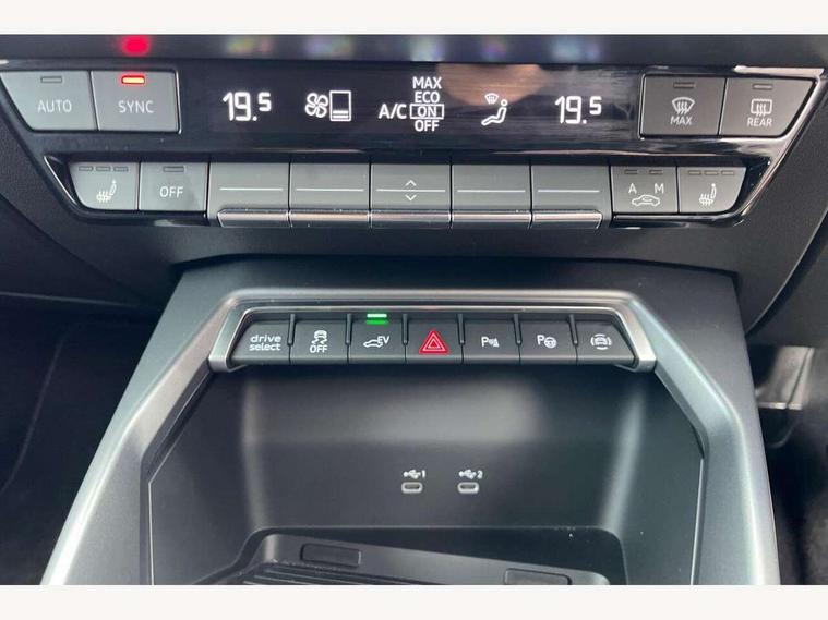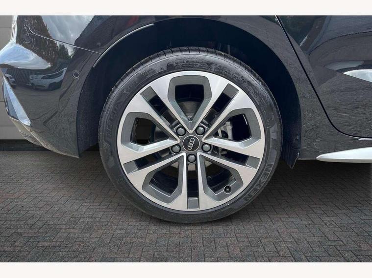 Adjustable speed limiter, Audi drive select, Audi smartphone interface with app store includes wireless Apple carplay, Android auto and Amazon alexa integration, Audi virtual cockpit plus - 12.3" full HD resolution dynamic digital instrument cluster, Automatic start/stop system with recuperation, Bluetooth interface, Camera based traffic sign recognition, Collision avoidance assistant, Cruise control, Distraction and Fatigue warning, e-Call (emergency call), Electromechanical power speed sensitive steering, Lane departure warning system, MMI Navigation Plus with high resolution 10.1" colour touch screen display, Park Assist with parking system Plus, Service indicator, Trip computer, Voice control system with natural language interaction, 3 pin 10 amp domestic charging cable, CCS socket for DC charging, Charging cable for public charging, mode 3 (type 2), up to 22 kW (AC), Compact charging system, Industrial connector CEE 32 A, 230 V, length 1.6 m, Standard suspension, Type 2 socket for AC charging, Audi Phonebox light with wireless charging, Audi sound system - 10 loudspeakers including centre loudspeaker and subwoofer, DAB Digital radio, USB ports with charging function in the rear, Acoustic glass windscreen, Aluminium window trim, Auto dimming frameless rear view mirror, Body colour exterior mirrors, Chrome exhaust tailpipes, Electrically adjustable/heated/folding/auto dimming door mirrors with integrated LED indications + kerb view function for passenger side, Exterior model badging, Front and rear side air inlets in grained matt black with dark liquid chrome frame, Front electric windows, Front radiator grill in high gloss dark chrome, Heat insulating glass windscreen, Illuminated door sills with aluminium inserts at the front with S logo, LED 3rd brake light, LED daytime running lights, LED headlights with LED rear lights and dynamic rear indicators, Light and rain sensors, Privacy glass - dark tinted rear window, rear door and side windows, Rear diffuser and grill in grained matt black with inlay in dark liquid chrome, Rear electric windows, Rear side wing doors, Rear wiper, S line bumpers, S roof spoiler, Side S line emblems on front wings, Side sill trim in dark liquid chrome, 12V socket and storage compartment in front centre console, 3 seat bench in 2nd row, 3 spoke flat bottomed leather multifunction sport steering wheel with gear shift paddles, 3-zone deluxe automatic air conditioning, 4 way electrically adjustable lumbar support for driver and front passenger, 40/20/40 split folding rear seat bench, Black cloth headlining, Convenience auxiliary air conditioning, Front and rear centre armrest in artificial leather, Front and rear centre armrest in artificial leather with contrasting stitching on armrests and instrument panel, Front and rear headrests, Front/rear floor mats, Heated front seats, Height and reach adjustable steering wheel, Manual boot compartment lid, Manually adjustable front seats, Rear cup holders, S badging on the steering wheel, Seat side bolsters, Single front passenger seat, Stainless steel pedals and front footrest in black, Twin leather upholstery with front sports seats S embossed logo, Aluminium interior elements pack - A3 Sportback, Multi-coloured LED interior lighting package - A3, 3x3 point rear seat belts, Acoustic vehicle alerting system, Driver and front passenger airbag with passenger airbag deactivation, Electronic Stabilisation Control (ESC) including ABS, ASR and EDL, First aid kit with warning triangle and 2 safety vests, Front side airbags with head airbags and interaction airbag, Hill hold assist, Pre-sense front with pedestrian and cyclist detection, Seatbelt monitoring, Tyre pressure loss indicator, Anti theft alarm, Anti-theft wheel bolts, Electronically operated child locks, Immobiliser, Remote central locking with safelock, Dash & door Inlay in dark aluminium Spectrum, Tyre repair kit,