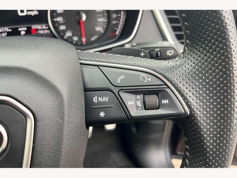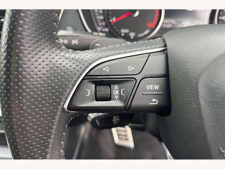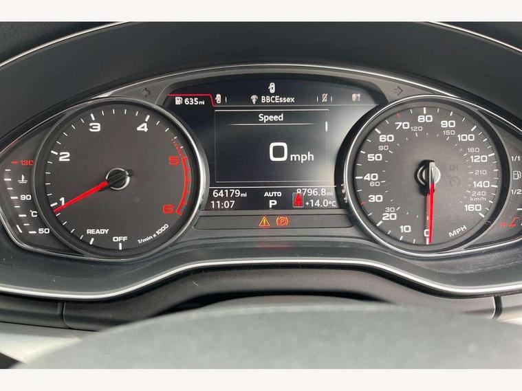 Audi connect, Audi drive select, Audi smartphone interface, Driver information centre with colour display in instrument panel, Electric power steering, Power tailgate, Remote electric boot opening/closing, SD card based MMI navigation, Service interval indicator, Voice control system, Diesel particulate filter, 2 USB ports, Audi sound system, Auxiliary input socket, CD player, DAB Digital radio, MMI radio plus with 7" colour MMI screen and MMI controller, Acoustic windscreen, Aluminium roof rails, Aluminium sill plates, Auto dimming rear view mirror, Black high gloss front air inlet in matt aluminium effect, Body colour bumpers, Body colour door mirrors, Body colour rear diffuser insert, Chrome exhaust tailpipe, Electric headlight adjustment, Electrically adjustable and heated door mirrors, Front and rear electric windows, Front fog lights, Headlight range control, Headlight washers, Honeycomb side air inlet in titan black, Light and rain sensor for auto activation of lights and windscreen wipers, Loading sill protector in stainless steel, Privacy glass with front acoustic glazing, Rear diffuser strip in matt aluminium silver, Rear spoiler, Rear wiper, S Line side skirts, Selenite silver underbody guard, Twilight grey matt radiator grille with matt aluminium horizontal chrome struts, 3 rear headrests, 3 zone climate control, 4 way electric lumbar support for driver and front passenger, 40:20:40 split folding rear bench seat, Black cloth headlining, Front centre armrest with 12v socket, Front sports seats, Front/rear floor mats, Height adjustable driver's seat, Height adjustable front head restraints, Illuminated door sills, Isofix front passenger and rear seat preparation, Jack and tool kit, Load compartment cover, Luggage compartment carpet, Matt selenite silver door inserts, Perforated leather gearknob, Reach + rake adjustable steering column, Removable luggage compartment floor, Removable net partition, Roller blind loadspace cover, Stainless steel pedals, Sunvisors with vanity mirrors, Non Smokers pack, 3 point seatbelts on all seats, ABS, Curtain airbags, Driver and passenger airbags, Driver and passenger side airbags, Electromechanical parking brake, ESC with ASR, ESP, First aid kit, Front passenger airbag deactivation, Hill descent control, Seat belt force limiter, Seatbelt warning lamp, Traction control, Tyre pressure monitor, Warning triangle, Keyless Go access/ignition system, Locking wheel bolts, Remote central locking, Thatcham category 1 alarm + immobiliser, Contrast stitching,