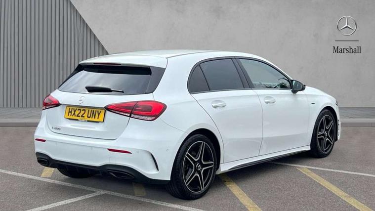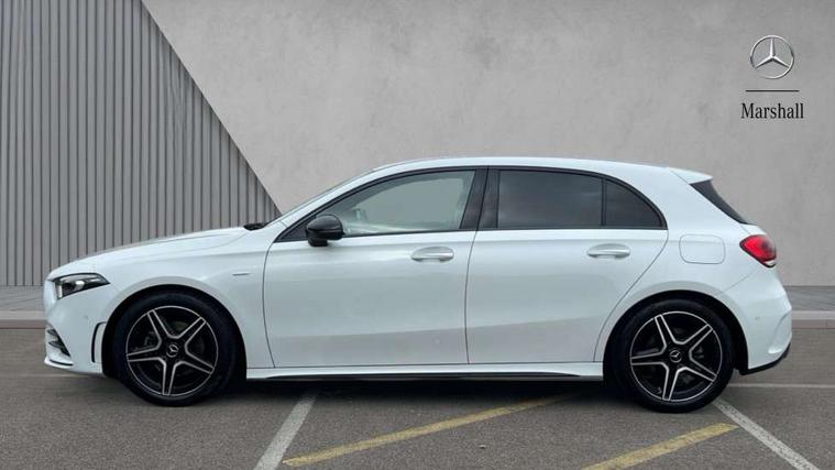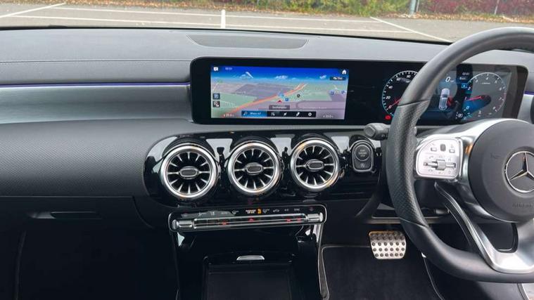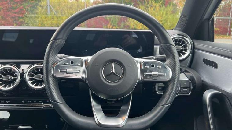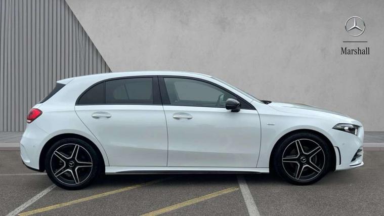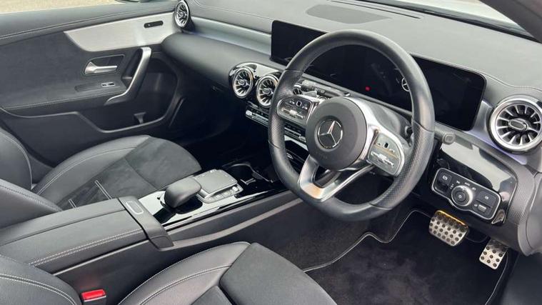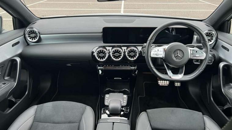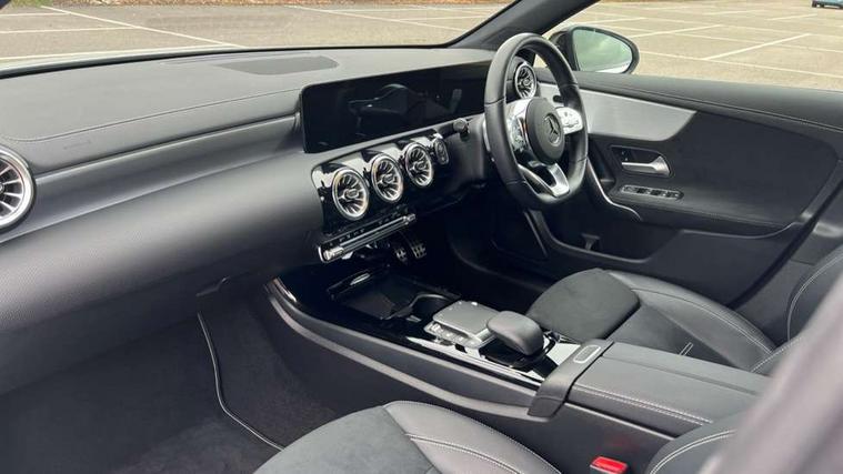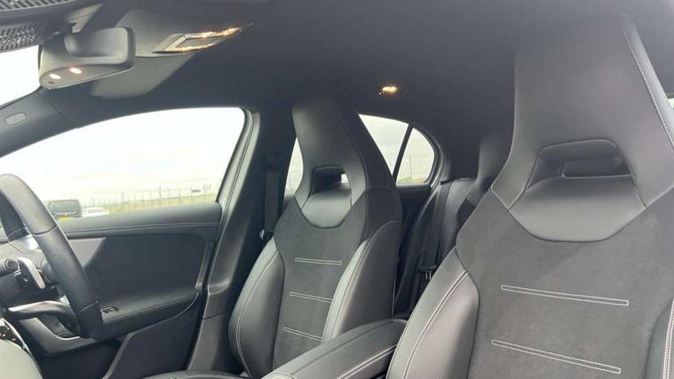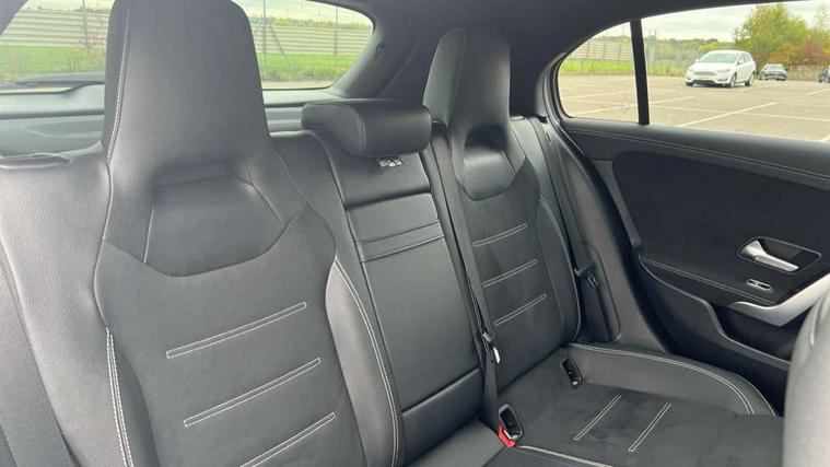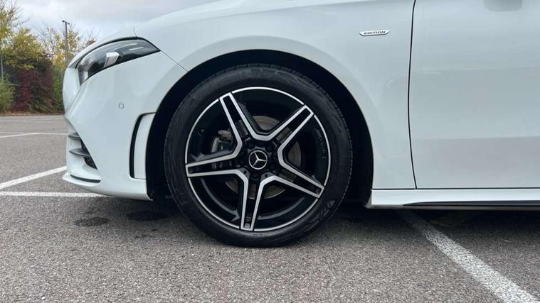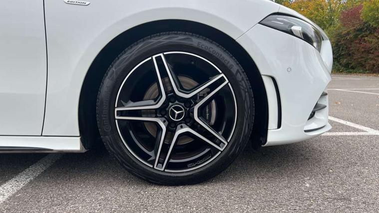 10.25" Digital instrument cluster display screen, 10.25" media display, 180 degree rear view camera with parking guidelines, Active parking assist with visual and audible warning of detected obstacles, Attention assist, Brake pad wear indicator warning light, Car wash mode, Cruise control + speed limiter, Direct steering, Dual bluetooth interfaces, DYNAMIC SELECT with a choice of driving modes (ECO, Comfort, Sport and Individual), ECO start/stop function, Fluid level warning indicator for fuel, oil, coolant and washer fluid, Hard-disk navigation, Hey Mercedes Voice activation, Lamp failure indicator, Lane keeping system, Mercedes me connect including emergency call system, accident recovery, breakdown and maintenance management, Mercedes me remote services, Outside temperature gauge, Owners manual in English, Pre-installation for private car sharing, Preinstallation for Mercedes Benz link, Service indicator (ASSYST), Smartphone integration with Apple CarPlay and Android auto, Speed sensitive power steering, Trip computer, Ultrasonic sensors positioned in the front and rear bumpers, Lowered comfort suspension, Rear axle torsion beam, 10 speakers, 2 USB ports (type C) in rear stowage compartment and one in front of center console, DAB Digital radio, MBUX multimedia system with DAB digital radio and touchpad including satellite navigation, Mercedes-Benz sound system - 100W, 4 Electric Front and Rear windows, Adaptive brake lights, AMG bodystyling - Front apron with splitter in chrome, rear apron with chrome trim and chrome visible trim elements in tailpipe, Automatic headlights, Black weather strip, Body colour bumpers, Body colour door handles, Body colour side skirt, Body coloured door mirrors, Electric adjustable and heated door mirrors with integrated LED side indicators, Exclusive diamond radiator grille, Exhaust system - Twin visible tailpipes in polished stainless steel, Headlamp assist automatic headlamp activation, Heated glass rear windscreen + timer control, High gloss black beltline, LED High level third brake light, LED high performance headlamps with integrated LED daytime running lights, LED tail lamp, Privacy glass, Radio aerial, Rain sensing windscreen wipers with two sensitivity settings, Rear fog lights, Rear side wing doors, Rear wiper, Window line trim strip in high gloss black, 3 seat bench in 2nd row, 3 Spoke flat bottom leather multi function steering wheel with perforated leather in grip area, 40:20:40 split folding rear seats, Artico man-made leather/Microfibre Dinamica upholstery with contrast stitching in light grey, Auto Mercedes-Benz child seat recognition sensor, Black air vents with surround in silver chrome, Black roof lining, Brushed stainless steel sports pedals with rubber studs, Controller on centre console with chrome surround, Floor mats with black top stitching and embroidered edition logo and piping in light grey, Front centre armrest with storage compartment, Front seat backs luggage nets, Front seat cushion length adjustment, Galvanished gear shift paddles on steering wheel, Heated front seats, Height/reach adjustable steering column, Illuminated front door sills with changeable cover, Interior lighting - 64 colour Ambient lighting, Interior mirror with reading lamps in black and frameless, Manual height adjustable front seats, Rear armrest with 2 cupholders, Rear head restraints, Seat occupancy sensor for front passenger seat, Single front passenger seat, Sports seats with integrated headrests, Stowage compartment in centre console with retractable cover, Sunvisors with illuminated vanity mirrors, Touchpad on center console, Twin front cupholders, Two zone thermotronic luxury automatic climate control, Light and sight pack - A Class, Mirror package - A Class, Night pack - A Class Saloon/Hatchback, Seat comfort pack - A Class, 3 rear 3 point seatbelts, ABS with Brake Assist, Active bonnet, Active brake assist includes forward collision warning system with autonomous braking, Adaptive brake assist with hold function and hill start assist, Black seatbelts, Childproof locks manually operated for rear doors and electrically operated for rear power windows, Crash responsive emergency lighting, Driver and passenger head and side airbags, Drivers knee airbag, Dual stage driver/passenger airbags, Electronic parking brake, ESP curve dynamic assist, ESP with ASR, Front and rear seatbelt reminder, Front brake callipers with Mercedes Benz lettering, ISOFIX and top tether child seat fixing points in two outer rear seats, Tyre pressure monitoring system, Warning triangle and first aid kit, Window airbags, Alarm system/interior protection/immobiliser, Keyless entry lock/unlock, Keyless Go, Remote central locking and crash sensor with emergency opening function, Urban guard vehicle protection system with immobiliser and interior protection, Matrix look light longitudinal grain aluminium trim element, 18" AMG 5 twin spoke light alloy wheels aerodynamically optimised painted in black with highsheen finish, Summer tyres, Tirefit sealant kit,