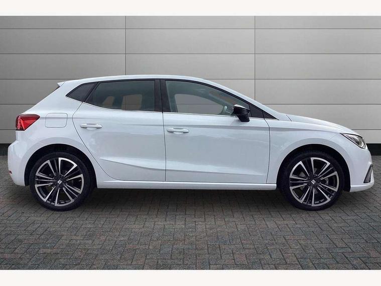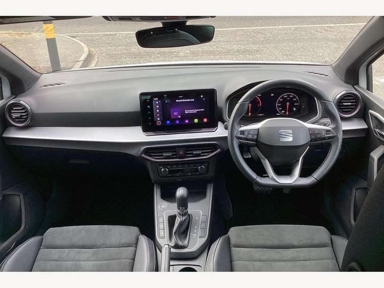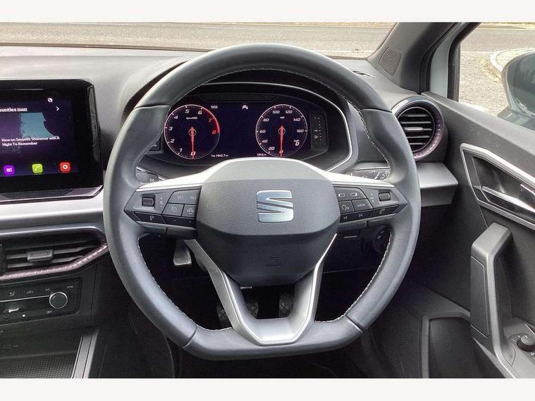 'Lights On' Reminder warning buzzer, 10" Digital cockpit, 9.2" touchscreen navigation system with type C USB socket, Voice control and DAB/AM/FM radio, Auto start and stop system, Bluetooth audio streaming with handsfree system, Digital clock, E-call, Front and rear parking sensors with rear view camera, Full link smartphone integration with mirror link, wireless apple carplay, Google android auto + USB Type C cable for apple and android devices, Lane assist, Low fuel warning light, Outside temperature gauge, Power Steering, Seat connect plus with safety, service, remote and online, SEAT drive profiles and ECO function, SEAT logo boot release, Speed limiter, Traffic sign recognition, Trip computer, Comfort suspension, 6 speakers, Auxiliary input socket, Radio/MP3 player, SD card slot, Steering wheel mounted controls, Anti theft roof antenna, Atom grey door mirrors, Auto dimming rear view mirror, Automatic rain sensing wipers, Body colour bumpers, Body colour door handles, Chrome window surround and upper grille surround, Dark tinted rear windows, Electric adjustable/heated/folding door mirrors, Electric front windows, Electric headlight adjustment, Electric rear windows, Front/rear fog lights, FULL LED automatic headlights with dynamic headlight range control, coming and leaving home, LED daytime running lights, LED 3rd brake light, LED tail lights, Rear side wing doors, Rear wiper, 3 seat bench in 2nd row, 60/40 split folding rear seat, Ambient interior lighting, Chrome detailing and black headlining, Comfort seats, Dual zone climate control with combination filter, Front centre armrest, Front courtesy lights, Front cupholders x 2, Front reading lights, Gear shift indicator, Glovebox, Height adjustable front and rear headrests (five), Height adjustable front seats, Height/reach adjust steering wheel, Illuminated air vent surrounds, Illuminated boot, Instrument lighting with brightness control, Isofix, Leather multifunction flat bottomed sports steering wheel, Microsuede cloth upholstery, Passenger sunvisor, Single front passenger seat, Storage pockets on back of front seats, Sunvisors with mirror and driver side card holder, Safety and driving pack (M) - Ibiza, Safety and driving pack (S) - Ibiza, 3 point seatbelts on all 3 rear seats, ABS, Active front headrests, Child locks on rear doors, Electronic stability control, Energy recovery system, Front driver and passenger side airbags with curtain airbag and front passenger airbag deactivation, Hill hold control, Multi-Collision braking, Seat belt reminder for front and rear seats, Tiredness recognition system, Tyre pressure monitoring system, KESSY Keyless entry and go, Locking wheel bolts, Perimeter alarm and interior monitoring with backup horn and tow away protection, Remote central locking + deadlocks, 18" Dynamic machined alloy wheels in Nuclear grey,
