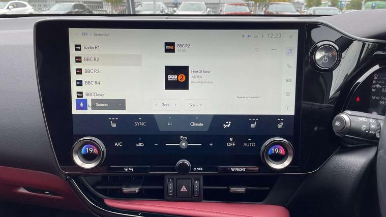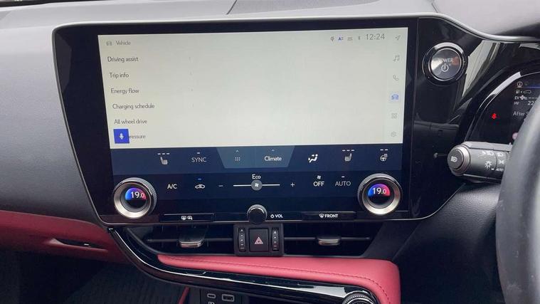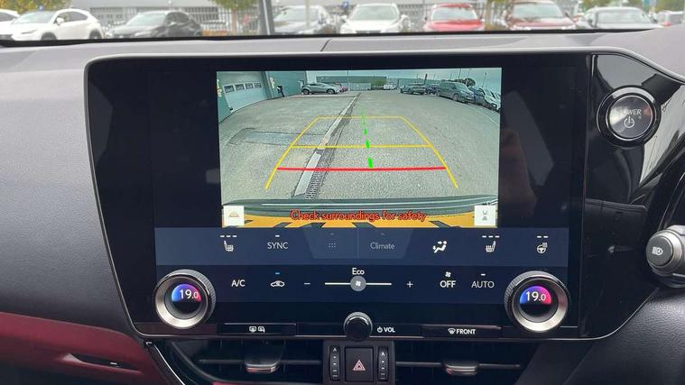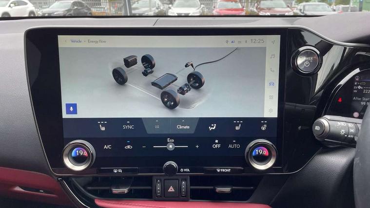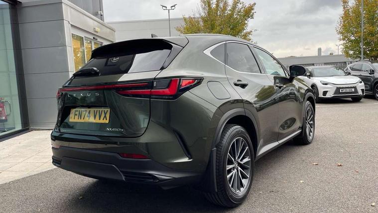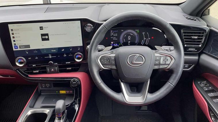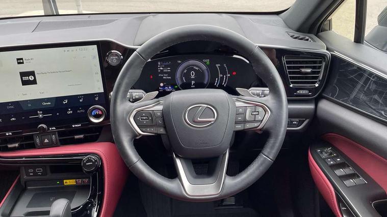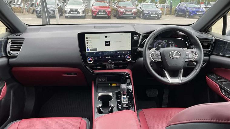 4 driving modes EV/Eco/Normal/Sport, 7" display in instrument binnacle, Blind spot monitoring with rear cross traffic alert, Bluetooth telephone connectivity, eCall emergency system, Electric speed sensitive power steering, Intelligent parking sensors - 4 front and 4 rear, Lane change flasher function, Lexus link connect - Cloud based navigation, cloud based voice assistant, always online and 9.8" VGA touchscreen, Push button starter, Reversing camera with back guidelines, Service interval indicator, Tailgate, Wireless Apple CarPlay/Android Auto, Wireless Smartphone charger, 6.6 kW onboard charger, All Wheel Drive (AWD), Hybrid automatic transmission, Vehicle Dynamics Integrated Management (VDIM), Vehicle Stability Control (VSC), 10 speakers, 4 USB ports - 2 front, one USB C, 2 rear USB C, DAB Digital radio, Auto dimming interior rear view mirror, Automatic headlights, Bi LED headlights, Double hidden exhaust pipes, Front and rear one touch power windows, with anti-jam protection, Heated, auto-folding, auto-dimming outside mirrors with reverse tilt function and turn indicators, Illuminated door handles with puddle light, LED brake lights and rear lights with emergency brake signal, LED cornering lights, LED daytime running lights, LED front fog lights, LED Indicators, Power back door with kick sensor, Privacy glass, rear doors and tailgate, Rain sensor windscreen wipers, Rear side wing doors, Rear wiper, Roof rails, 12V accessory port centre console and luggage compartment, 2 cupholders in front centre console, 2 way electrical lumbar adjustment for driver, 2 x fixed shopping bag hooks in boot, 2 x sun visors with vanity mirror and lamp, 3 seat bench in 2nd row, 4 x tie down hooks in the boot, 60/40 split folding rear seat, 8 way driver/passenger electrically adjustable front seats, Adjustable rear seat backrest, Card holder installed in driver and passengers sun visors, Centre armrest with storage box, Dual climate control air conditioning system, Front and rear head restraints, Front and rear textile carpet mats, Front passenger seat, Heated front seats, Heated steering wheel, Leather gear lever, LED interior illumination, Power adjustable leather steering wheel with paddle shifts, Premium Tahara leather upholstery, Rear centre armrest with 2 cupholders, Whiplash Injury Lessening (WIL) feature (active headrest) for seats, 2 x Isofix child rear seat restraints, 3 point ELR front seatbelts with pretensioners, 3x3 point rear seat belts, ABS, Adjustable seat belt anchor points, Driver and front passenger 2 stage airbag, Driver/front passenger side airbags, Drivers knee airbag, E-Latch with safe exit assist, EBD + Brake Assist, ECB (Electronically Controlled Brake System), Electronic parking brake, Front and rear curtain shield airbags, Front center airbag, Front passenger seat cushion airbag, Hill assist control, Lexus safety system - dynamic radar cruise control, pre collision system day and night, lane tracing assist, road sign, automatic high beam, OTA, Manual rear child locks, Passenger airbag cut-off device, Traction control, Tyre pressure warning, Anti-theft system with alarm, intrusion sensor, glass breakage sensor, tilt sensor and engine immobiliser, Locking wheel nuts, Smart keyless entry, Speed sensitive auto door locking, Two motion door lock with double lock, Ultra Wide Band (UWB) Anti-theft system, VIN Window etching, 3D prism black Inlay, Organic inlay, Tyre repair kit,