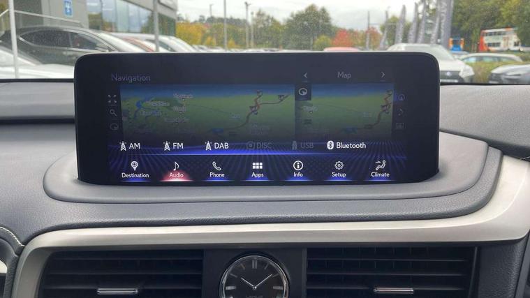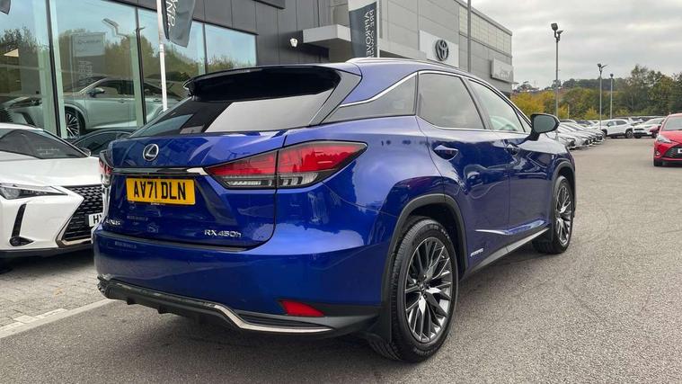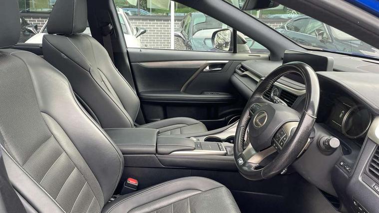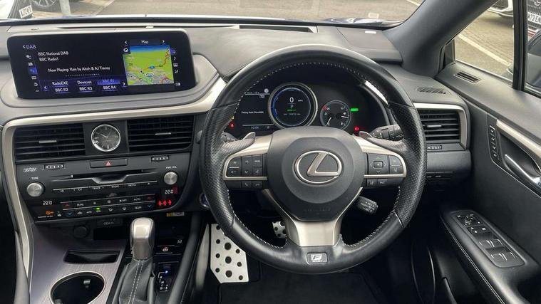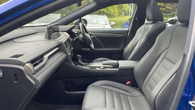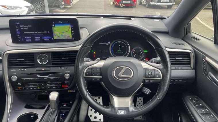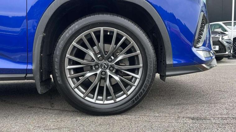 12.3" Touchscreen display and remote touch interface, 5 Driving modes EV/Normal/Eco/Sport/Sport+, Analogue clock with GPS function, Apple car play/Android Auto, Bluetooth mobile phone connectivity, Electric power steering, F SPORT combination meter, Front and rear parking sensors with intelligent clearance sonar, Hands free power boot lid operation with kick sensor, Lane change flasher function, Lexus link connected services with available optional wifi, Lexus Premium Navigation with full European map capability, street view and connected services, Multi-information display 4-inch TFT, Push button starter, Reversing camera with back guide lines, Wireless Smartphone charger, Adaptive variable suspension, E-Four Automatic transmission, F SPORT specific suspension tuning, Front and rear performance dampers, Vehicle Dynamics Integrated Management (VDIM), Vehicle Stability Control (VSC), 12 speakers Pioneer audio, AUX socket with VTR compatibility, DAB Digital radio, DVD, Front and rear USB ports, 3 eye LED headlights with adaptive high beam system with bladescan, Auto dimming rear view mirror, F SPORT exterior styling consists of Mesh front grille, front and rear bumper, badging, black outside mirror covers, Front and rear electric windows, Headlight washers, Heated, auto-folding door mirrors, auto dimming with rerverse tilt and memory, LED brake lights and rear lights with emergency brake signal, LED cornering headlights, LED daytime running lights, LED front and rear sequential indicators, LED front fog lights, Privacy glass, rear doors and tailgate, Puddle lights, Rain sensor windscreen wipers, Roof rails, 2 map pockets in the rear, 2 way electric lumbar support, 2 way manually adjustable front headrests, 2 way manually adjustable rear headrests, 2 x fixed shopping bag hooks in boot, 2 x Sunvisors with vanity mirror and lamp, 3 x 12V power sockets, 4 x tie down hooks in the boot, 40:20:40 split folding rear seats, 60/40 split folding rear seat with 40/20/40 folding ability, 8 way electrically adjustable front seats, Active sound control, Card holder installed in driver and passengers sun visors, Centre and rear armrest with 2 cupholders, Centre armrest with storage box, Climate concierge, Drilled F SPORT aluminium sports pedals, Driver seat memory function, Driver's seat easy access auto retraction function, Dual zone climate control air conditioning system with S flow and Nanoe technology, Electrically adjustable F SPORT leather steering wheel with paddle shifts and auto retraction function, Electrically adjustable steering column, F SPORT leather gearlever, F SPORT seats - Leather upholstery, Glasses holder in roof lighting panel, Heated front seats, Heated steering wheel, Illuminated entry system, Isofix standard child seat restraint mounting, LED interior illumination, Rear armrest with storage, Rear door sunshades, Self charging hybrid, Sliding/reclining rear seats, Small compartment to right of steering wheel, Textile carpet mats, Unique LED illumination instrumnet panel, Ventilated front seats, 3 point ELR front and rear seatbelts with pretensioners, ABS, Curtain airbags, Driver and front passenger 2 stage airbag, Driver/front passenger side airbags, Drivers knee airbag, EBD + Brake Assist, Electronic parking brake, Electronically controlled braking, Front passenger seat cushion airbag, Hill assist control, Lexus safety system - dynamic radar cruise control, pre collision system day and night, lane tracing assist, road sign, automatic high beam, OTA, Passenger airbag cut-off device, Rear passenger side airbags, Traction control, Tyre pressure warning, WIL whiplash protection front seats, Anti theft system with alarm, intrusion sensor, tilt sensor, glass breakage sensor and engine immobiliser, Locking wheel nuts, Security window etching, Smart keyless entry, Two motion door lock with double lock, Aluminium inlays, 20" F SPORT alloy wheels, Temporary spare wheel,