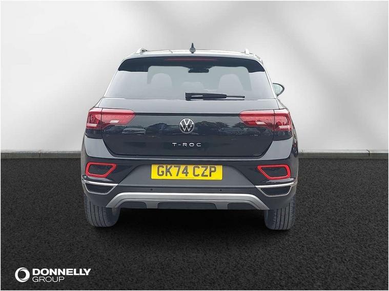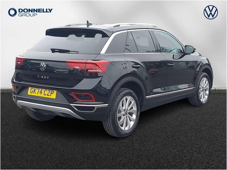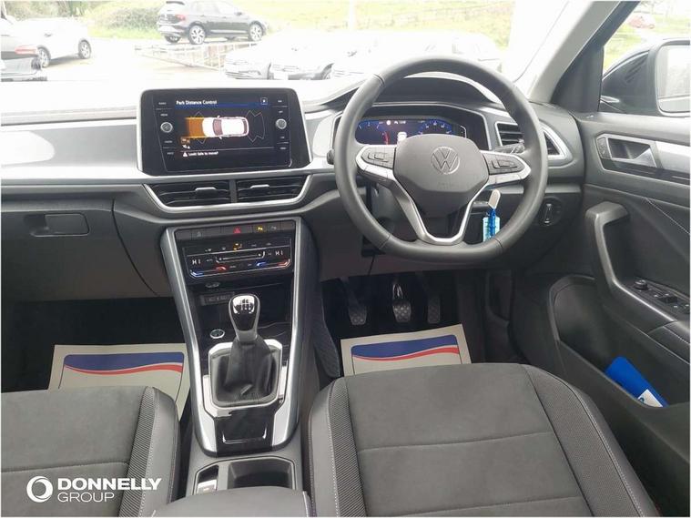 10.25" Digital cockpit pro, Advanced driver attention and drowsiness monitor, Emergency call service, Lane keeping system Lane Assist, Mobile phone interface, Modified key software - reduce switch off time for key status change to Long no motion, Online services, Park assist including front and rear parking sensors, Power assisted speed sensitive steering, Service interval indicator, Tailgate/trunk lid release from outside, Think blue trainer driver tips and journey analysis, Warning sound and light for front seatbelts unfastened, Wireless app connect, Wireless Smartphone charger, Battery regeneration during braking, Start/stop function with battery regeneration, DAB Digital radio, Diversity antenna for FM reception, Front and rear 6 speakers, Music playback - MP3, WMA and AAC files, Premium USB cable in choice of either Apple or Android smartphone compatibility, SD card slot, Simultaneous pairing of 2 compatible mobile devices, Title and cover art display, We Connect and We Connect Plus functionality, Auto dimming interior rear view mirror, Automatic hazard lights activation under emergency braking, Automatic headlight control with LED separate daytime running lights with coming/leaving home function, Body colour sports bumpers with silver metallic underbody fascia, Dynamic headlight range control with self adjusting whilst driving, Electrically adjustable and heated door mirrors, Extended roof spoiler, Exterior mirrors aspherical on driver side, convex on front passenger side, External USB type C socket and charging sockets, Front windscreen wiper with intermittent wipe and 4 position delay, Heated rear window, LED 3rd brake light, LED rear combination lamps, LED rear number plate lights, Light mode for poor weather, rain, fog or snow, Power windows with comfort operation and circuit breaker, Rain sensor, Rear exhaust tailpipe, Rear fog light on one side and reversing lights on both sides, Rear side wing doors, Rear wash/wipe with intermittent wipe setting, Remote electrically foldable door mirrors, puddle lights and reverse activated passenger's door mirror, 12V power socket in centre console, 3 rear head restraints, 3 seat bench in 2nd row, 4 load lashing points in luggage compartment, Air care climatronic air conditoning system with active combination filter and 2-zone temperature control, Chrome plated radiator grille inserts, air vent surrounds and light switch surrounds, Door and side trim panel with leatherette insert, Drawer under drivers seat, Front + rear carpet mats, Front centre armrest, Front comfort sports seats, Front cupholders x 2, Front footwell illumination, Front seat back storage pockets, Glove compartment door with light, Instrument lighting, white adjustable panel illumination, Interior ambient lighting and surround lighting, Interior light delay, Isofix child seat preparation, Leather gearshift handle, LED interior light with switch off delay/dimmer and 2 front/rear LED reading lights, Load-through provision with cup holder when folded down ('Unsplit rear seat bench, split folding backrest, with centre armrest), Luggage compartment lighting, Non-folding front passenger seat backrest, Single front passenger seat, Storage compartment in left and right luggage area, Storage compartment in rear doors, Storage compartments in driver and front passenger doors, Sunvisors with illuminated vanity mirrors, Variable boot floor, height adjustable and removable, Driver assistance pack without proactive passenger protection - T-Roc, 3 point height adj front seatbelts + pretensioners, 3 point seatbelts in outer rear with ECE label, ABS, Child locks on rear doors, City emergency braking and pedestrian monitoring, Driver and front passenger airbag with front passenger airbag deactivation, Driver and front passenger safety-optimised head restraints, Drivers seatbelt reminder, Electronic parking brake, Electronic Stability Control (ESC) inc EDL (Electronic Differential Lock) and ASR (Traction Control), Front and rear passengers curtain airbag system including front side airbags, Predictive pedestrian protection, Rear disc brakes, Two tone horn, Tyre pressure loss indicator, Volkswagen roadside assistance, Trims for alloy wheels,