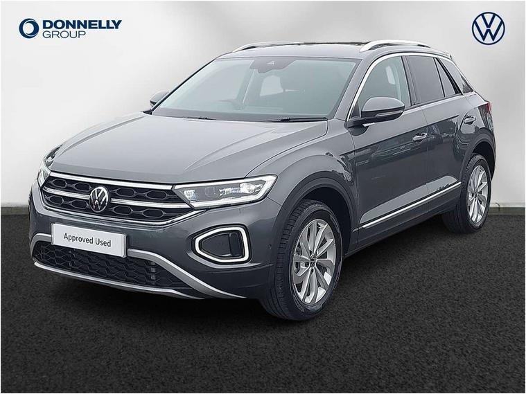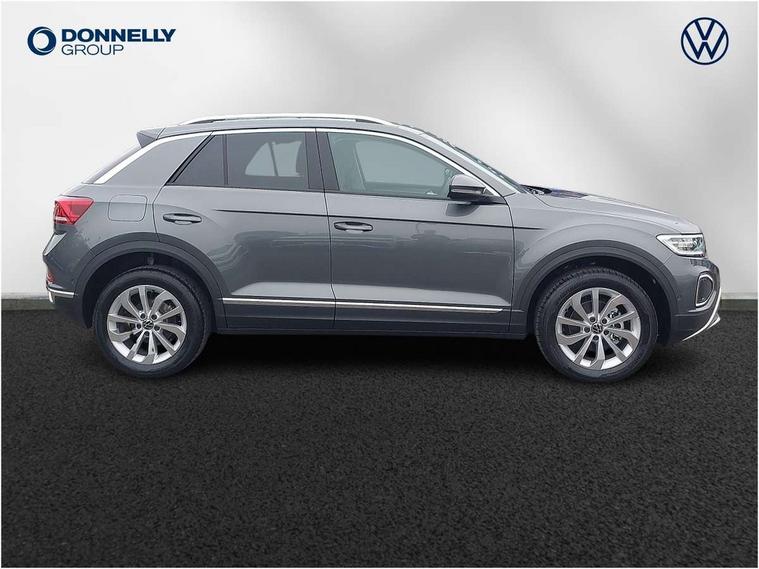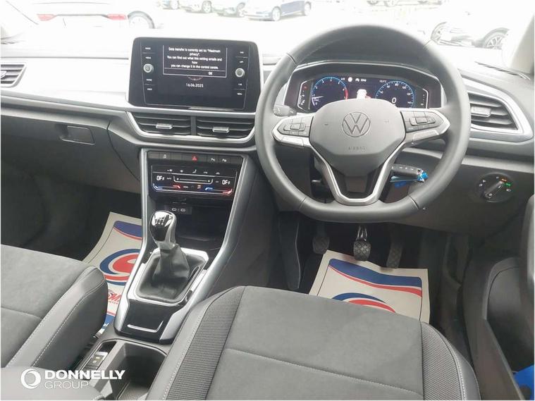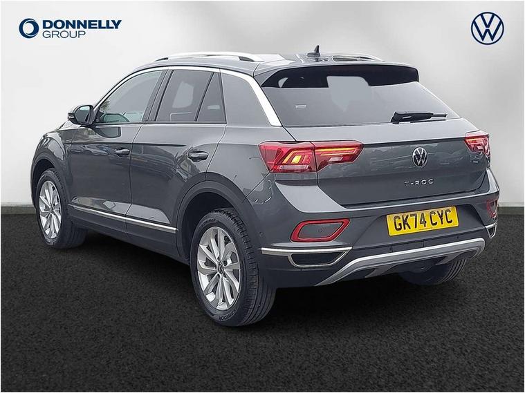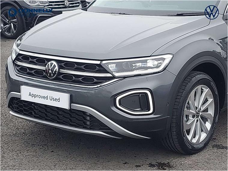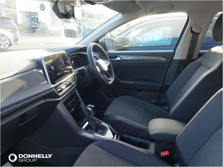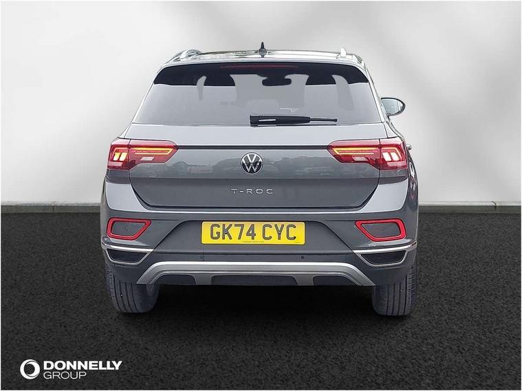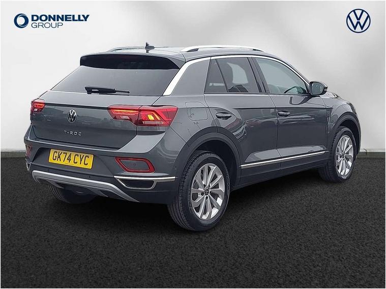 10.25" Digital cockpit pro, Advanced driver attention and drowsiness monitor, Emergency call service, Lane keeping system Lane Assist, Mobile phone interface, Modified key software - reduce switch off time for key status change to Long no motion, Online services, Park assist including front and rear parking sensors, Power assisted speed sensitive steering, Service interval indicator, Tailgate/trunk lid release from outside, Think blue trainer driver tips and journey analysis, Warning sound and light for front seatbelts unfastened, Wireless app connect, Wireless Smartphone charger, Battery regeneration during braking, Start/stop function with battery regeneration, DAB Digital radio, Diversity antenna for FM reception, Front and rear 6 speakers, Music playback - MP3, WMA and AAC files, Premium USB cable in choice of either Apple or Android smartphone compatibility, SD card slot, Simultaneous pairing of 2 compatible mobile devices, Title and cover art display, We Connect and We Connect Plus functionality, Auto dimming interior rear view mirror, Automatic hazard lights activation under emergency braking, Automatic headlight control with LED separate daytime running lights with coming/leaving home function, Body colour sports bumpers with silver metallic underbody fascia, Dynamic headlight range control with self adjusting whilst driving, Electrically adjustable and heated door mirrors, Extended roof spoiler, Exterior mirrors aspherical on driver side, convex on front passenger side, External USB type C socket and charging sockets, Front windscreen wiper with intermittent wipe and 4 position delay, Heated rear window, LED 3rd brake light, LED rear combination lamps, LED rear number plate lights, Light mode for poor weather, rain, fog or snow, Power windows with comfort operation and circuit breaker, Rain sensor, Rear exhaust tailpipe, Rear fog light on one side and reversing lights on both sides, Rear side wing doors, Rear wash/wipe with intermittent wipe setting, Remote electrically foldable door mirrors, puddle lights and reverse activated passenger's door mirror, 12V power socket in centre console, 3 rear head restraints, 3 seat bench in 2nd row, 4 load lashing points in luggage compartment, Air care climatronic air conditoning system with active combination filter and 2-zone temperature control, Chrome plated radiator grille inserts, air vent surrounds and light switch surrounds, Door and side trim panel with leatherette insert, Drawer under drivers seat, Front + rear carpet mats, Front centre armrest, Front comfort sports seats, Front cupholders x 2, Front footwell illumination, Front seat back storage pockets, Glove compartment door with light, Instrument lighting, white adjustable panel illumination, Interior ambient lighting and surround lighting, Interior light delay, Isofix child seat preparation, Leather gearshift handle, LED interior light with switch off delay/dimmer and 2 front/rear LED reading lights, Load-through provision with cup holder when folded down ('Unsplit rear seat bench, split folding backrest, with centre armrest), Luggage compartment lighting, Non-folding front passenger seat backrest, Single front passenger seat, Storage compartment in left and right luggage area, Storage compartment in rear doors, Storage compartments in driver and front passenger doors, Sunvisors with illuminated vanity mirrors, Variable boot floor, height adjustable and removable, Driver assistance pack without proactive passenger protection - T-Roc, 3 point height adj front seatbelts + pretensioners, 3 point seatbelts in outer rear with ECE label, ABS, Child locks on rear doors, City emergency braking and pedestrian monitoring, Driver and front passenger airbag with front passenger airbag deactivation, Driver and front passenger safety-optimised head restraints, Drivers seatbelt reminder, Electronic parking brake, Electronic Stability Control (ESC) inc EDL (Electronic Differential Lock) and ASR (Traction Control), Front and rear passengers curtain airbag system including front side airbags, Predictive pedestrian protection, Rear disc brakes, Two tone horn, Tyre pressure loss indicator, Volkswagen roadside assistance, Trims for alloy wheels,